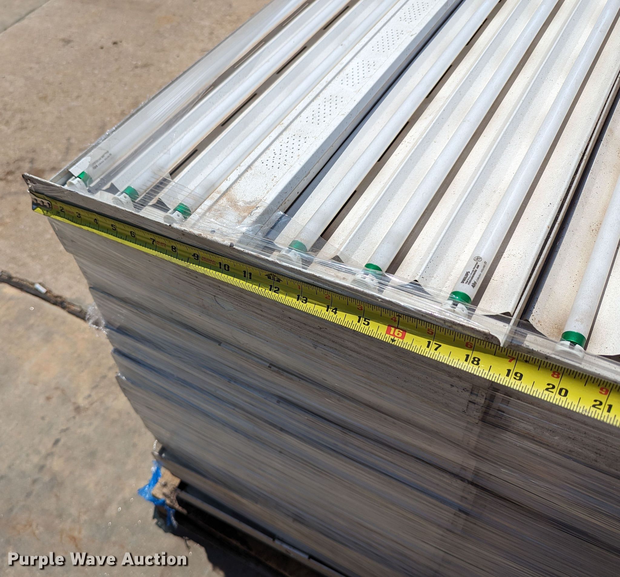 This (104) 48" L x 18.5" W light fixtures will sell to the highest bidder regardless of price.