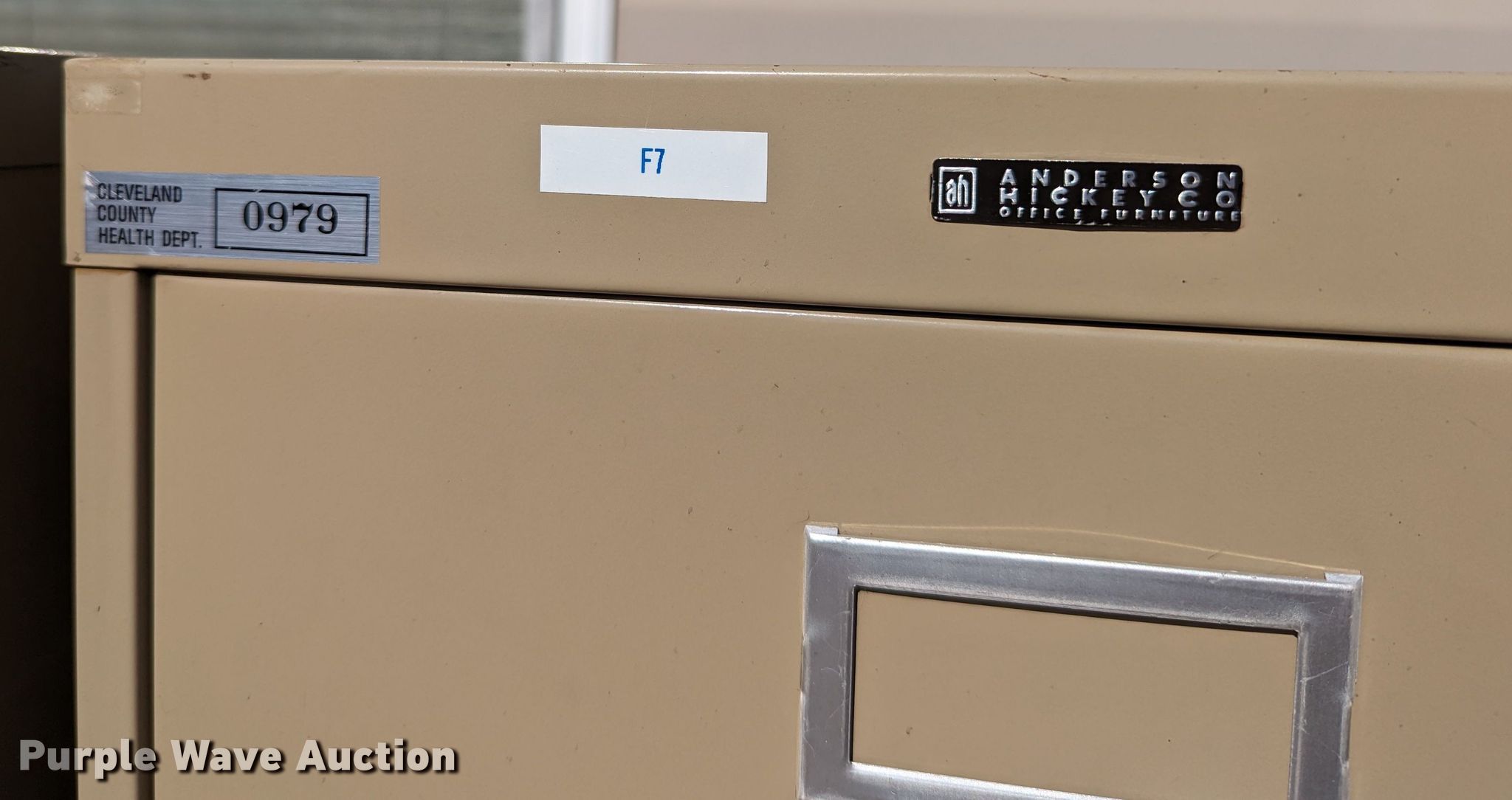 Purple Wave is selling a used Office Supplies and Equip. in Oklahoma. This item is a (9) Anderson Hickey HON vertical file cabinets with the following: (9) Anderson Hickey HON vertical file cabinets. Cleveland County. 9050 S US-77. Noble, OK 73068