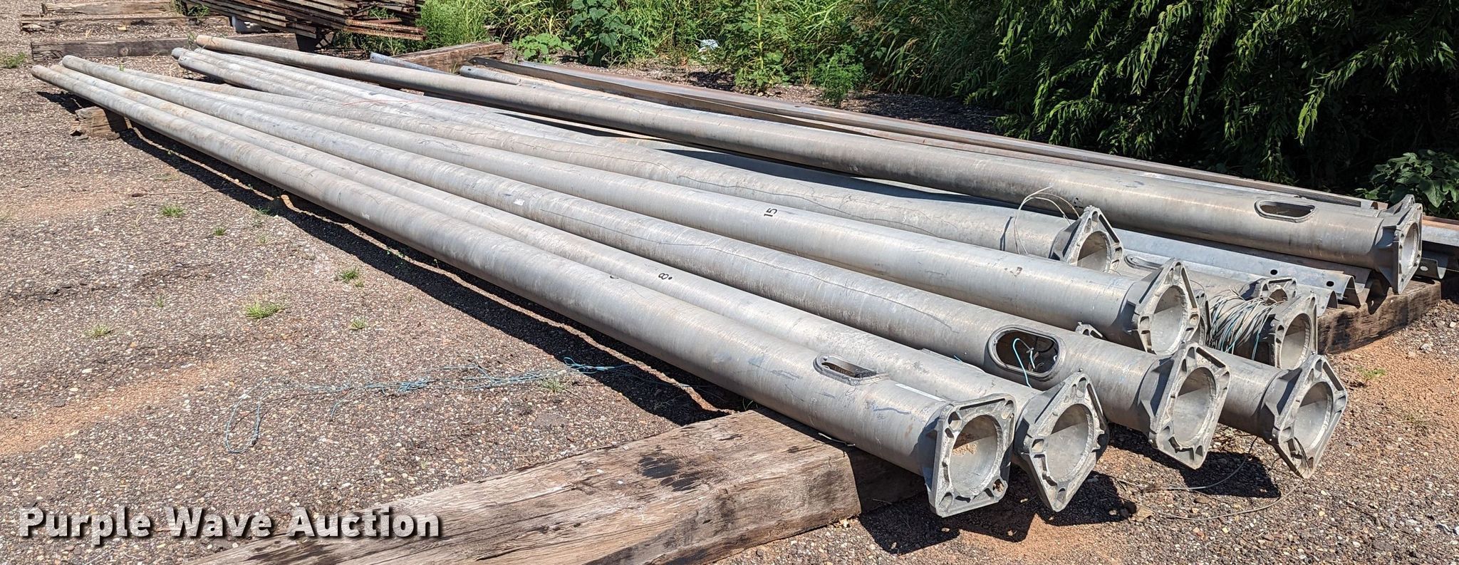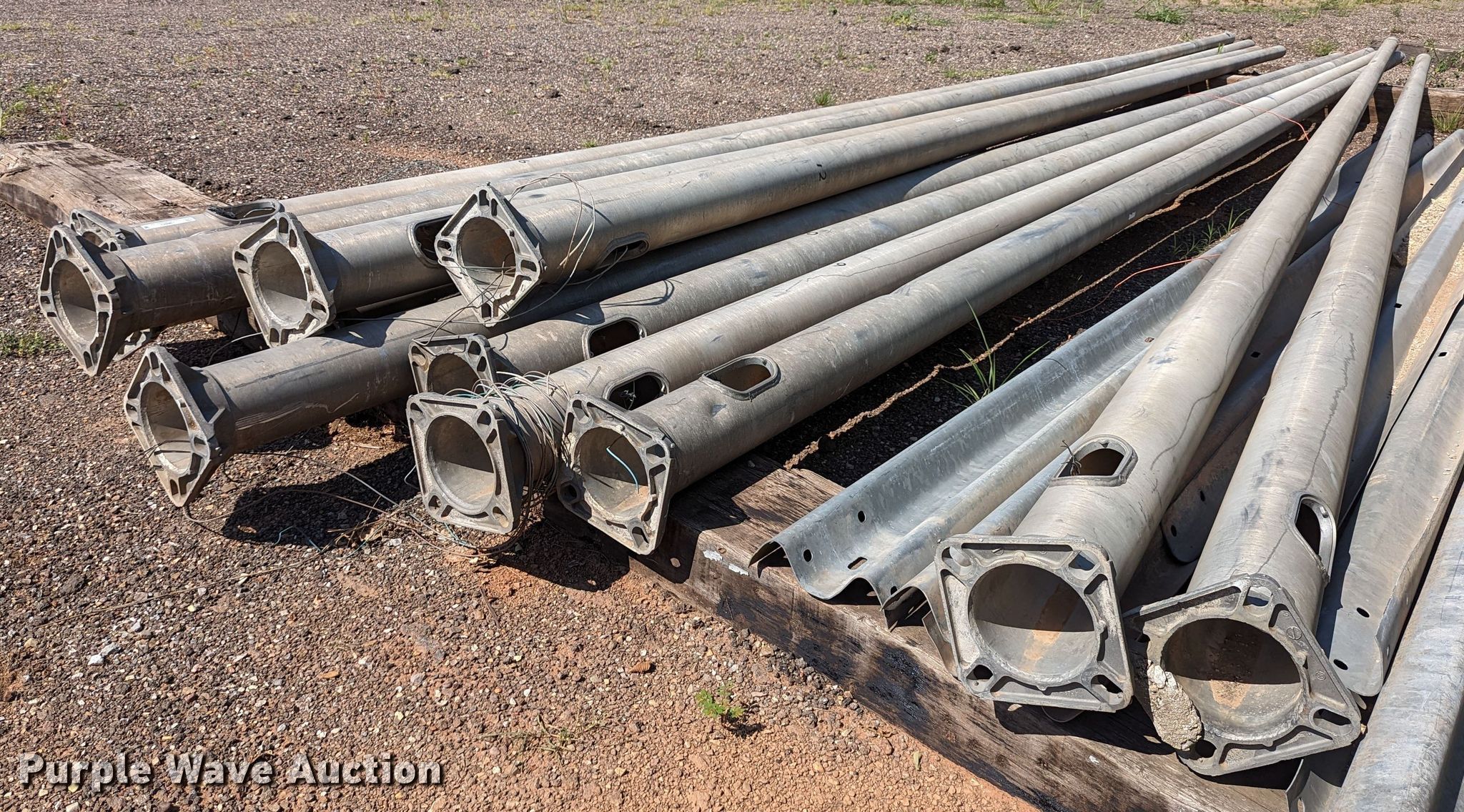 Purple Wave is selling a used Building Materials in Oklahoma. This item is a (12) metal light poles with the following: 33'L, 11" x 11" base, Guard rail not included