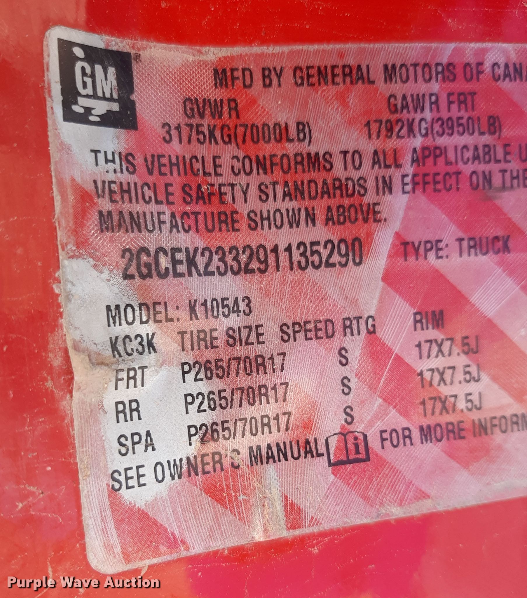 - VIN: 2GCEK233291135290