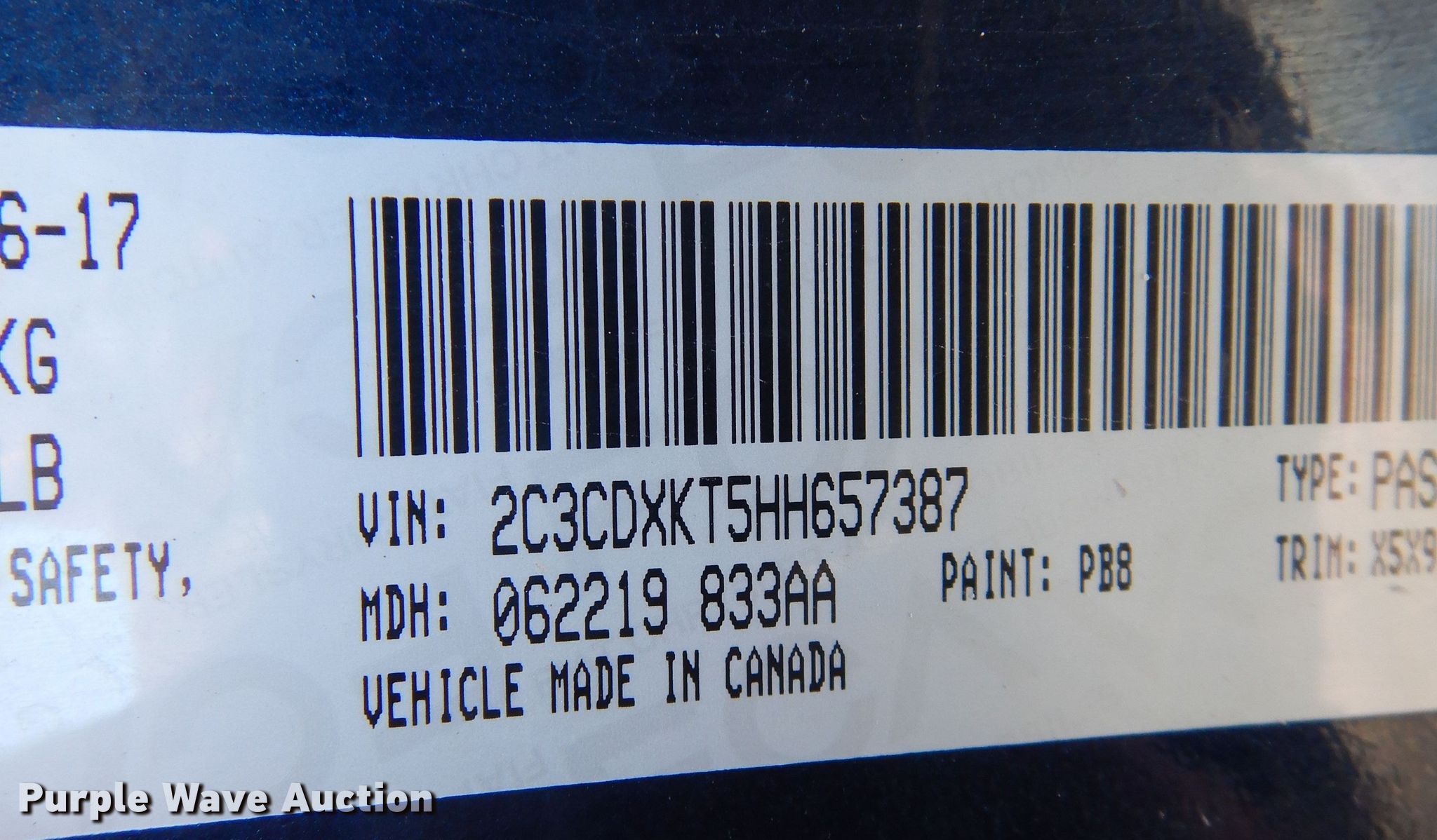- VIN: 2C3CDXKT5HH657387