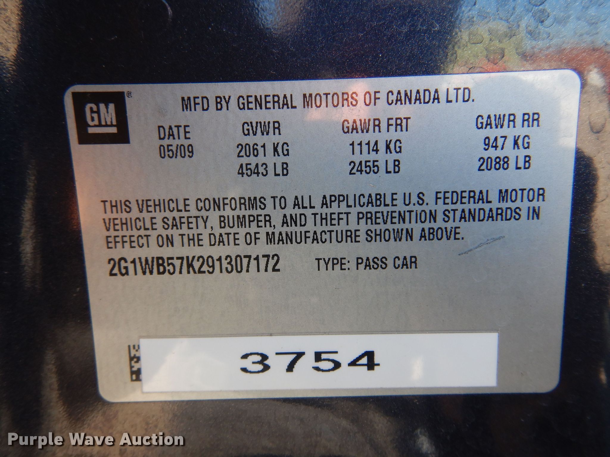 Purple Wave is selling a used Passenger Vehicle in Kansas. This item is a 2009 Chevrolet Impala with the following: Miles: 156,974 on odometer, VIN: 2G1WB57K291307172, Unit #: 3754