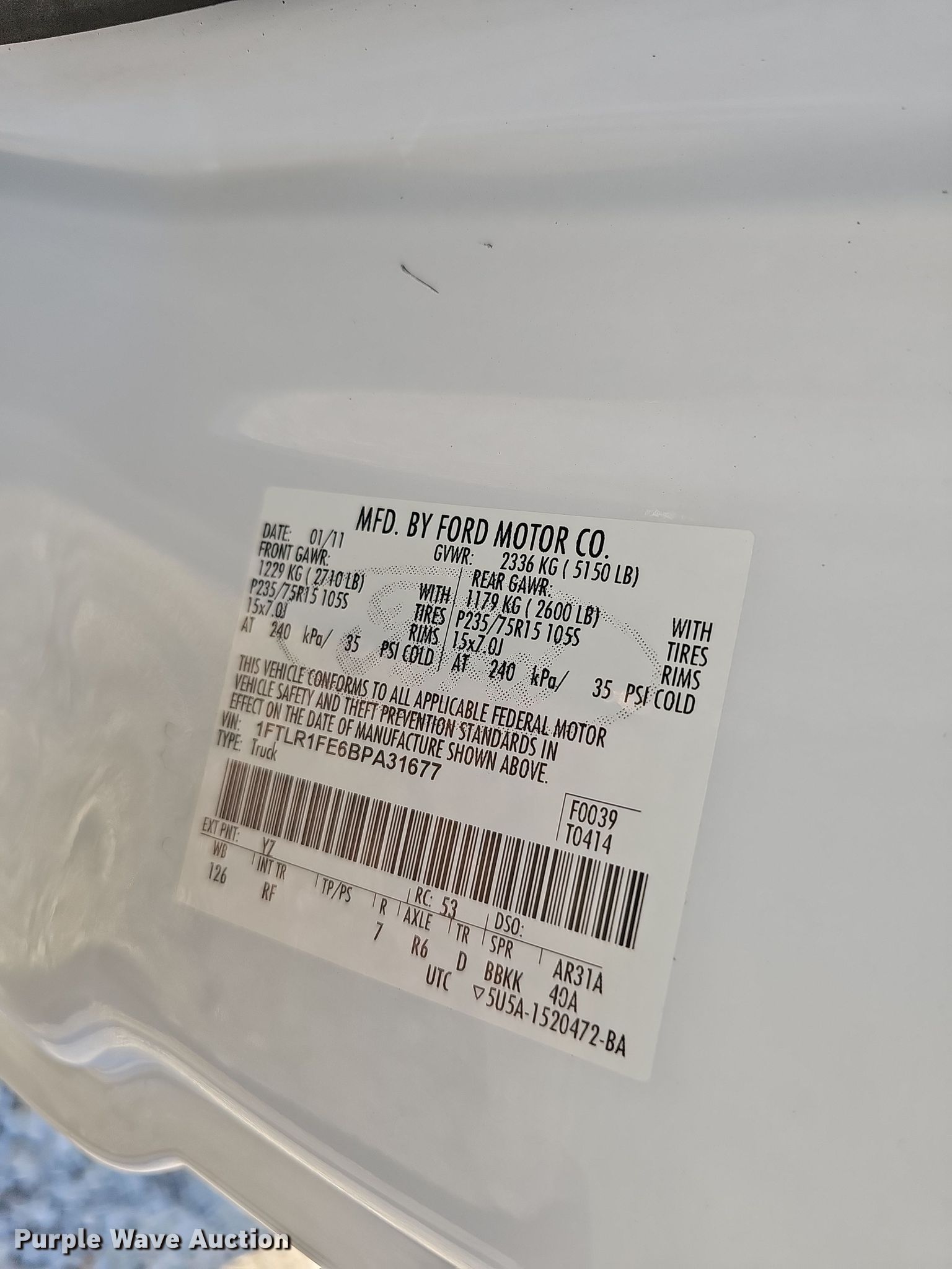 - VIN: 1FTLR1FE6BPA31677