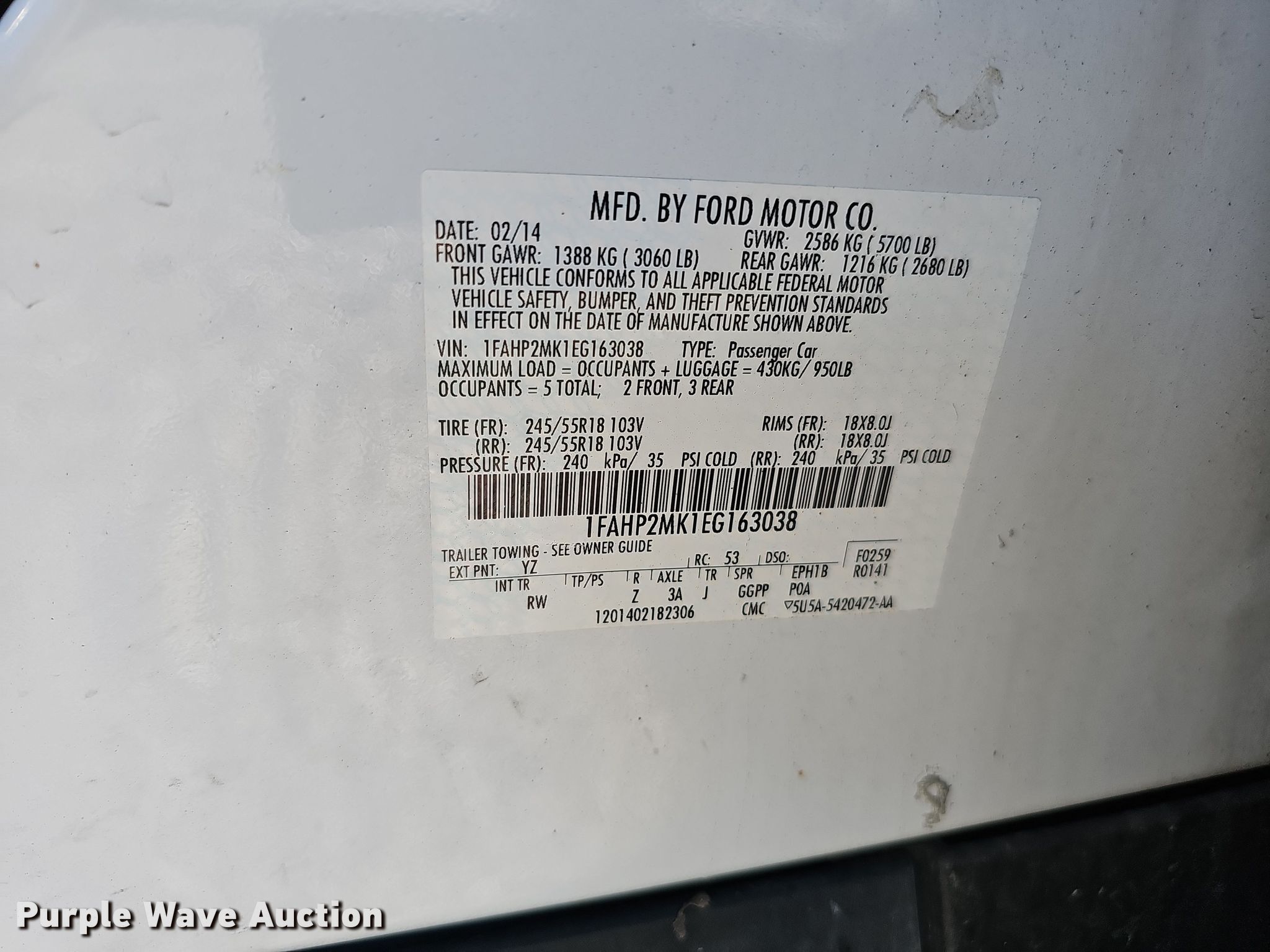 - VIN: 1FAHP2MK1EG163038