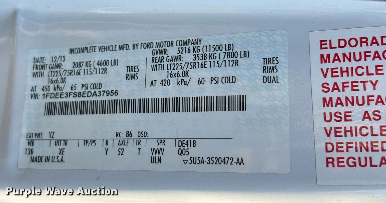 2014 Ford E350 shuttle bus. Miles: Unknown, VIN: 1FDEE3FS8EDA37956, Unit #: 7956. Engine Ford, Displacement: 6.8L, Cylinders: 10, Fuel type: Gas. Transmission Automatic. Chassis Axles: Single, Suspension: Spring, Brakes: Hydraulic, GVWR: 11,500 lbs, Wheelbase: 138". Interior AC, Heat, Cruise control, Passengers: 8, Wheelchair lift. Tires Size: 225/75R16. Notes No key, Lift door locked, Unknown operating condition of wheelchair lift, Non-operational unit. Texas title. Title distribution may be delayed up to 14 days from verification of funds. Mileage has not been verified. Exempt will be written in the odometer disclosure on the title. Alamo Area Council of Government. San Antonio, TX 78237