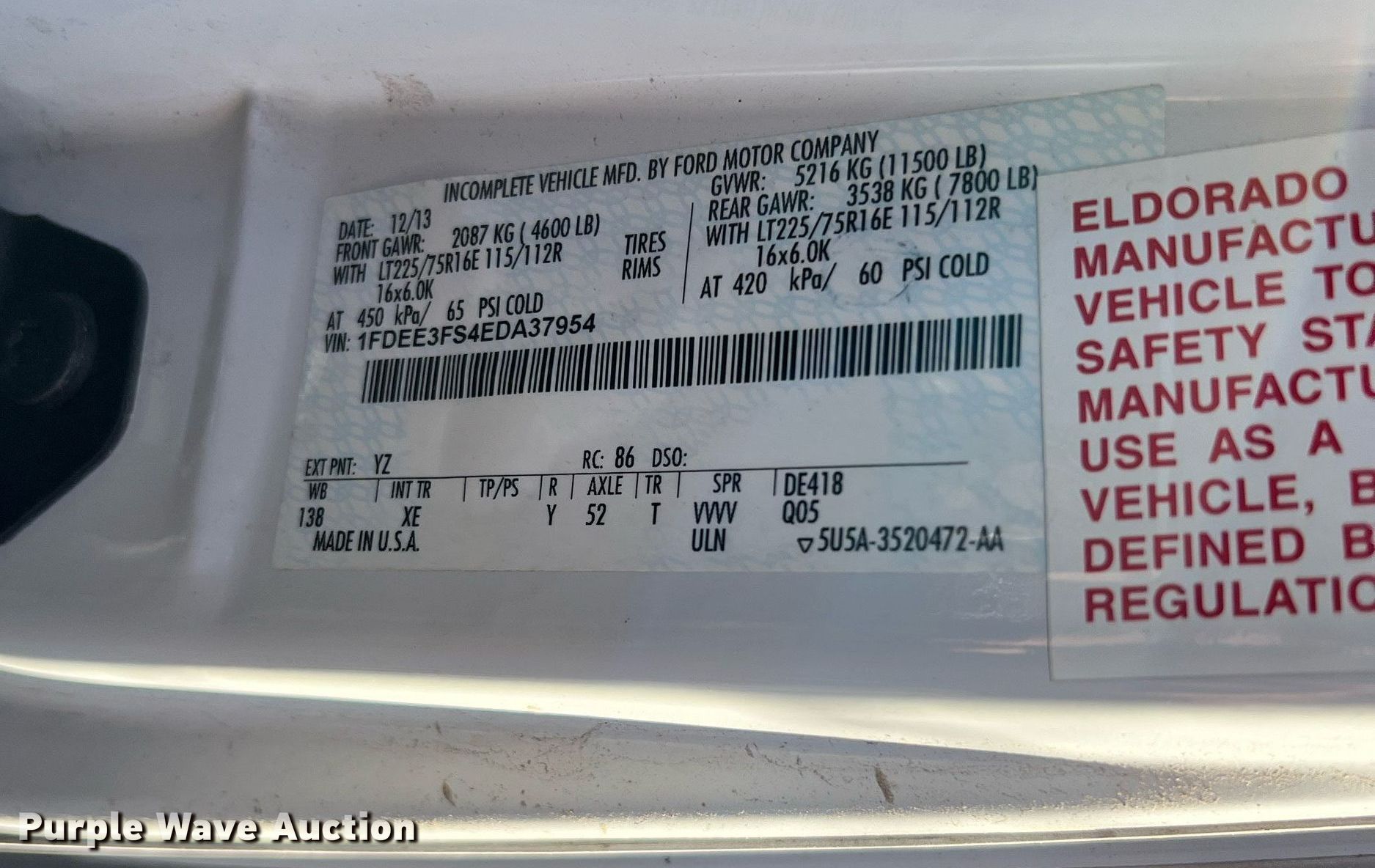 - VIN: 1FDEE3FS4EDA37954