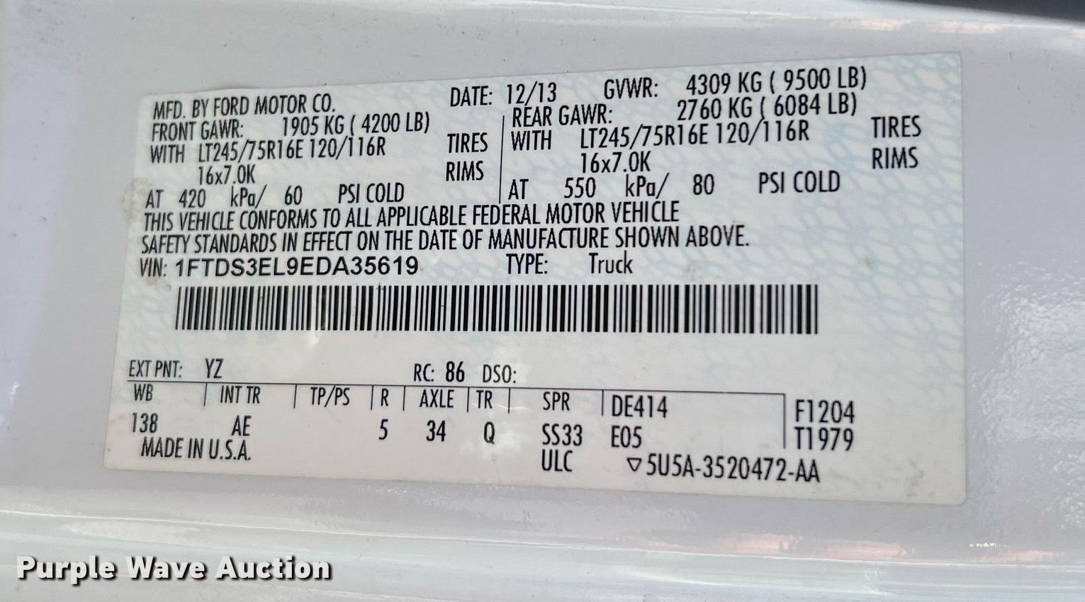 • VIN: 1FTDS3EL9EDA35619