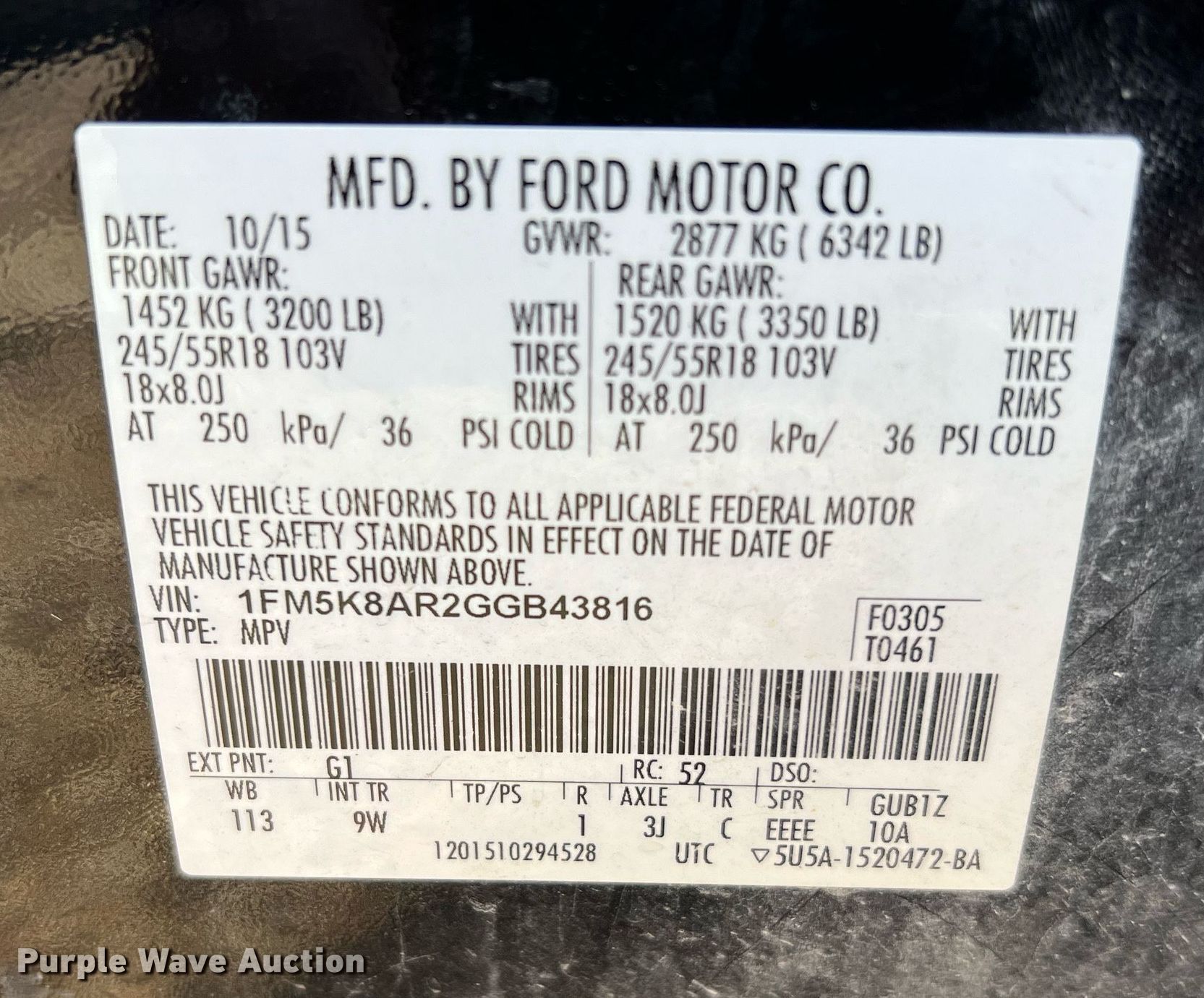 2016 Ford Explorer Police Interceptor SUV. Miles: 110,225 on odometer, Miles or hours may vary, unit still in use, VIN: 1FM5K8AR2GGB43816. Engine Displacement: 3.7L V6 DOHC, Cylinders: 6, Fuel type: Gas. Transmission Automatic, All wheel drive. Interior AC, Heat, Seat: Power driver, Power windows, Power locks, Cruise control, Backup camera. Tires Size: 245/55R18. Texas title. Coryell County TX. 3701 US Highway 84 W. Gatesville, TX 76528