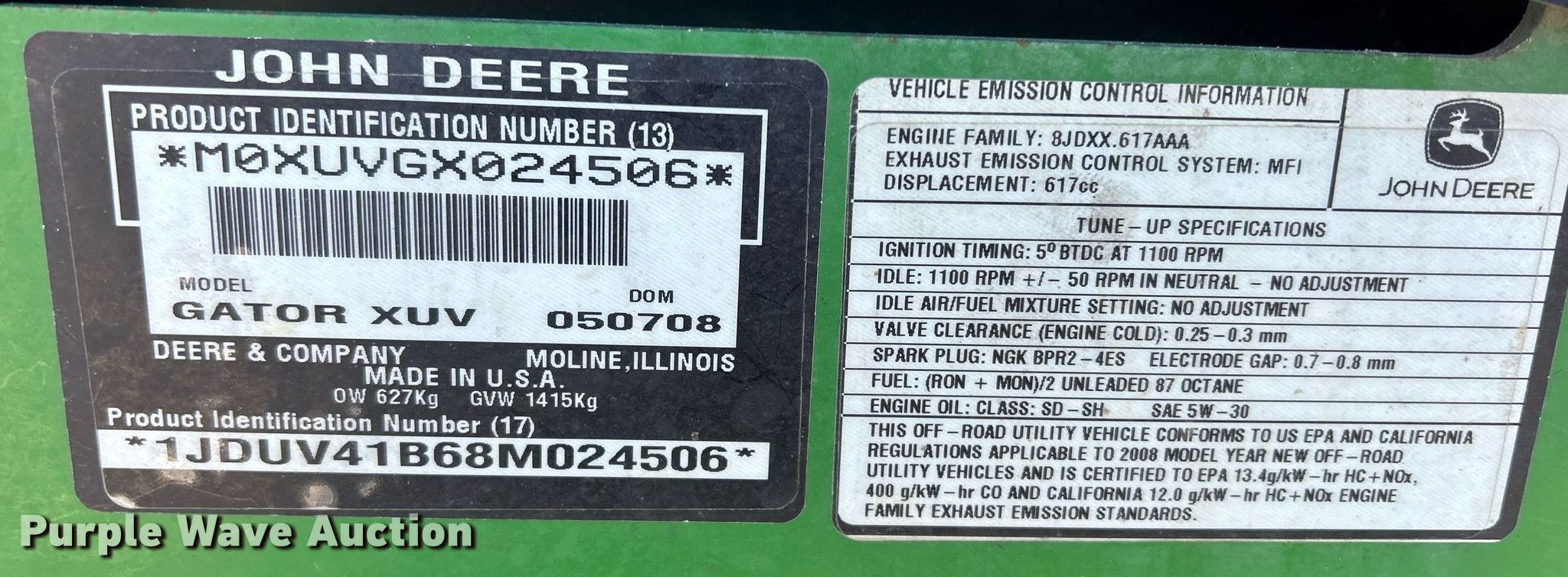 Purple Wave is selling a used Utility Vehicle in Iowa. This item is a John Deere Gator XUV utility vehicle with the following: Hours: 2,391 on meter, Serial: M0XUVGX024506