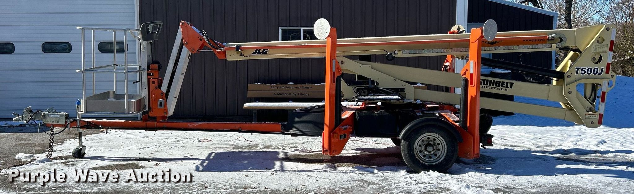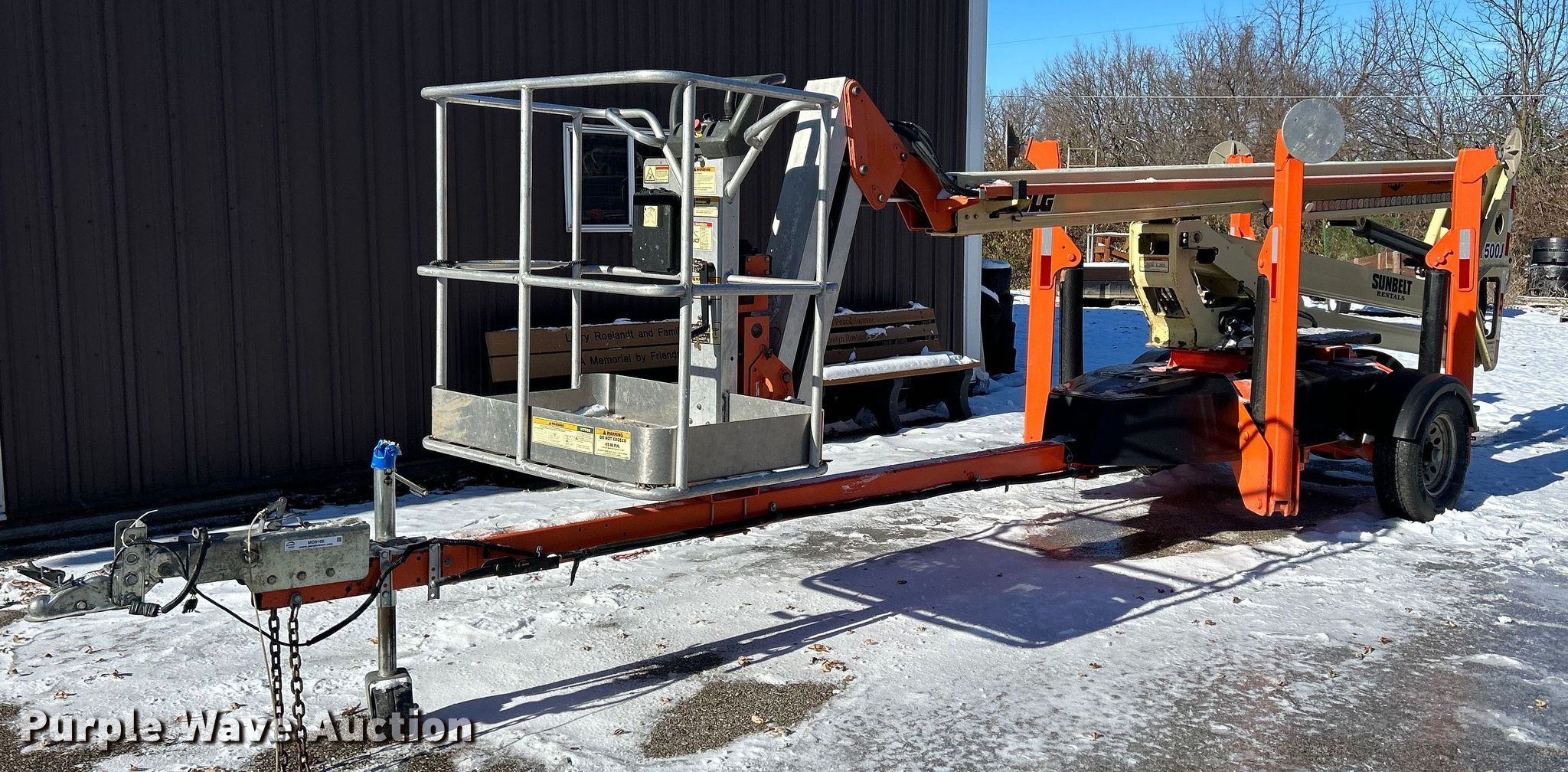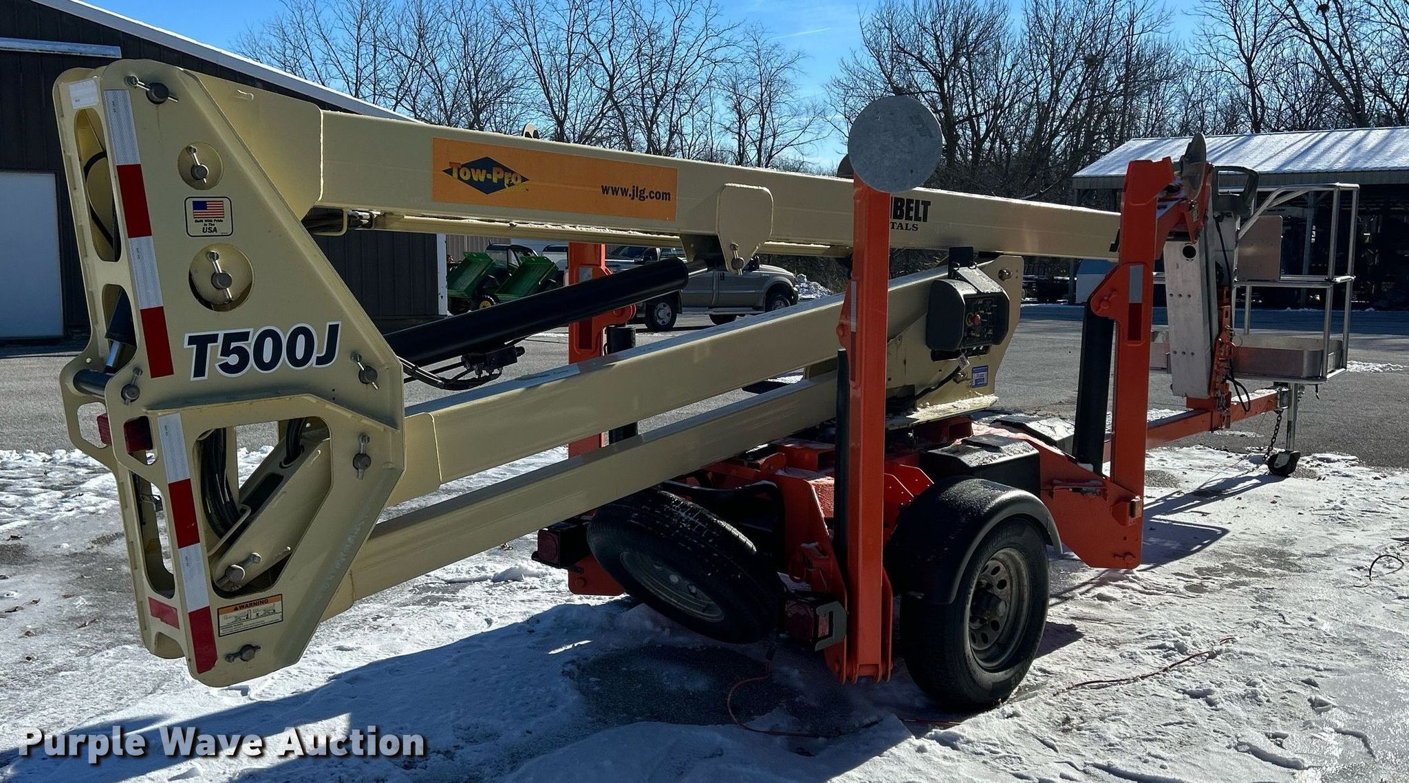 2010 JLG T500J boom lift. Hours: 153 on meter, VIN: 5DYACJ1J7AP003876, Serial: 0030003876. Electric Motor Volts: 120. Features Tow behind, Maximum lift capacity: 500 lbs, Maximum lift height: 50', Hydraulic outriggers, Hydraulic extendable jib, Platform: 28" L x 45" W, AC power outlet, Air outlet, Controls: Platform, Ground, Platform rotation: Hydraulic. Tires Tire size: 225/75R16. Chasis Ball hitch: 2". Transfer of ownership documentation will be a bill of sale. Scott County Conservation. 14910 110th Avenue. Davenport, IA 52804