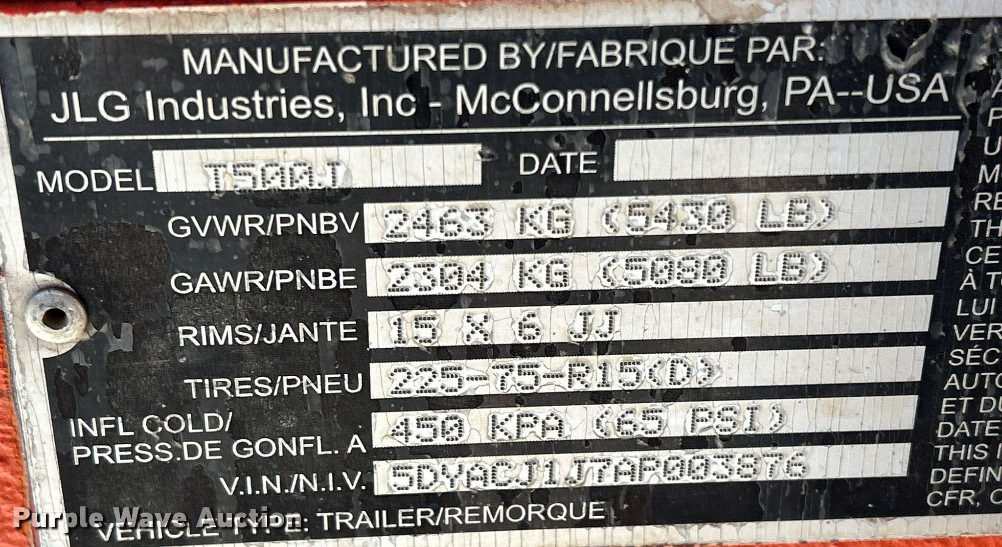 Purple Wave is selling a used Boom Lift in Iowa. This item is a 2010 JLG T500J boom lift with the following: Hours: 153 on meter, VIN: 5DYACJ1J7AP003876, Serial: 0030003876