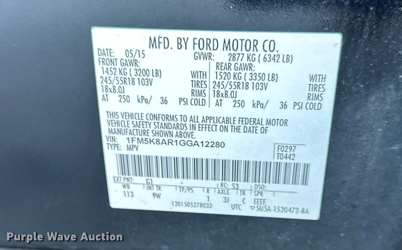 • VIN: 1FM5K8AR1GGA12280