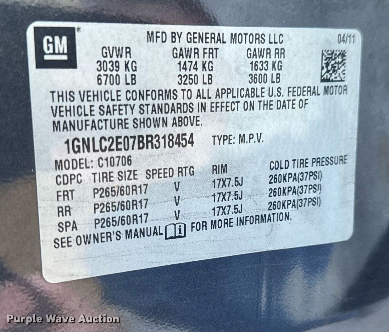 Purple Wave is selling a used Passenger Vehicle in Missouri. This item is a 2011 Chevrolet Tahoe Police SUV with the following: Miles: 94,524 on odometer, VIN: 1GNLC2E07BR318454, Unit #: RB2-E4V