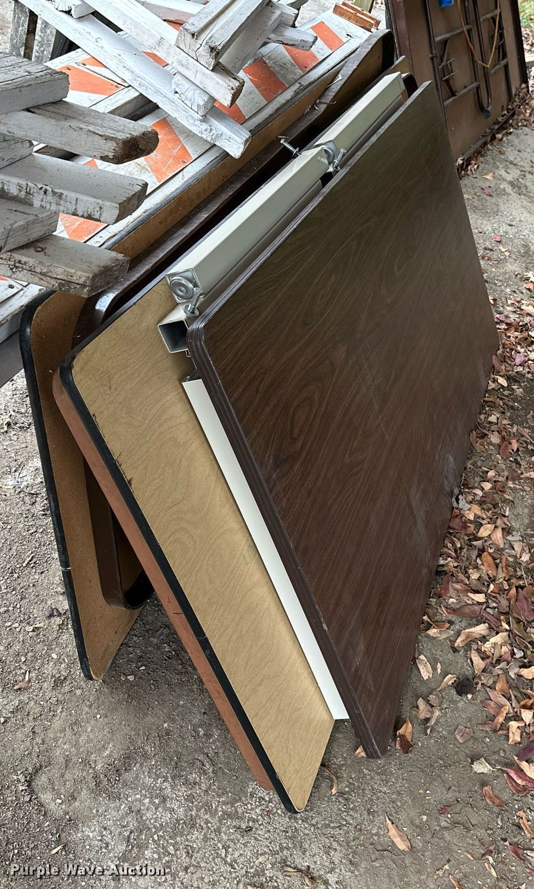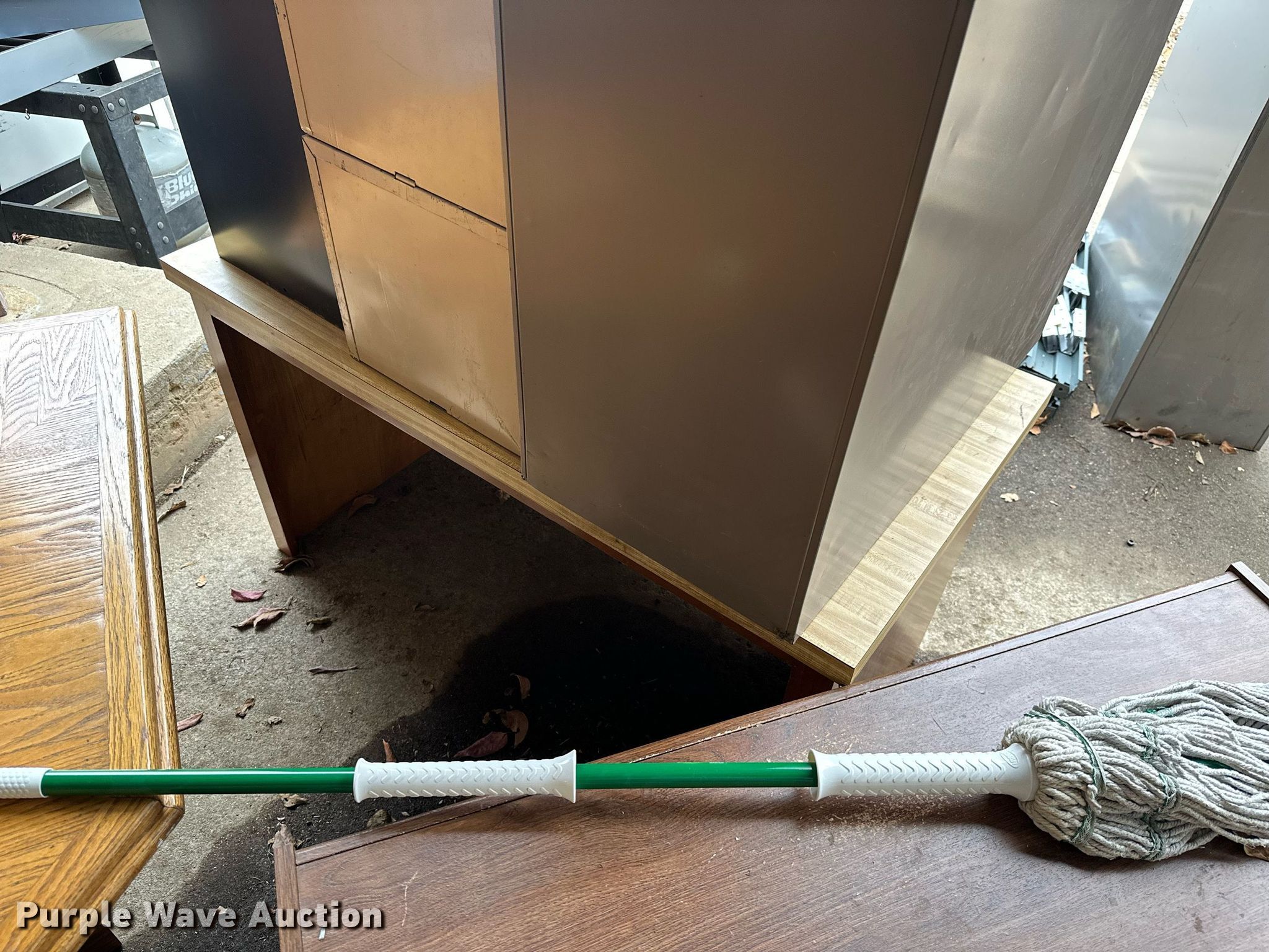 Purple Wave is selling a used Furniture in Kansas. This item is a Furniture with the following: (6) filing cabinets, Hexagonal table, (5) desks, Shelf, Family cabin tent, (4) folding tables