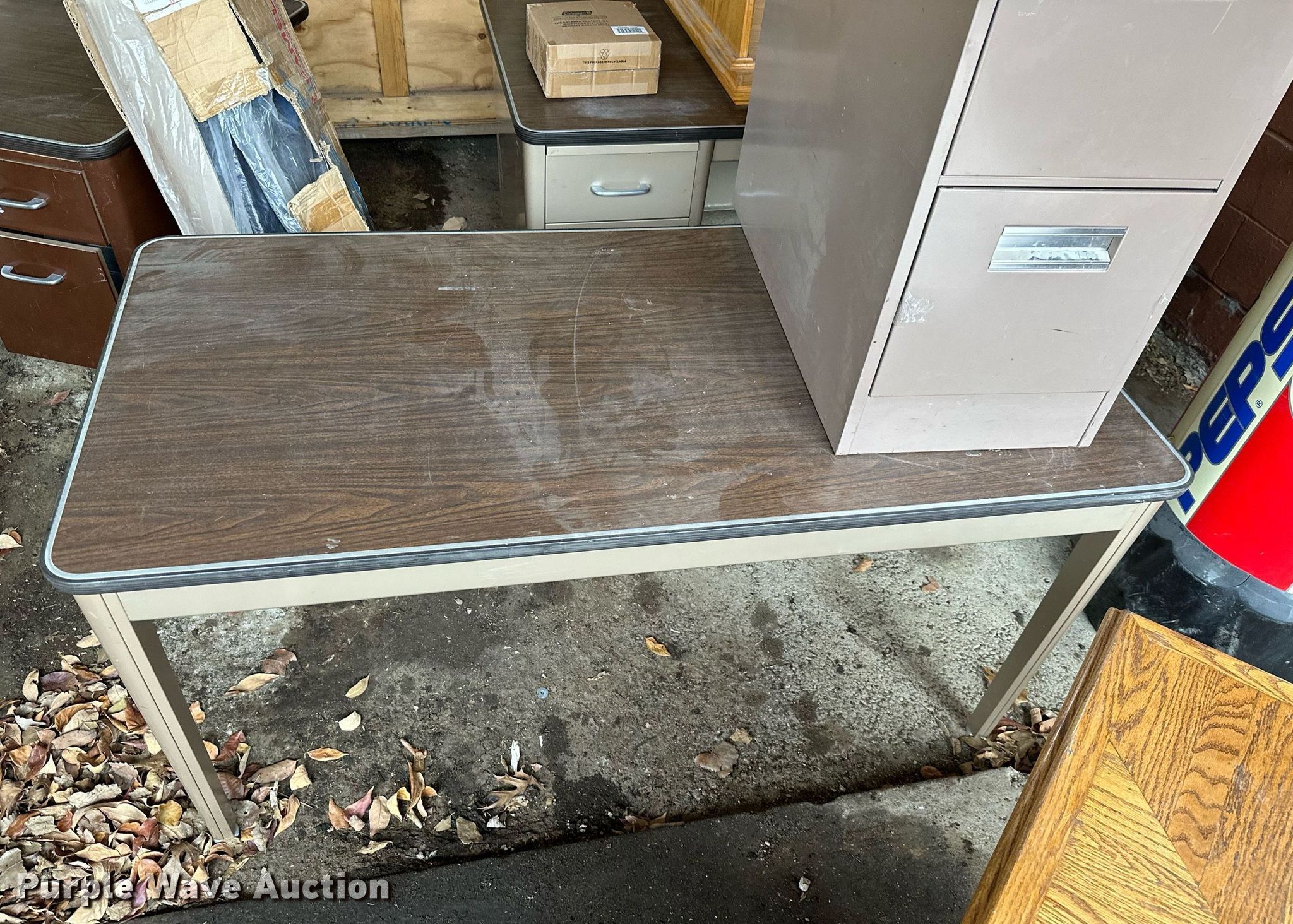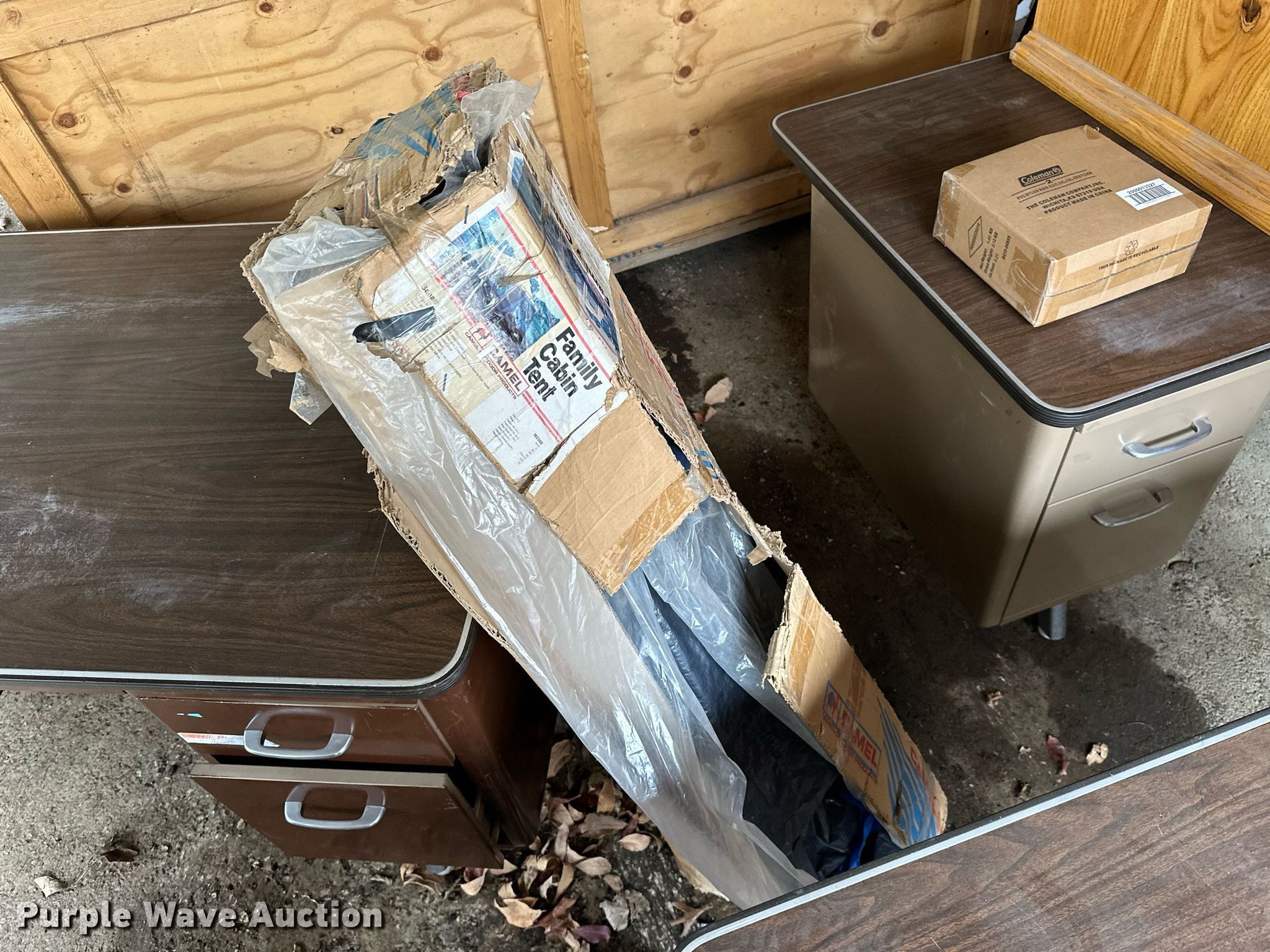 Furniture. (6) filing cabinets, Hexagonal table, (5) desks, Shelf, Family cabin tent, (4) folding tables. Elk City State Park. 4825 N Squaw Crk. Independence, KS 67301
