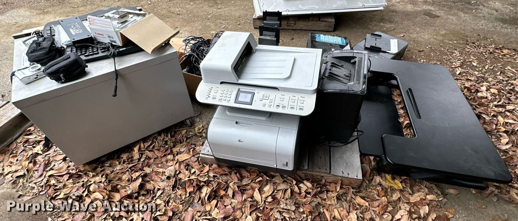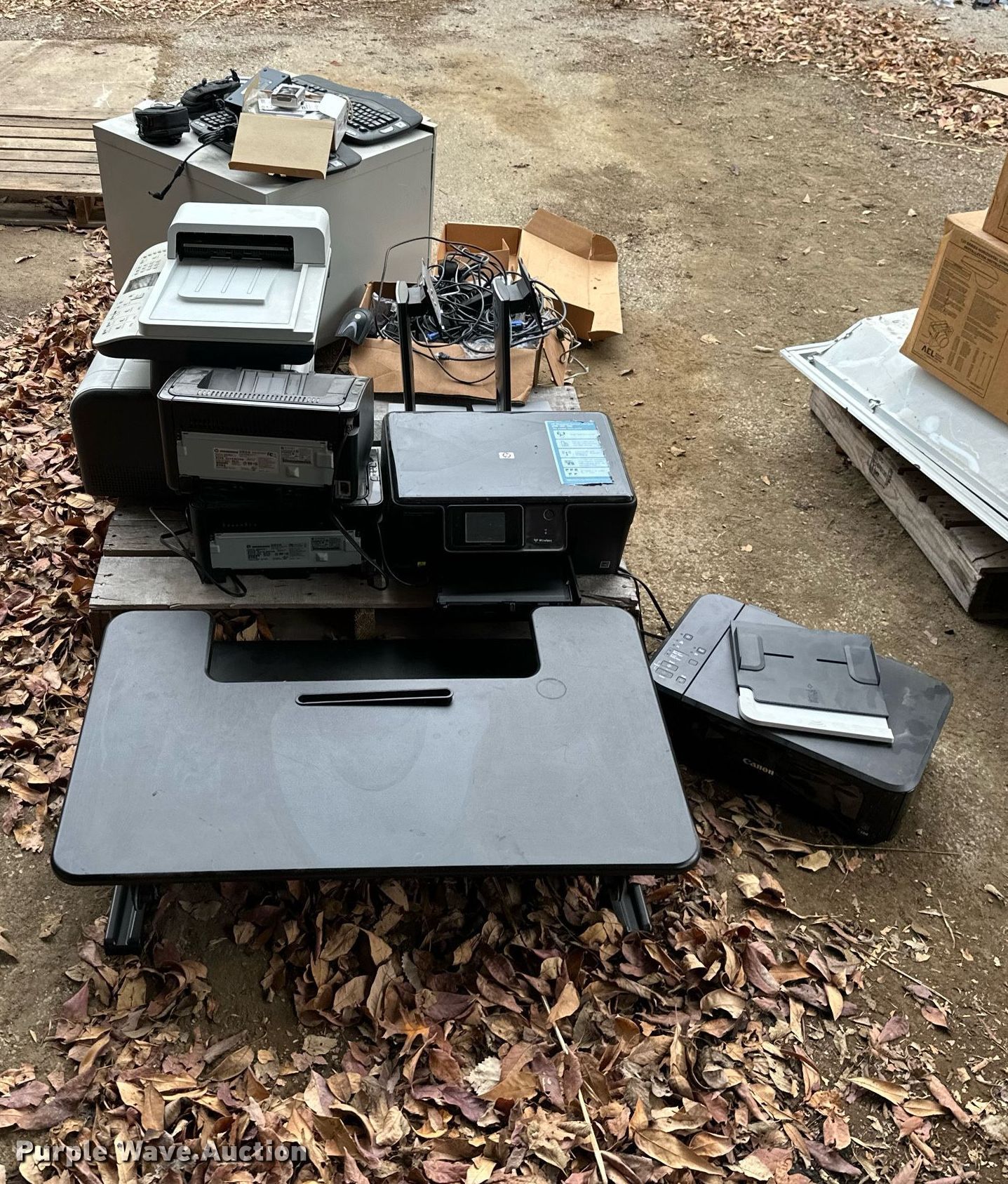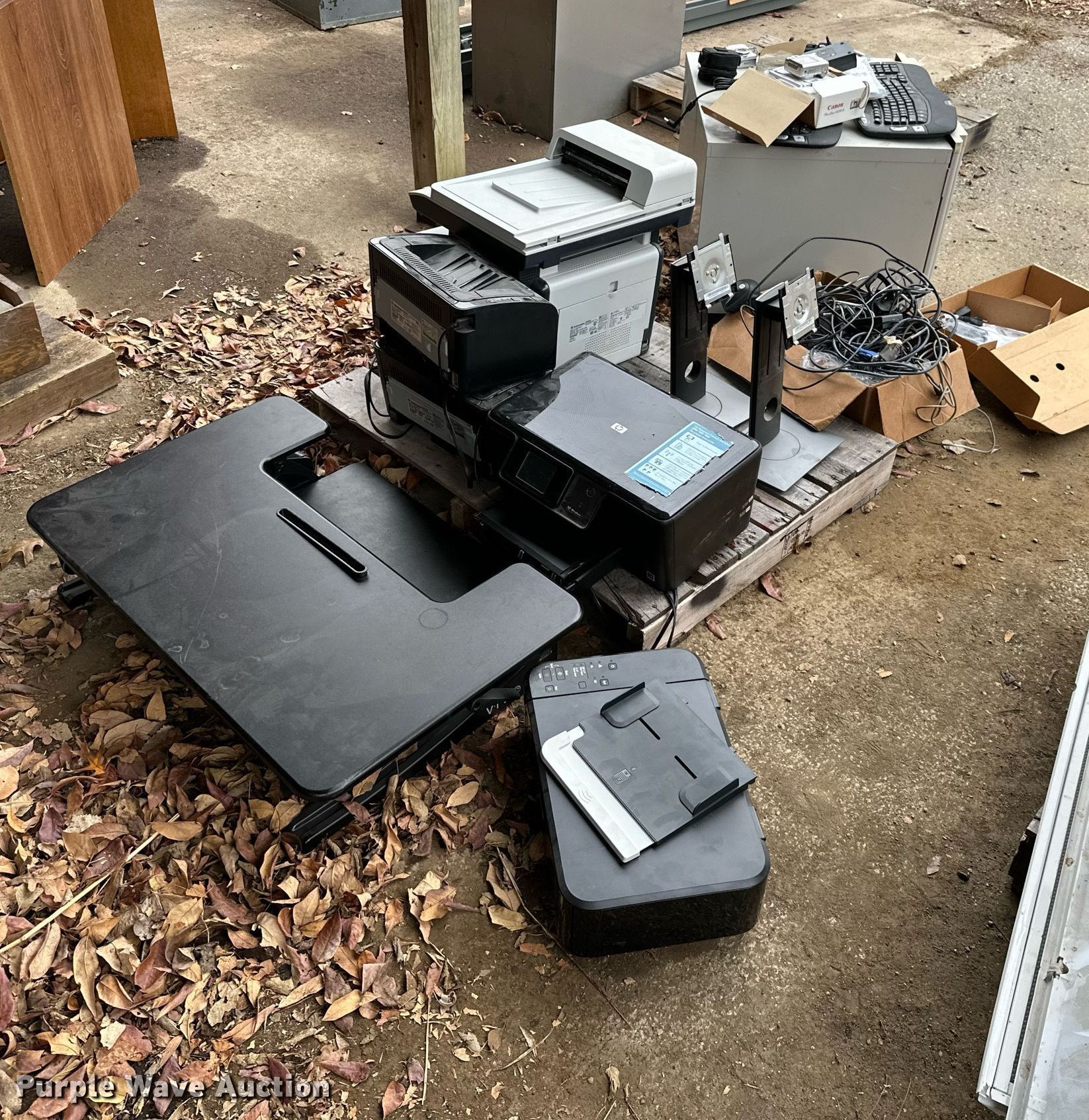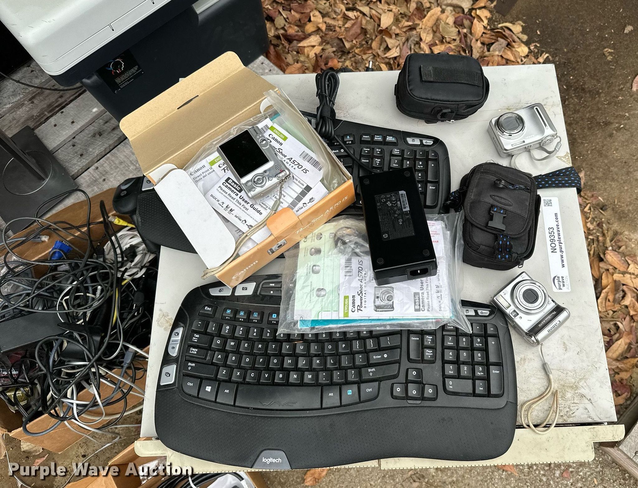 Purple Wave is selling a used Electronics in Kansas. This item is a Electronics with the following: (2) keyboards, Kodak digital camera, (2) Canon A570IS, (2) monitor stands, HP Photosmart printer, Canon printer, HP LaserJet P1102W printer, HP copy printer, Standing desk mount