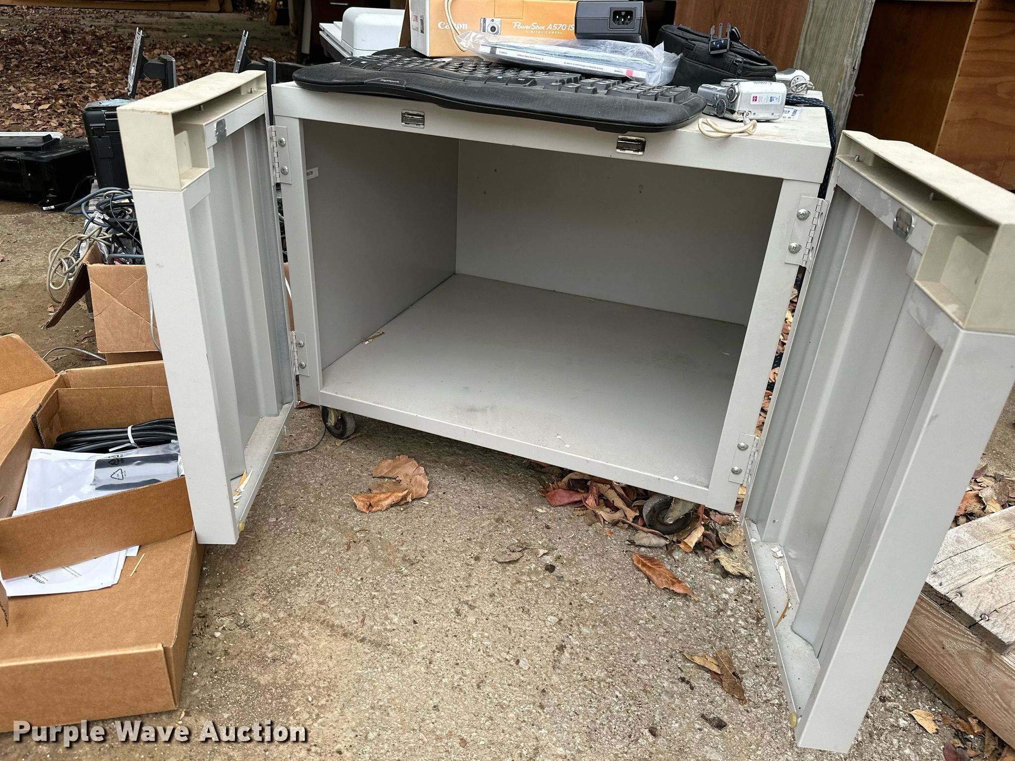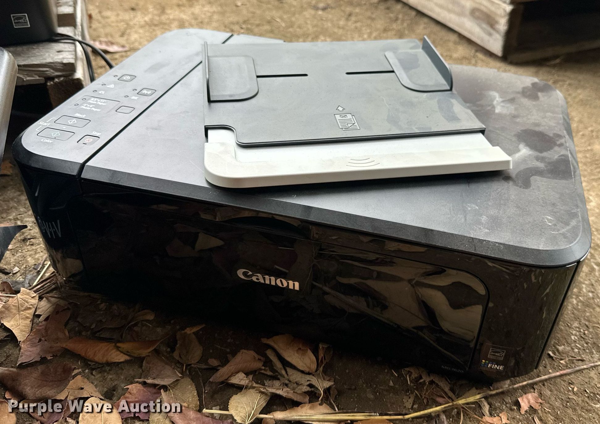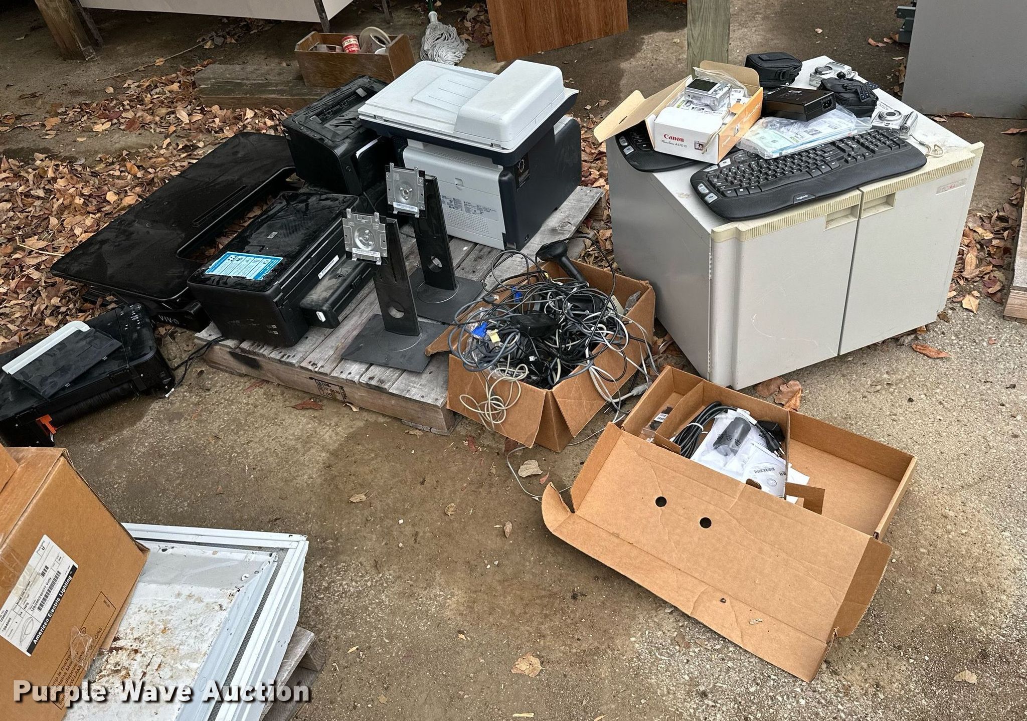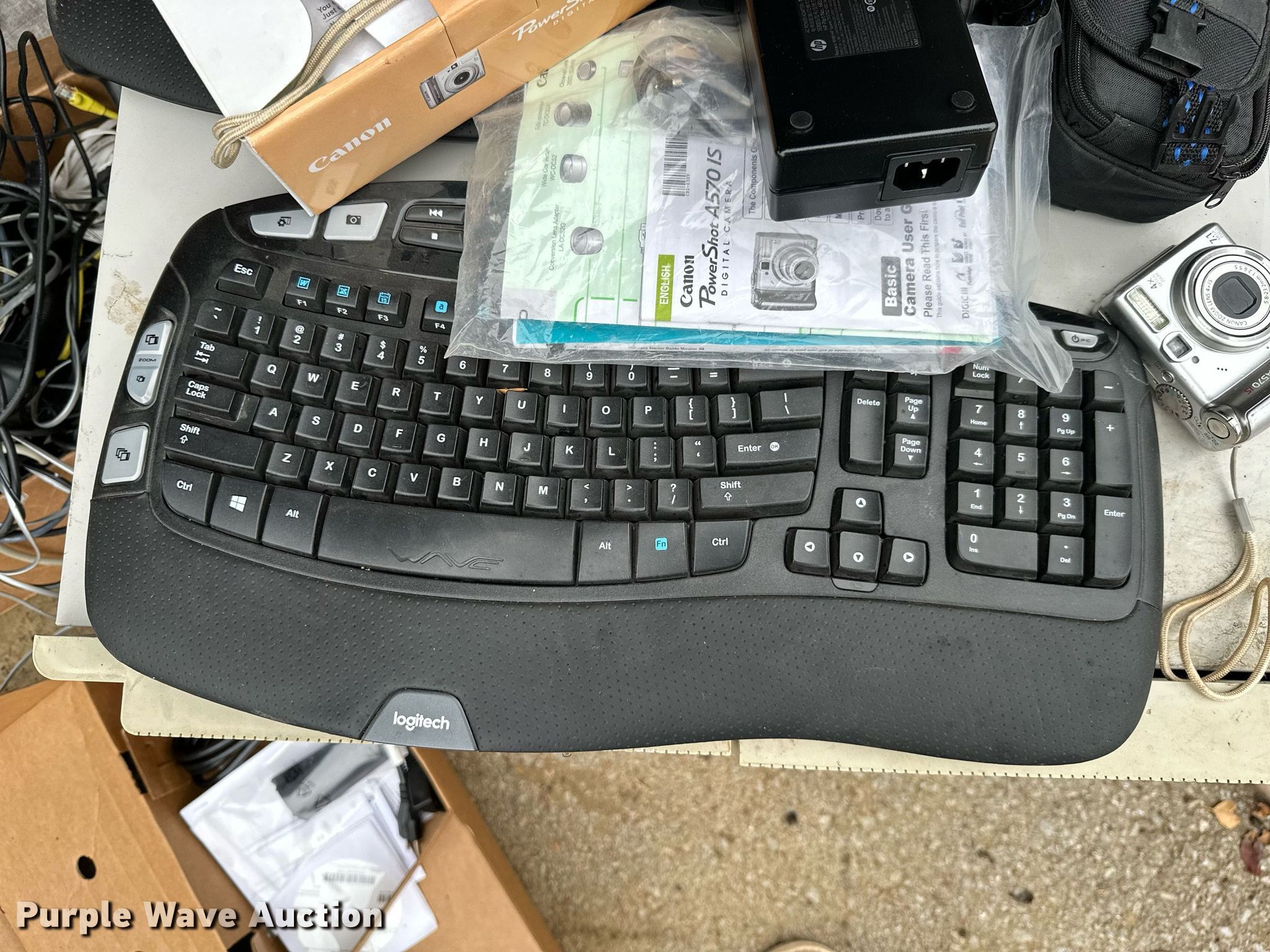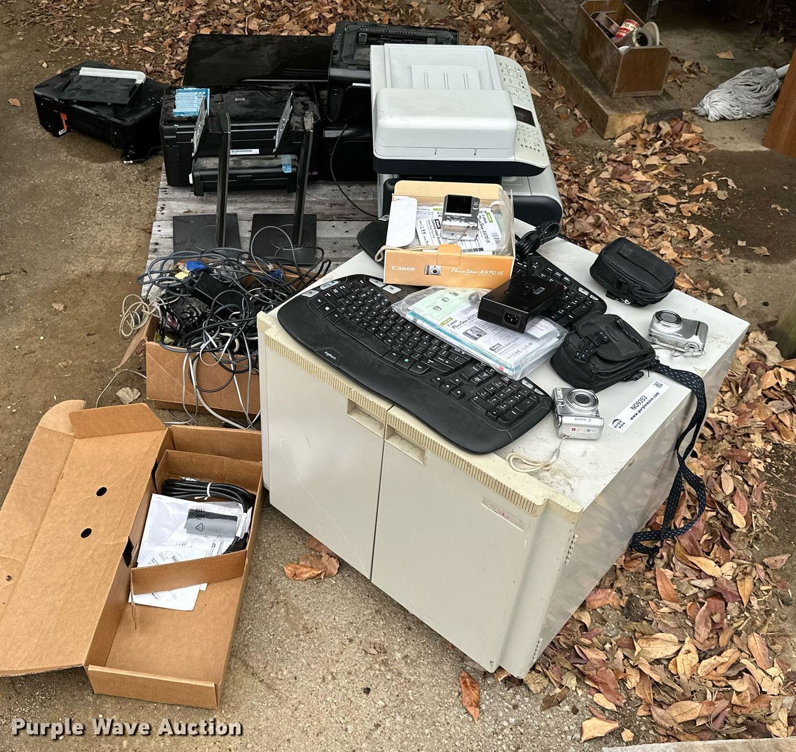 Purple Wave is selling a used Electronics in Kansas. This item is a Electronics with the following: (2) keyboards, Kodak digital camera, (2) Canon A570IS, (2) monitor stands, HP Photosmart printer, Canon printer, HP LaserJet P1102W printer, HP copy printer, Standing desk mount