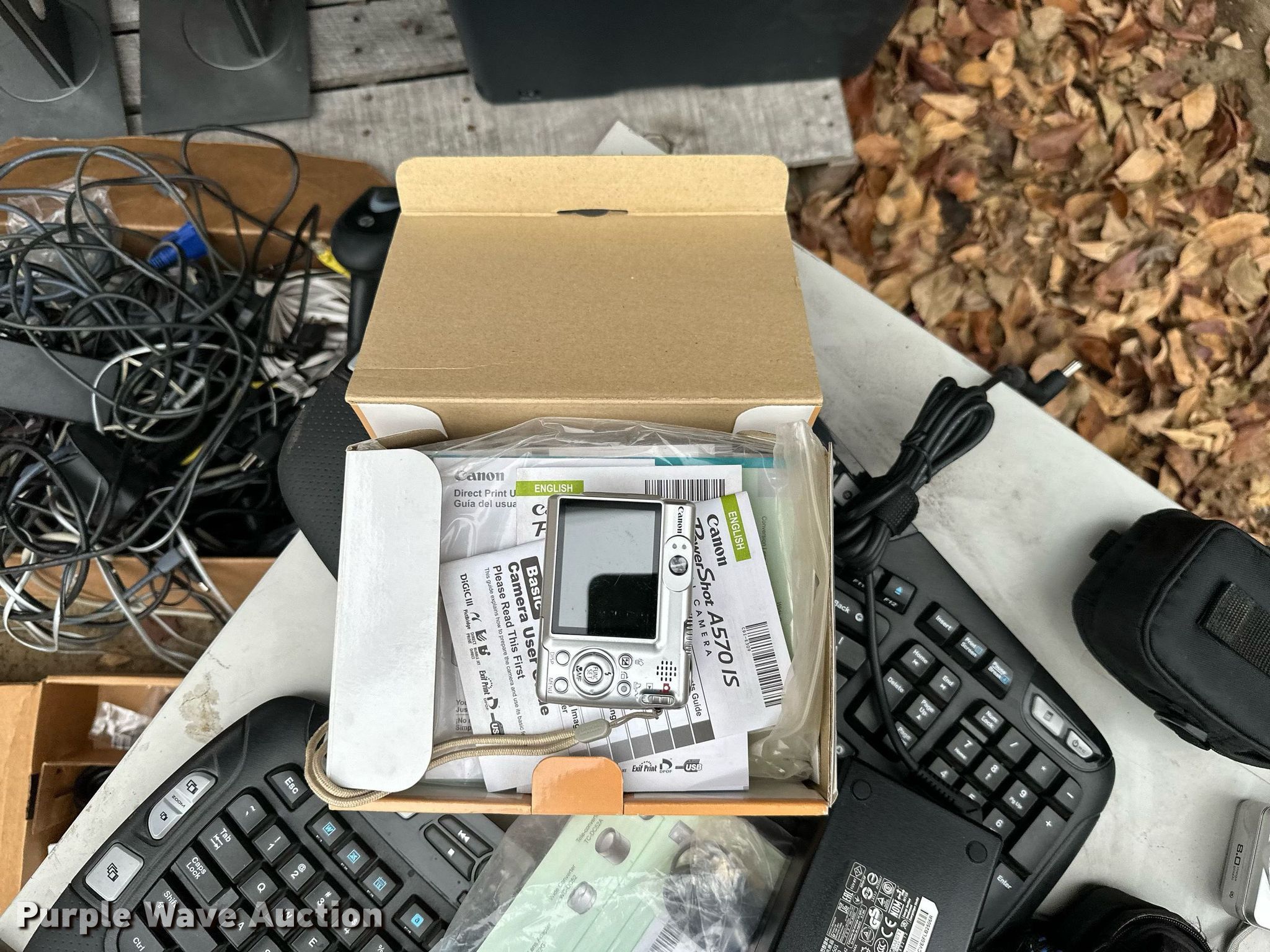 Electronics. (2) keyboards, Kodak digital camera, (2) Canon A570IS, (2) monitor stands, HP Photosmart printer, Canon printer, HP LaserJet P1102W printer, HP copy printer, Standing desk mount. Elk City State Park. 4825 N Squaw Crk. Independence, KS 67301