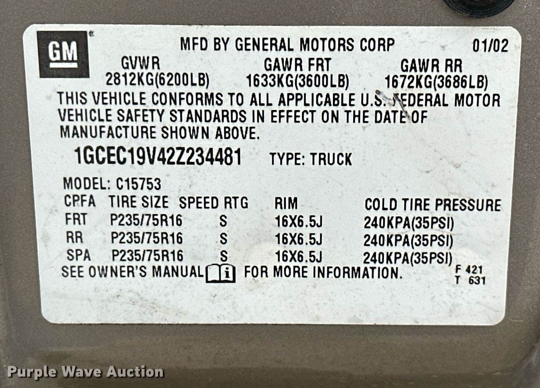 Purple Wave is selling a used 1/2 Ton Pickup or Van in Kansas. This item is a 2002 Chevrolet Silverado 1500 Ext. Cab pickup truck with the following: Miles: 164,994 on odometer, VIN: 1GCEC19V42Z234481