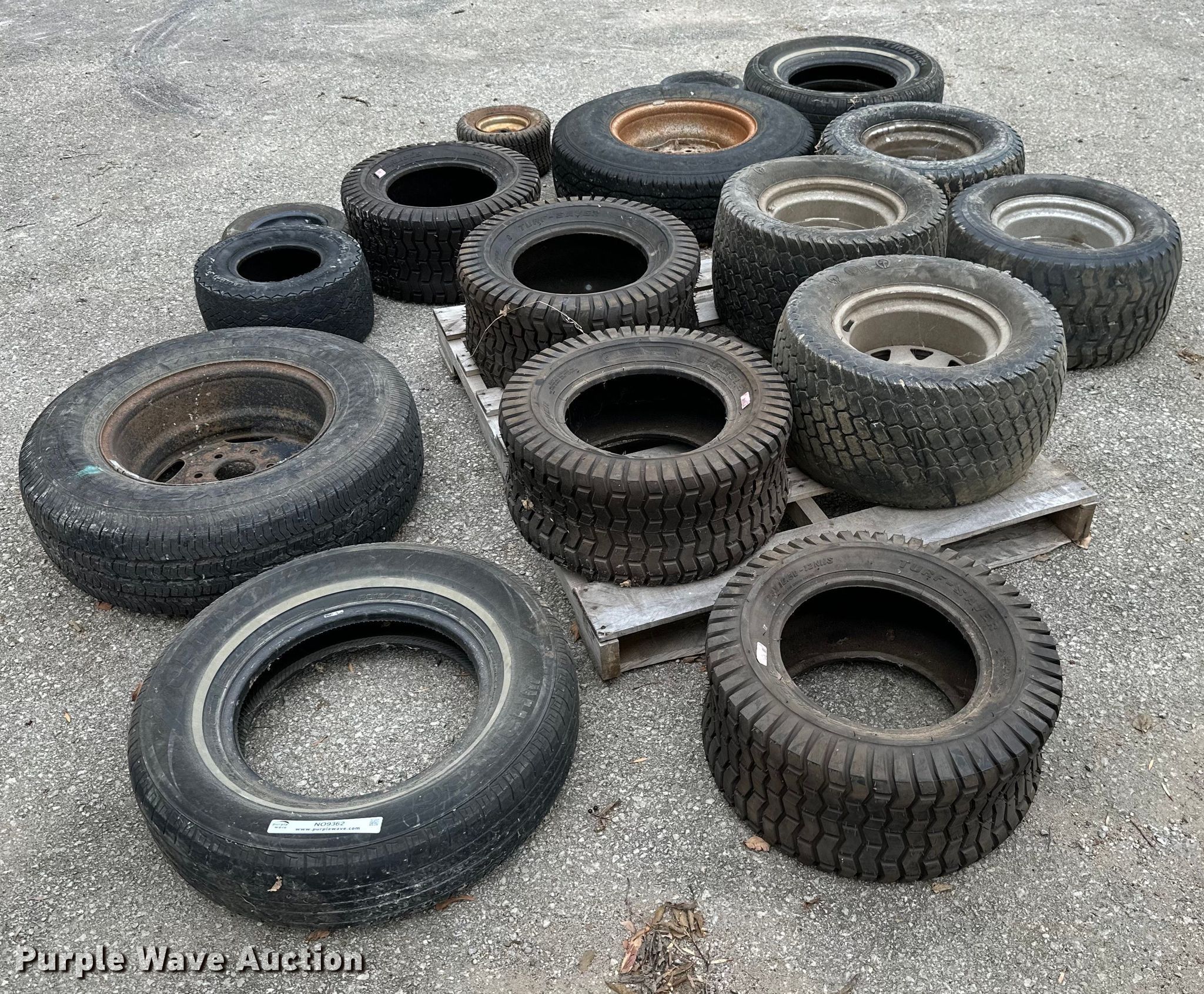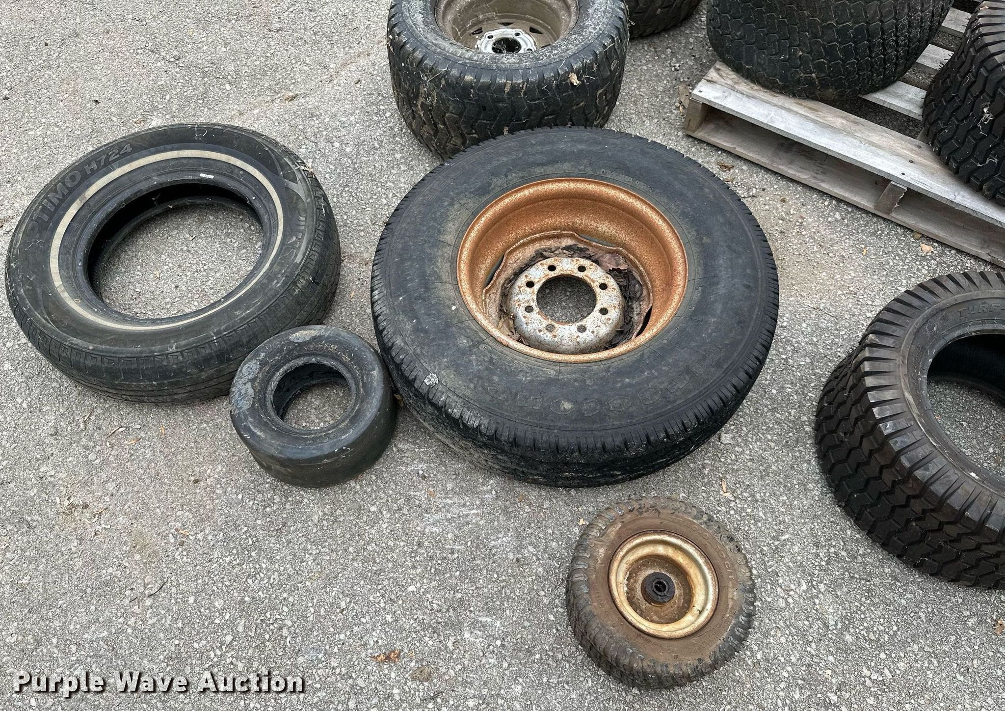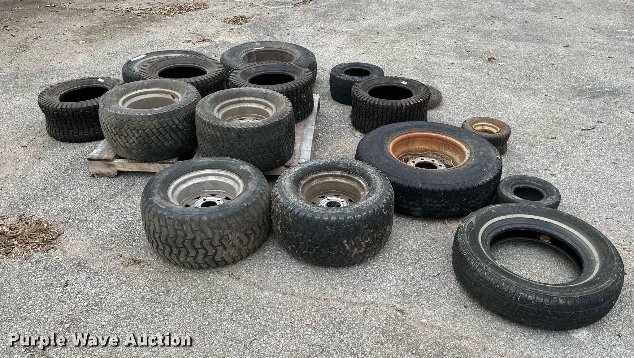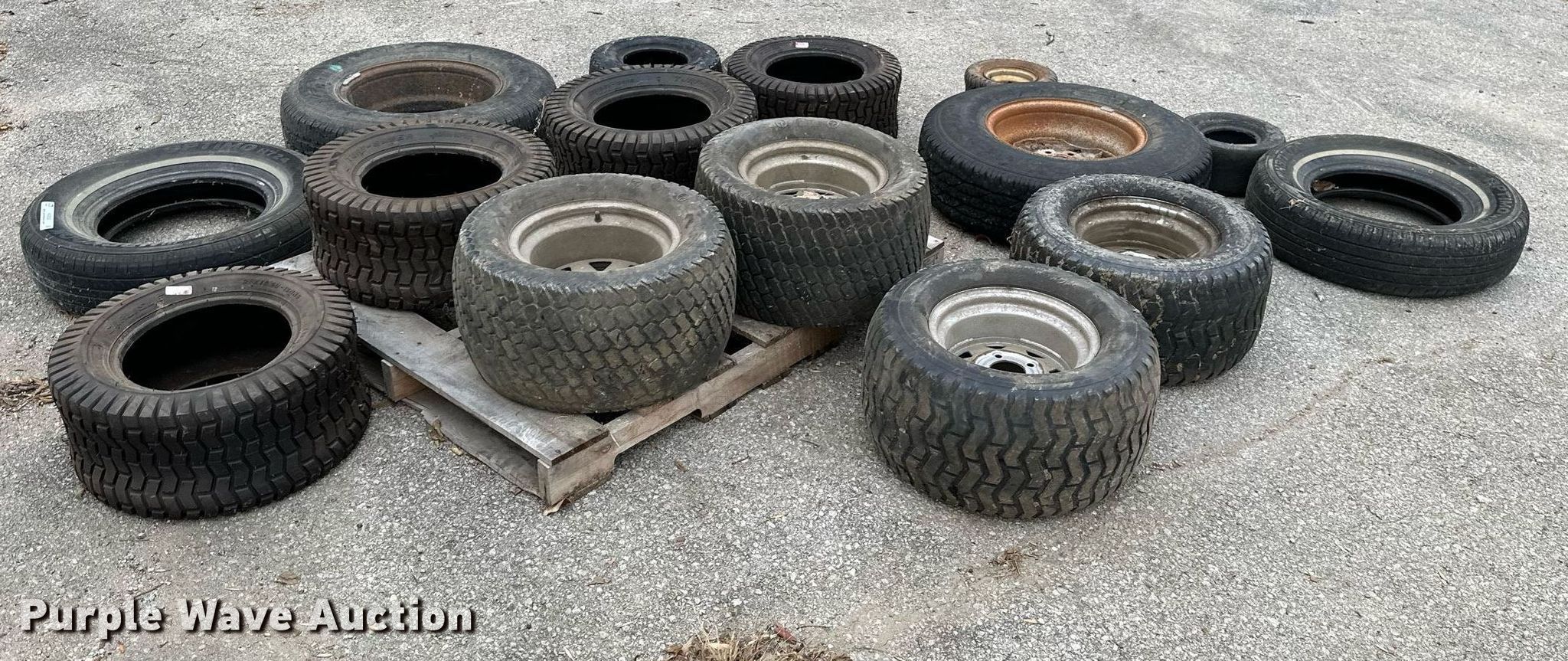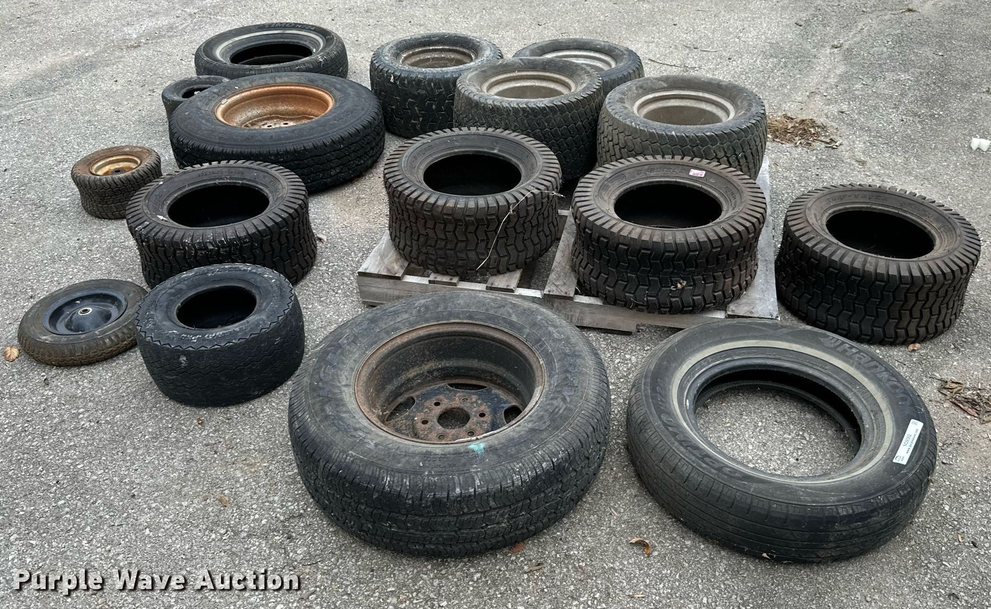 Purple Wave is selling a used Fleet Tires in Kansas. This item is a Tires and wheels with the following: 23x10.50-12, 215/75R15, 18x8.50-8, 3.50-8, 13x6.50-6, 235/85R16, 24x12.00-12
