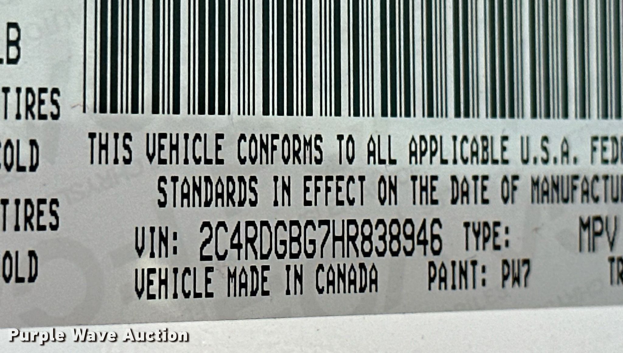 - VIN: 2C4RDGBG7HR838946