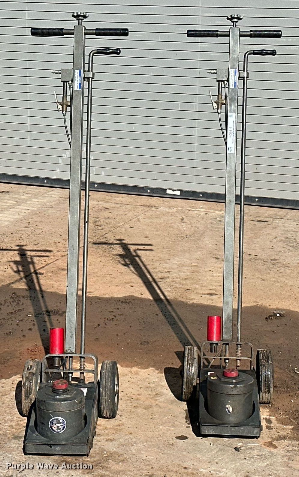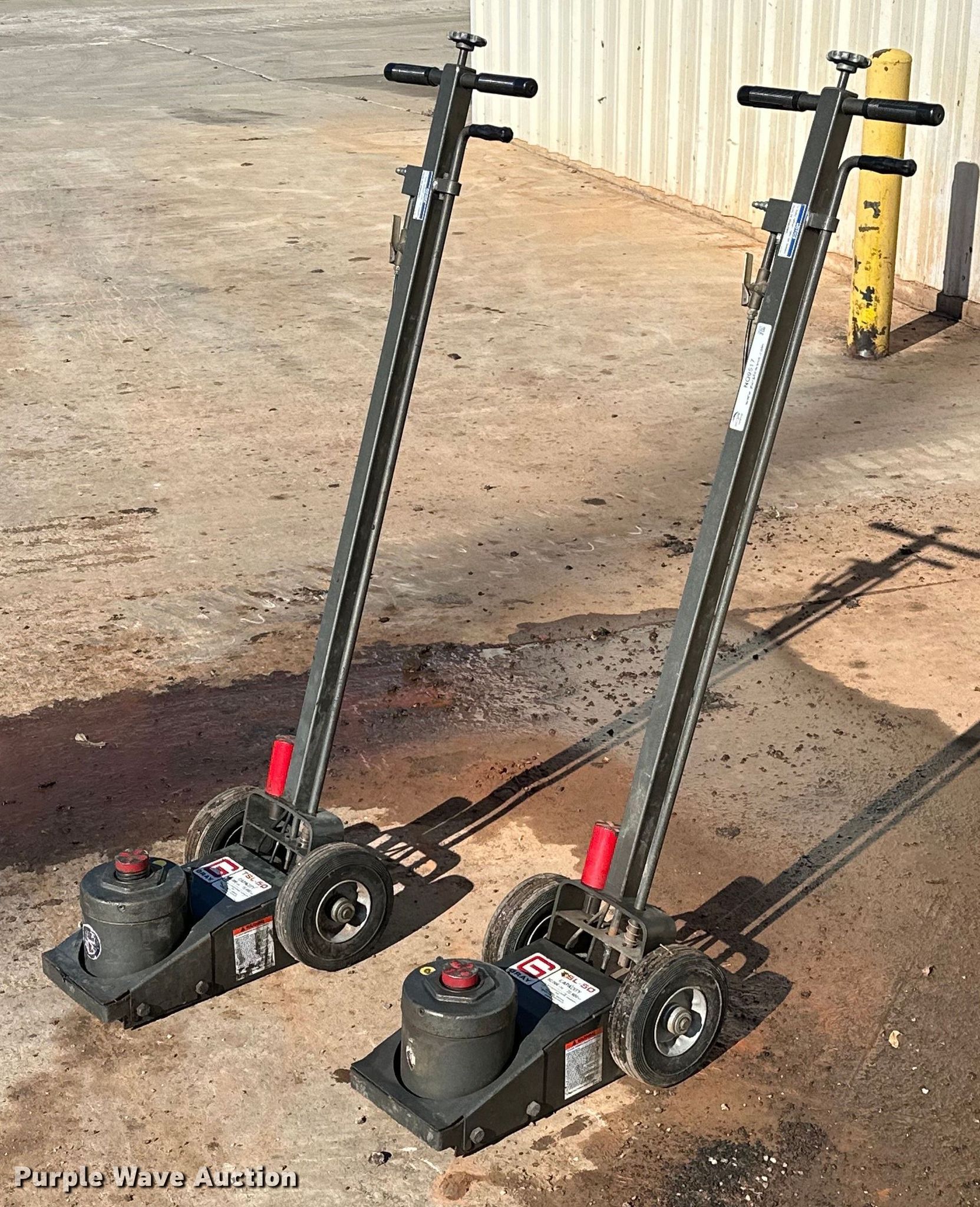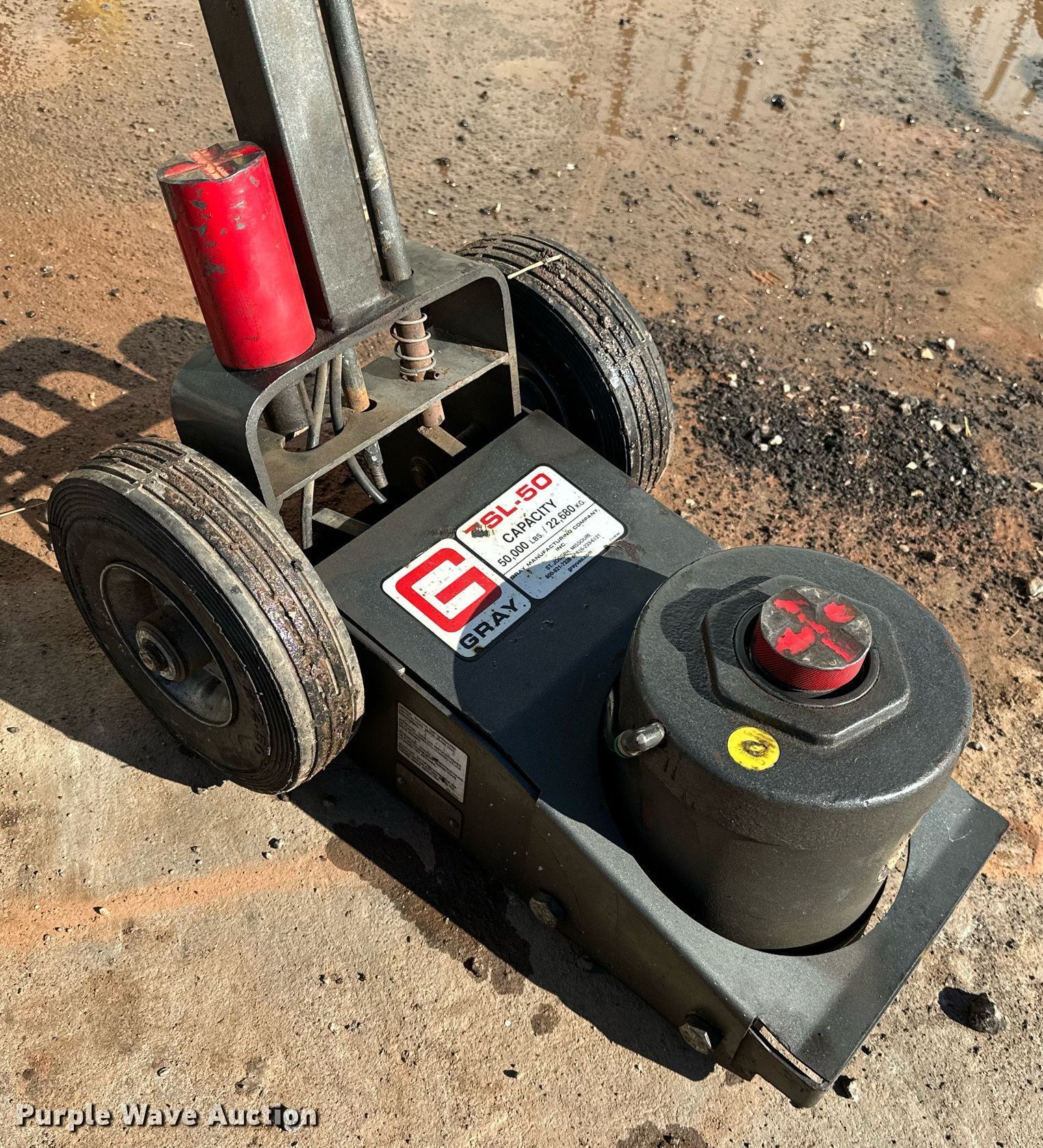 Purple Wave is selling a used Tools in Oklahoma. This item is a (2) Gray TSL-50 floor jacks with the following: Capacity: 50,000 lbs., Hydraulic cylinder leaks