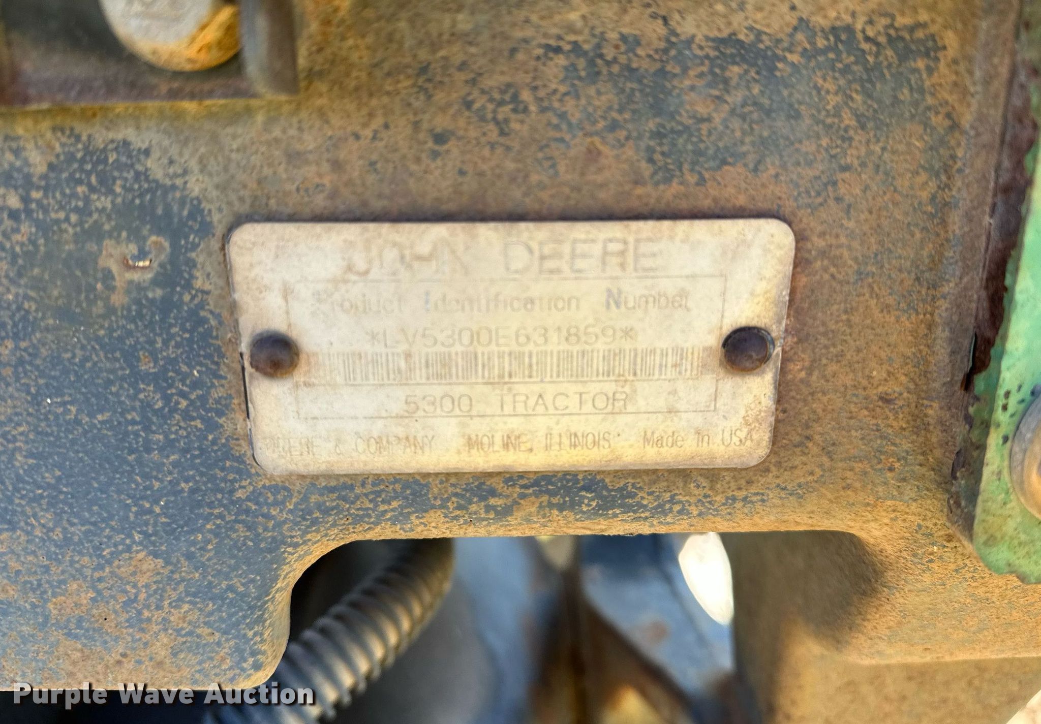 Purple Wave is selling a used Tractor in Oklahoma. This item is a 1996 John Deere 5300 MFWD tractor with the following: Hours: 811 on meter, Serial: LV5300E631859