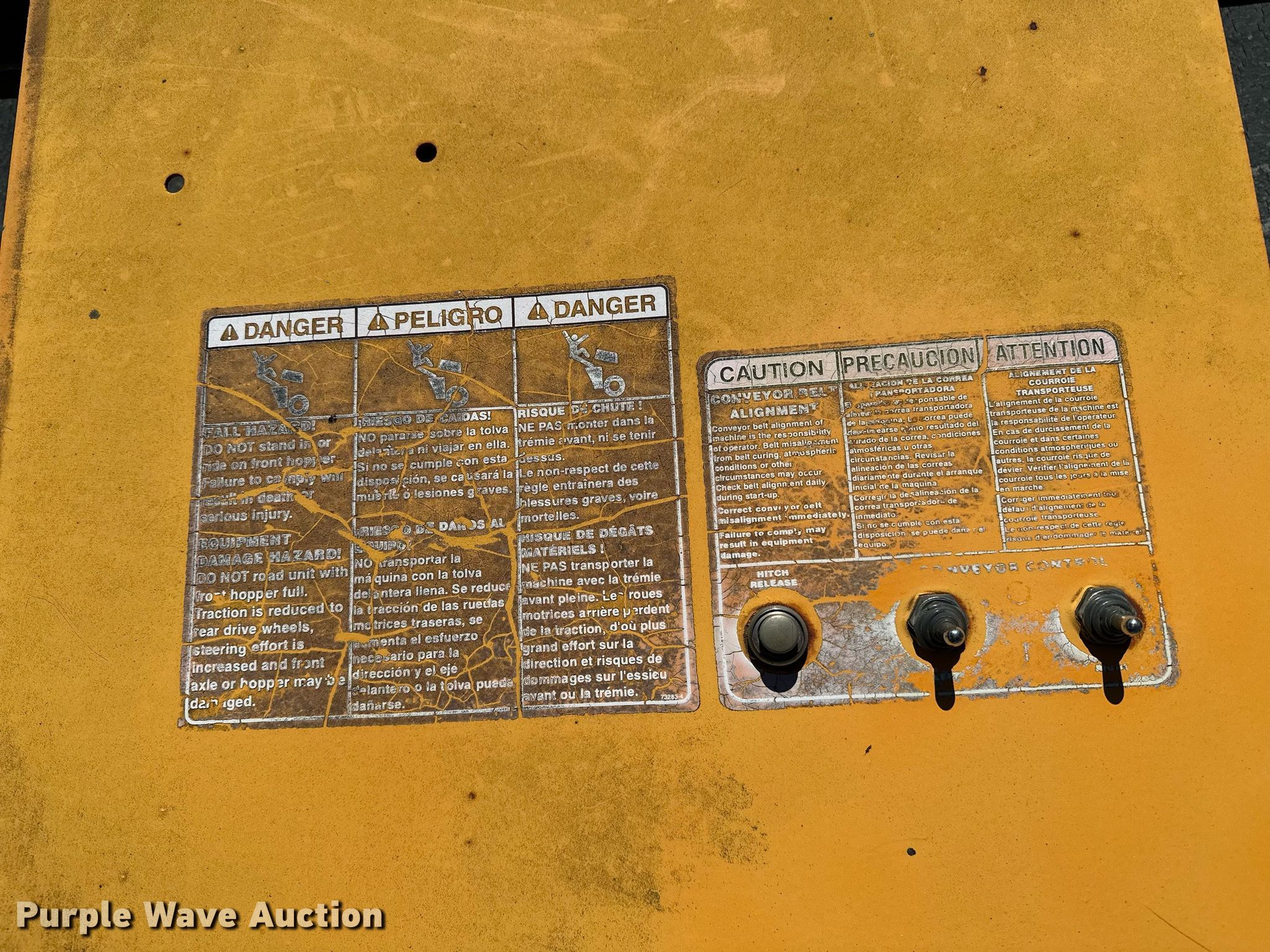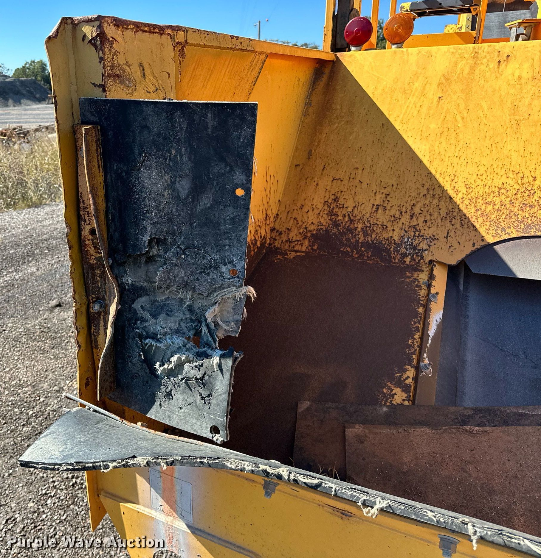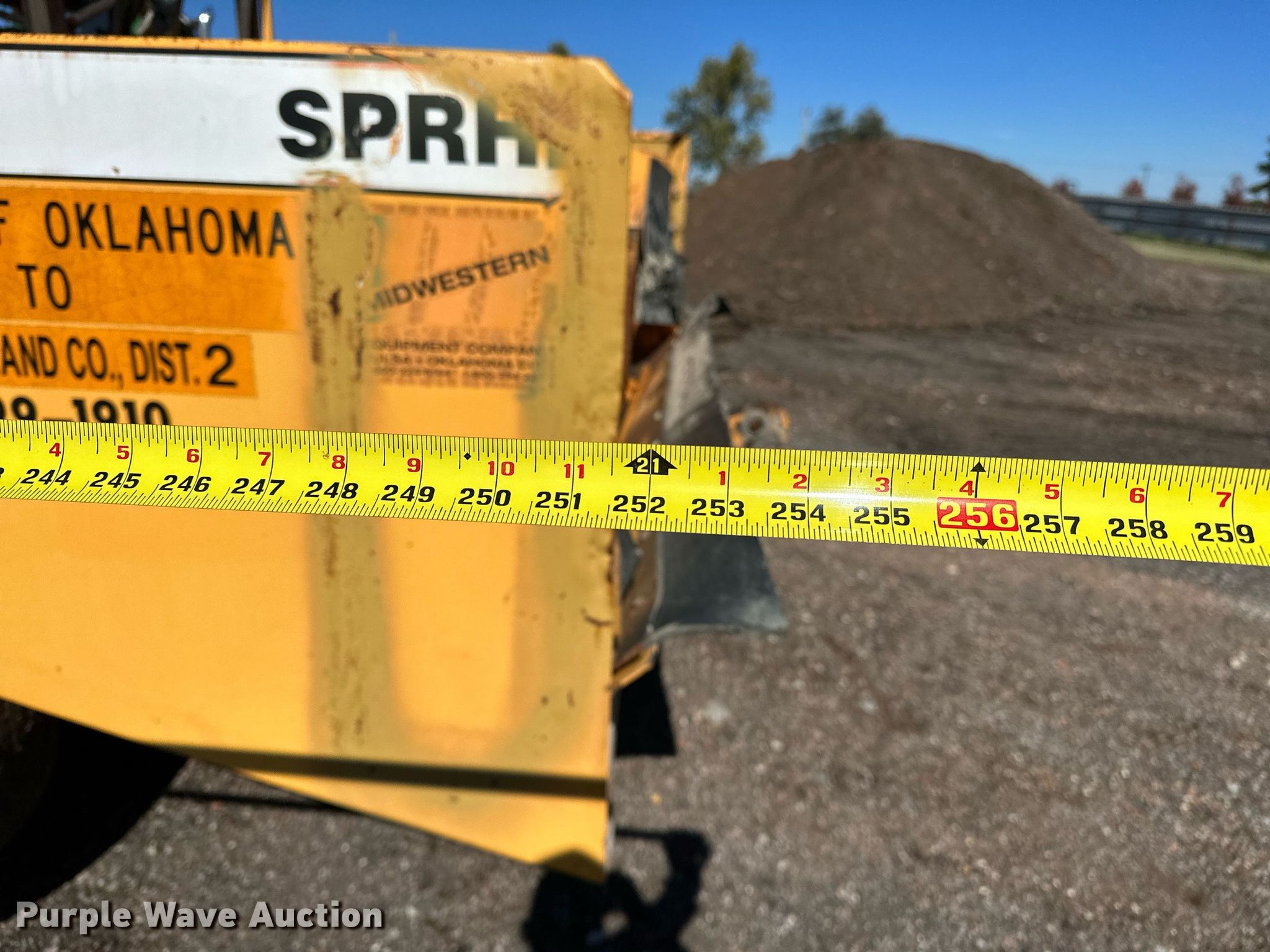 2004 Rosco SPRHH chip spreader. Hours: 621 on meter, Serial: 42140. Engine Cummins B5.9-C, Serial: 46220492, Displacement: 5.9L, Cylinders: 6, Fuel type: Diesel. Transmission Hydrostatic. Features Front spread hopper width: 13', Material conveyor Width: 20", Truck hitch. Tires Size: 385/65R22.5. Notes Contents not included. Cleveland County. 6706 Alameda St. Norman, OK 73026