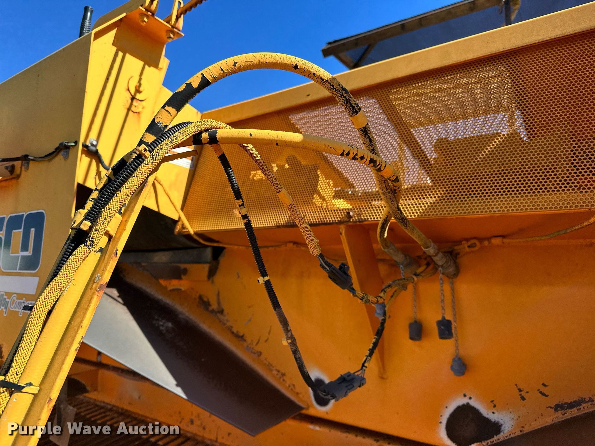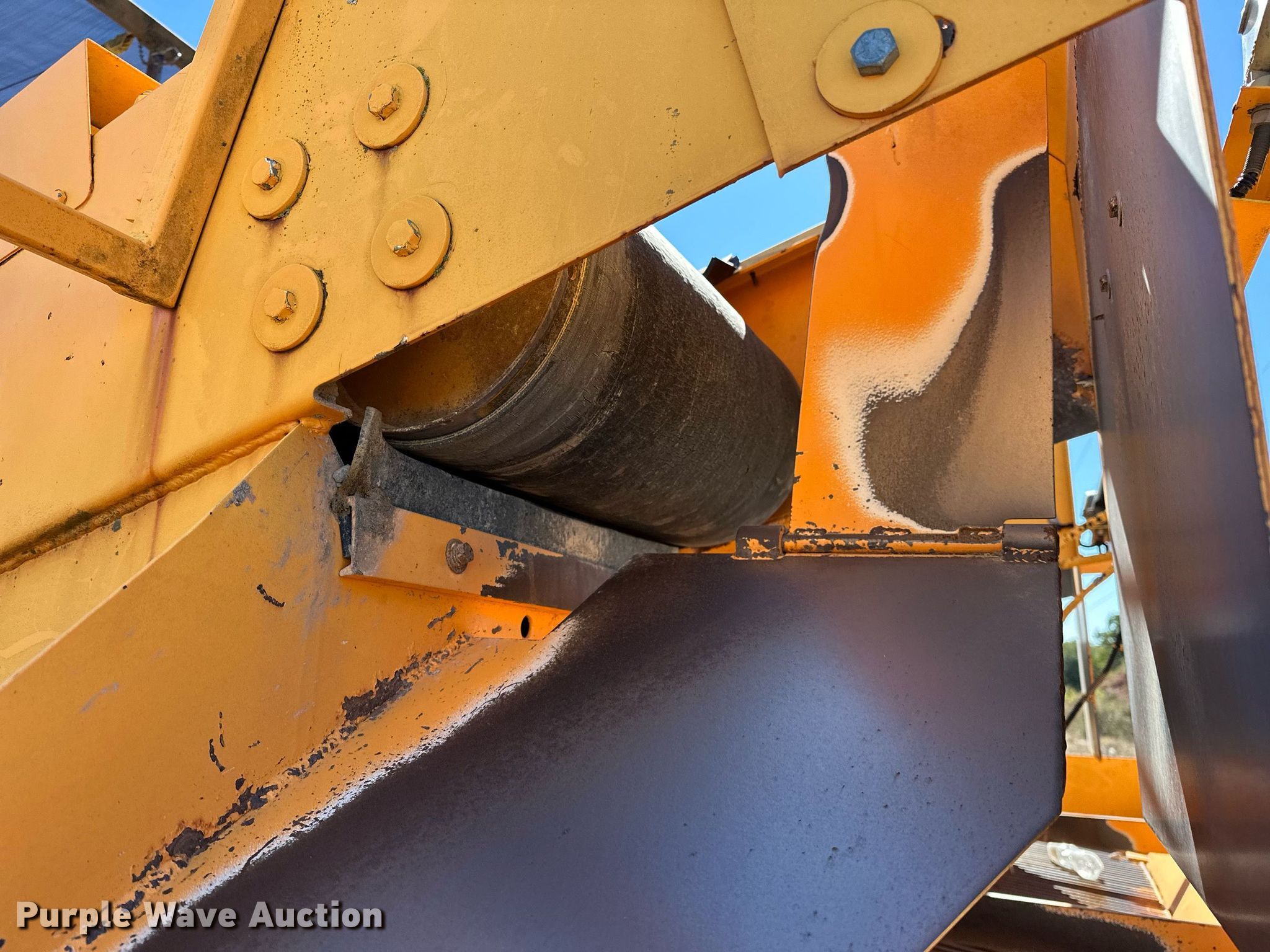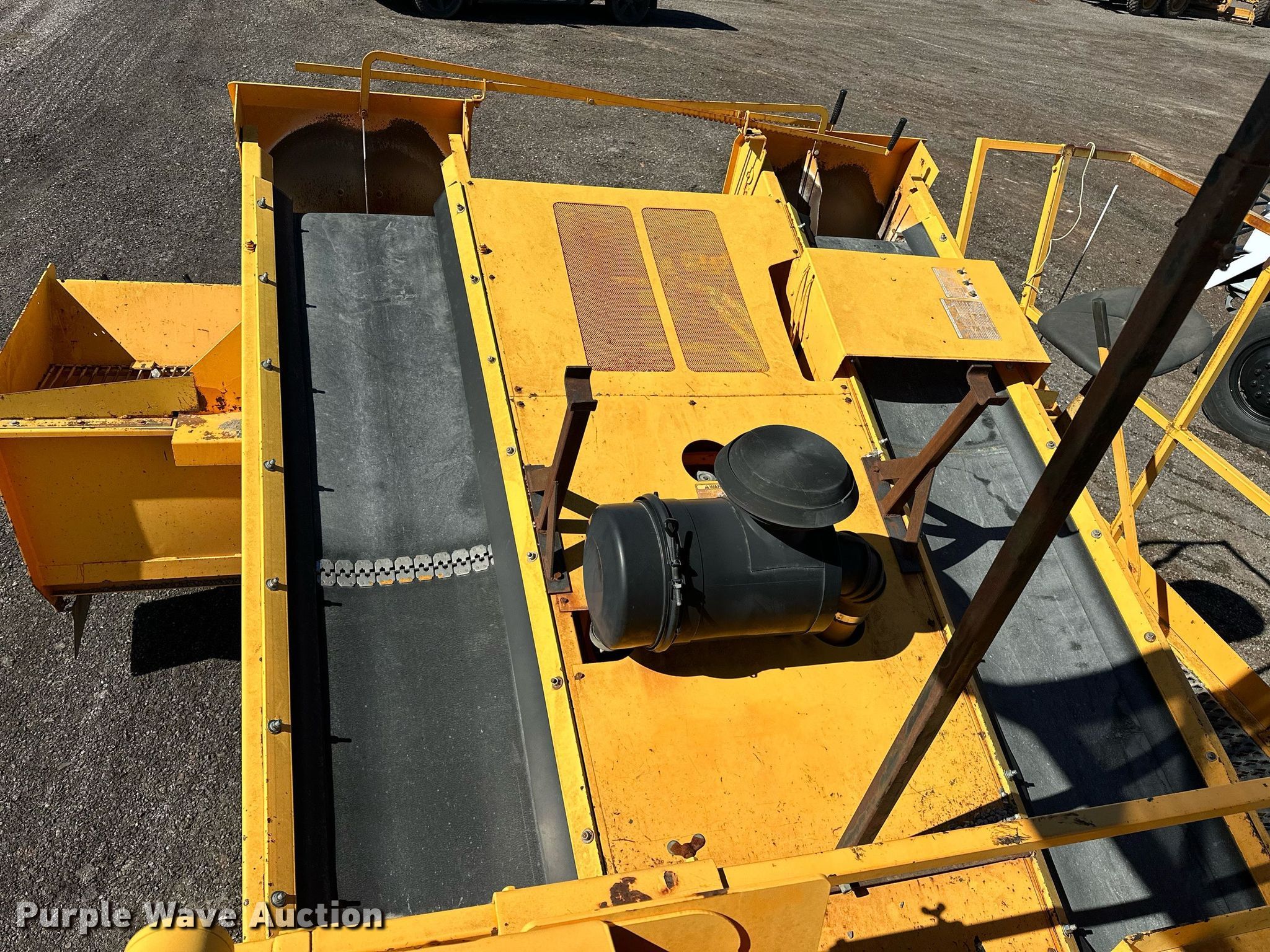 2004 Rosco SPRHH chip spreader. Hours: 621 on meter, Serial: 42140. Engine Cummins B5.9-C, Serial: 46220492, Displacement: 5.9L, Cylinders: 6, Fuel type: Diesel. Transmission Hydrostatic. Features Front spread hopper width: 13', Material conveyor Width: 20", Truck hitch. Tires Size: 385/65R22.5. Notes Contents not included. Cleveland County. 6706 Alameda St. Norman, OK 73026