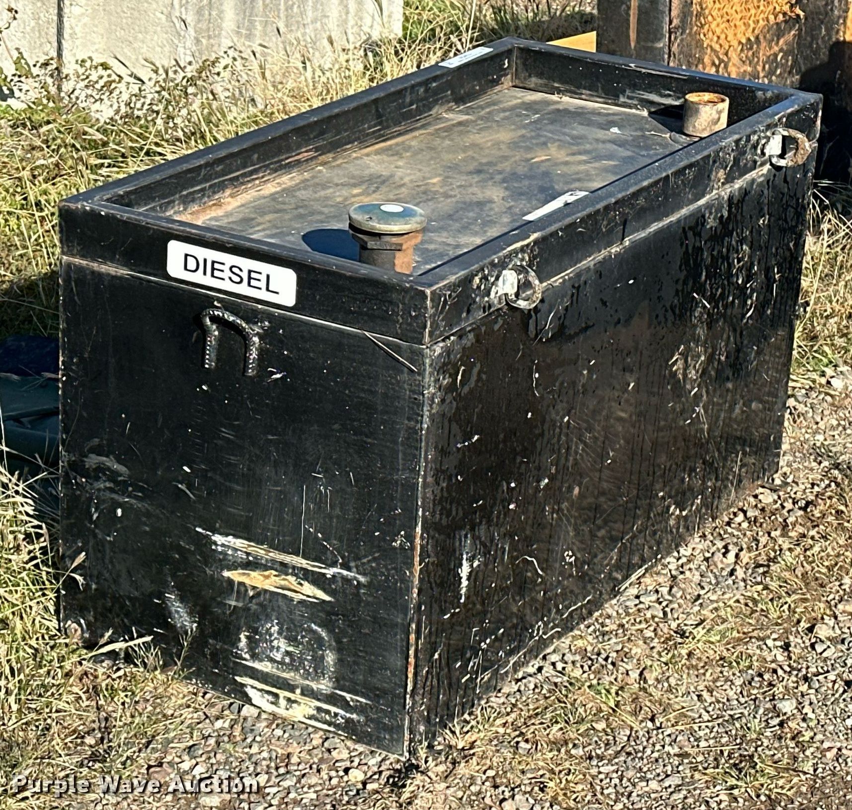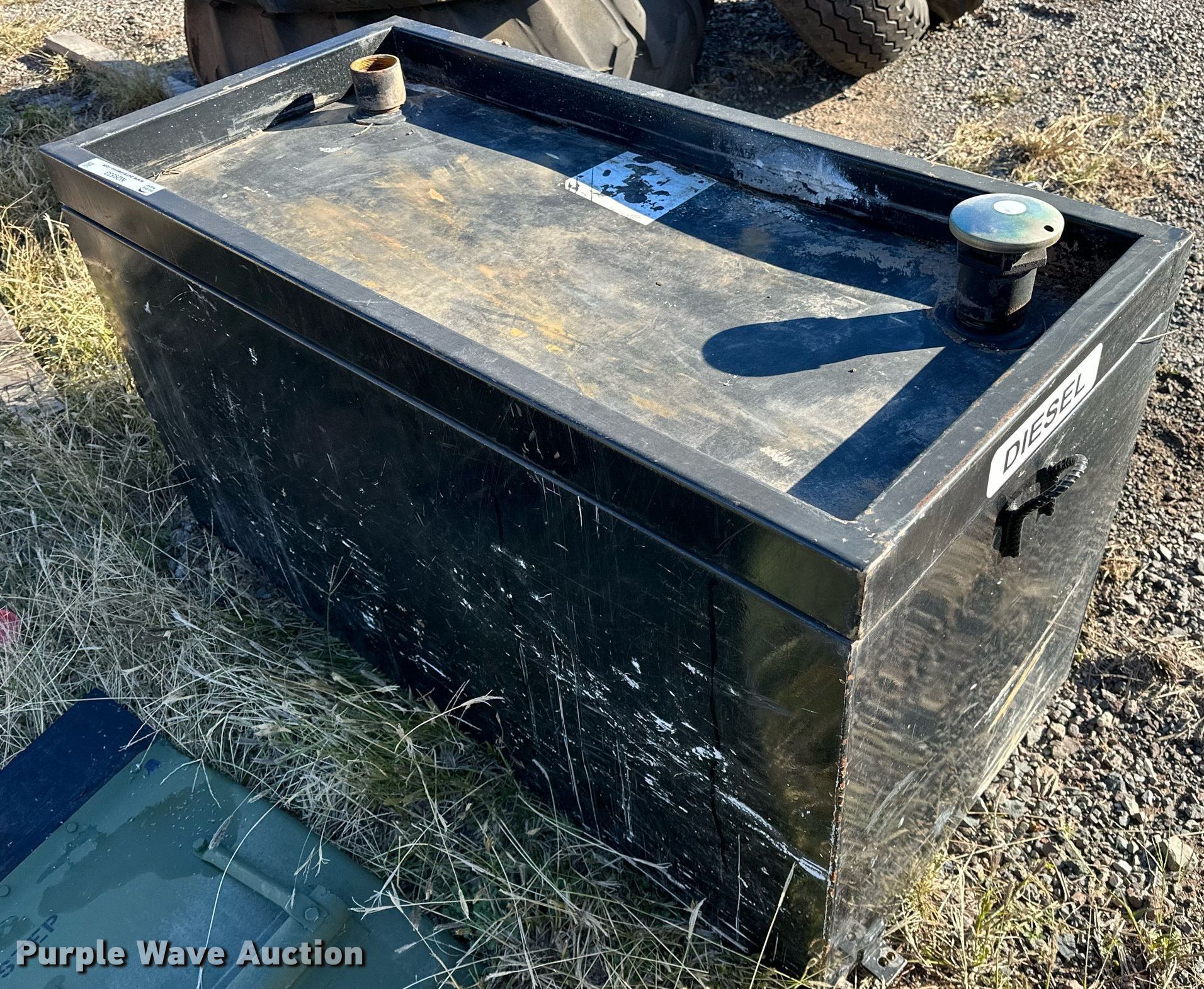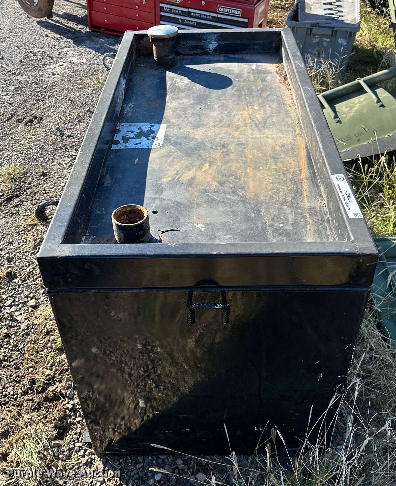 Purple Wave is selling a used Fuel and Lube in Oklahoma. This item is a Fuel tank with the following: 4' x 23" x 27", Previously held diesel