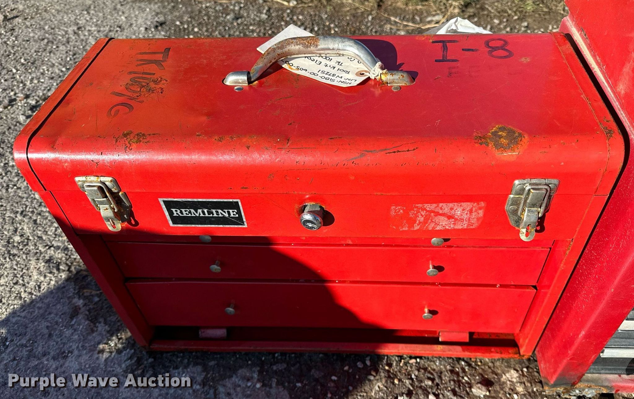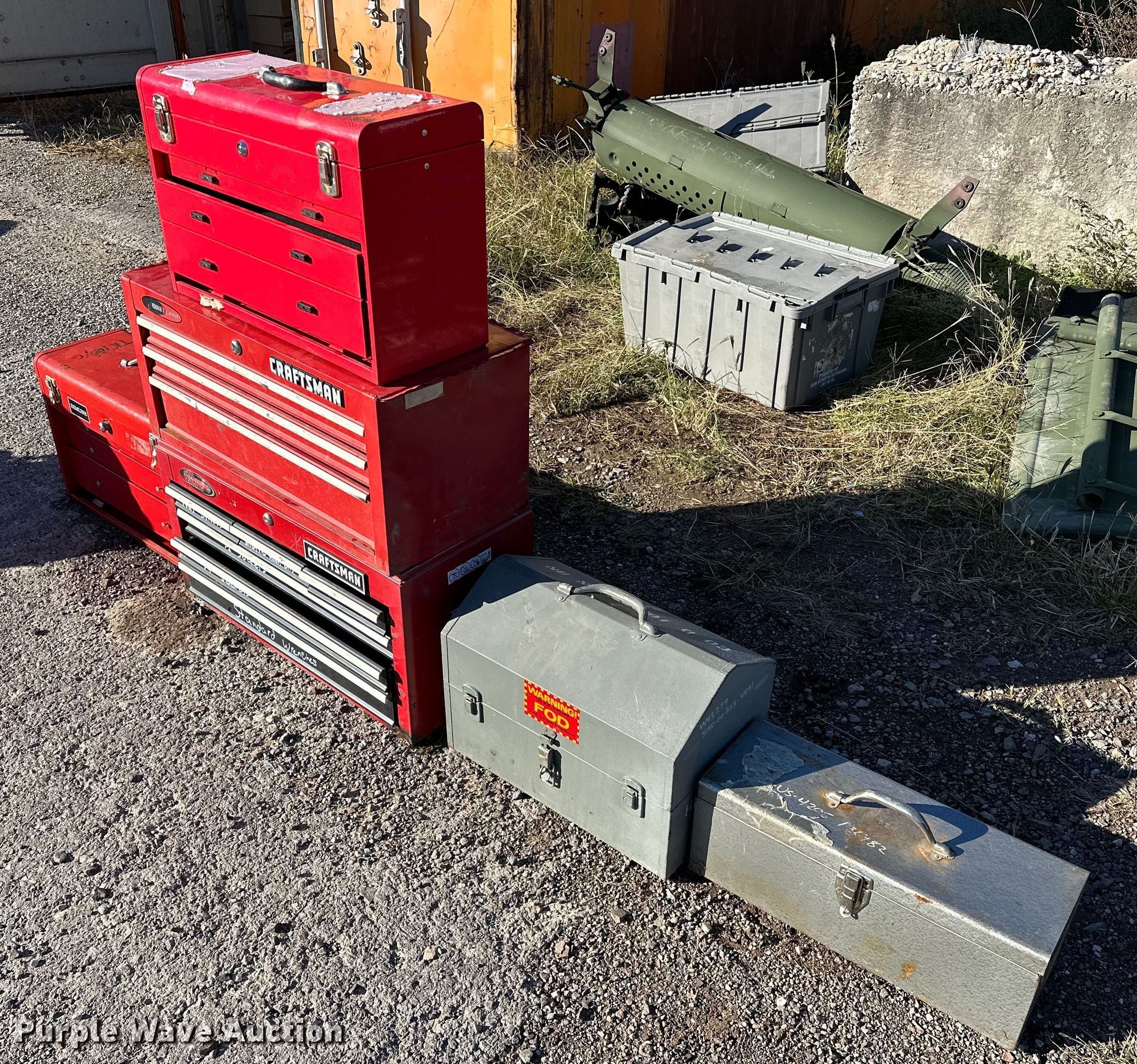 Purple Wave is selling a used Tools in Oklahoma. This item is a (5) toolboxes with the following: (2) Kennedy Kits, Craftsman stacked, Remline