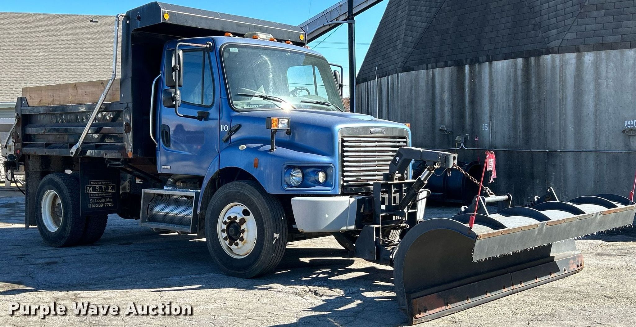 2010 Freightliner Business Class M2 dump truck. Miles: 27,506 on odometer, Hours: 2,380 on meter, VIN: 1FVAC2BT9ADAU4577. Engine Cummins ISC-240, Displacement: 8.3L, Cylinders: 6, Fuel type: Diesel, HP: 240. Transmission Allison, Automatic. Chassis Axles: Single, Differential lock: Inter-axle, Suspension: Spring, Brakes: Hydraulic, PTO, GVWR: 33,000 lbs FAWR: 12,000 lbs, RAWR: 21,000 lbs. Interior Heat, Heated mirrors, Cruise control. Features Dump bed Warren U451H-10, 10'L x 96" W, Side height: 27", Side board height: 11", Bed type: Steel, Roll tarp, Ram: Single , End gate: Manual, Spreader Buyers Salt Dog 92420SSA, Plow Henke, Width: 120". Tires Size: 11/R22.5. Notes Quick couplers for angle cylinders will be installed on plow prior to auction, Dash warning indicator: ABS. Missouri title. Title distribution may be delayed up to 14 days from verification of funds. City of Manchester, MO. Manchester, MO 63021