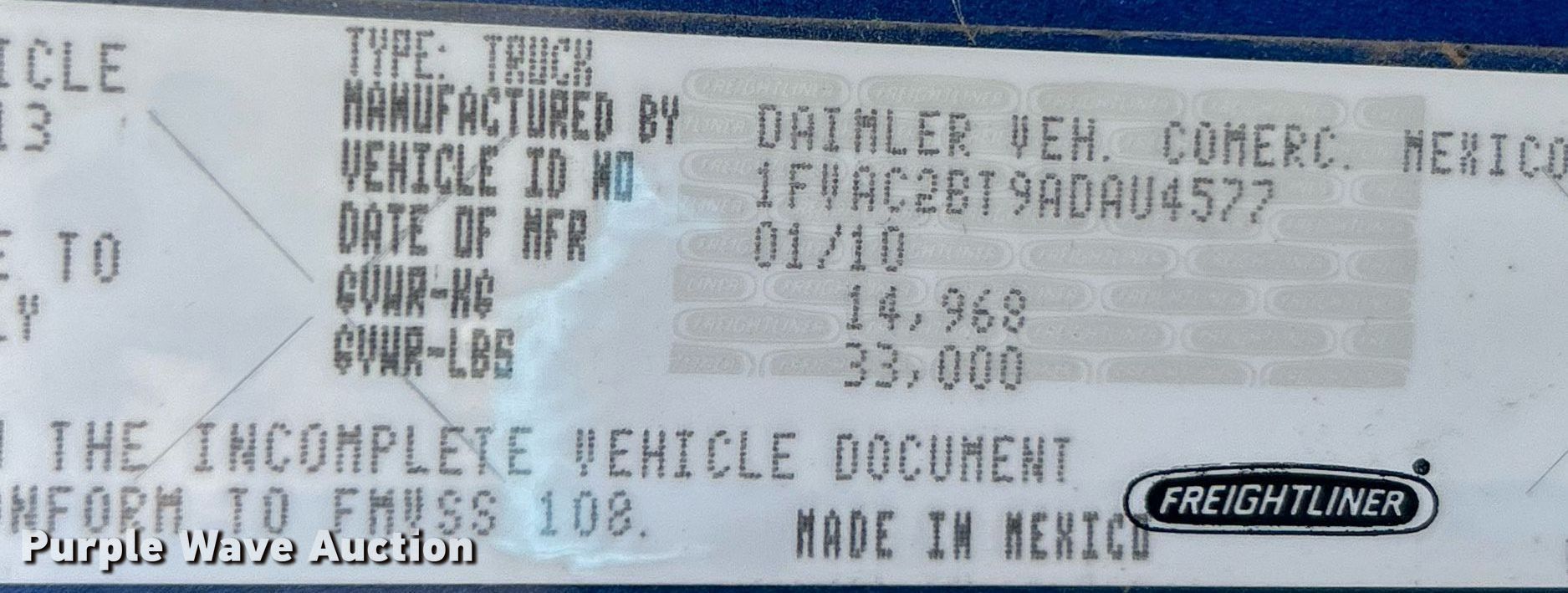 Purple Wave is selling a used Construction Dump Truck in Missouri. This item is a 2010 Freightliner Business Class M2 dump truck with the following: Miles: 27,506 on odometer, Hours: 2,380 on meter, VIN: 1FVAC2BT9ADAU4577