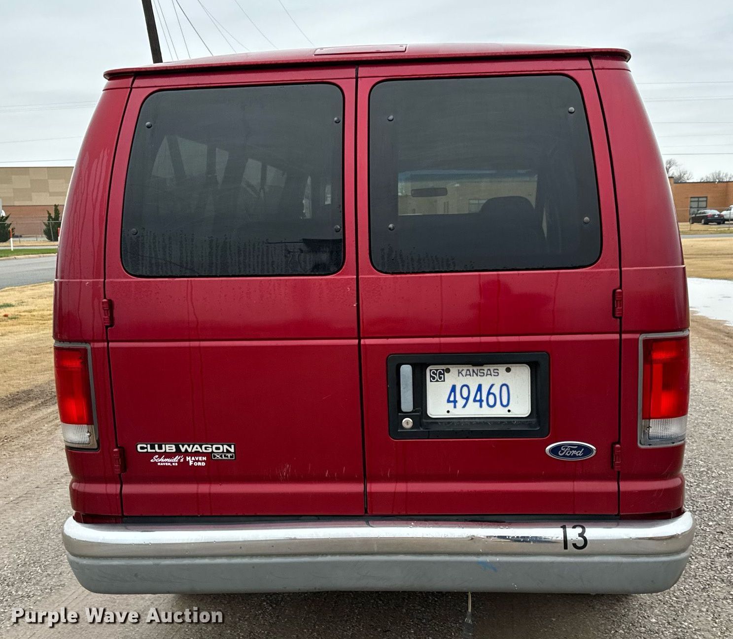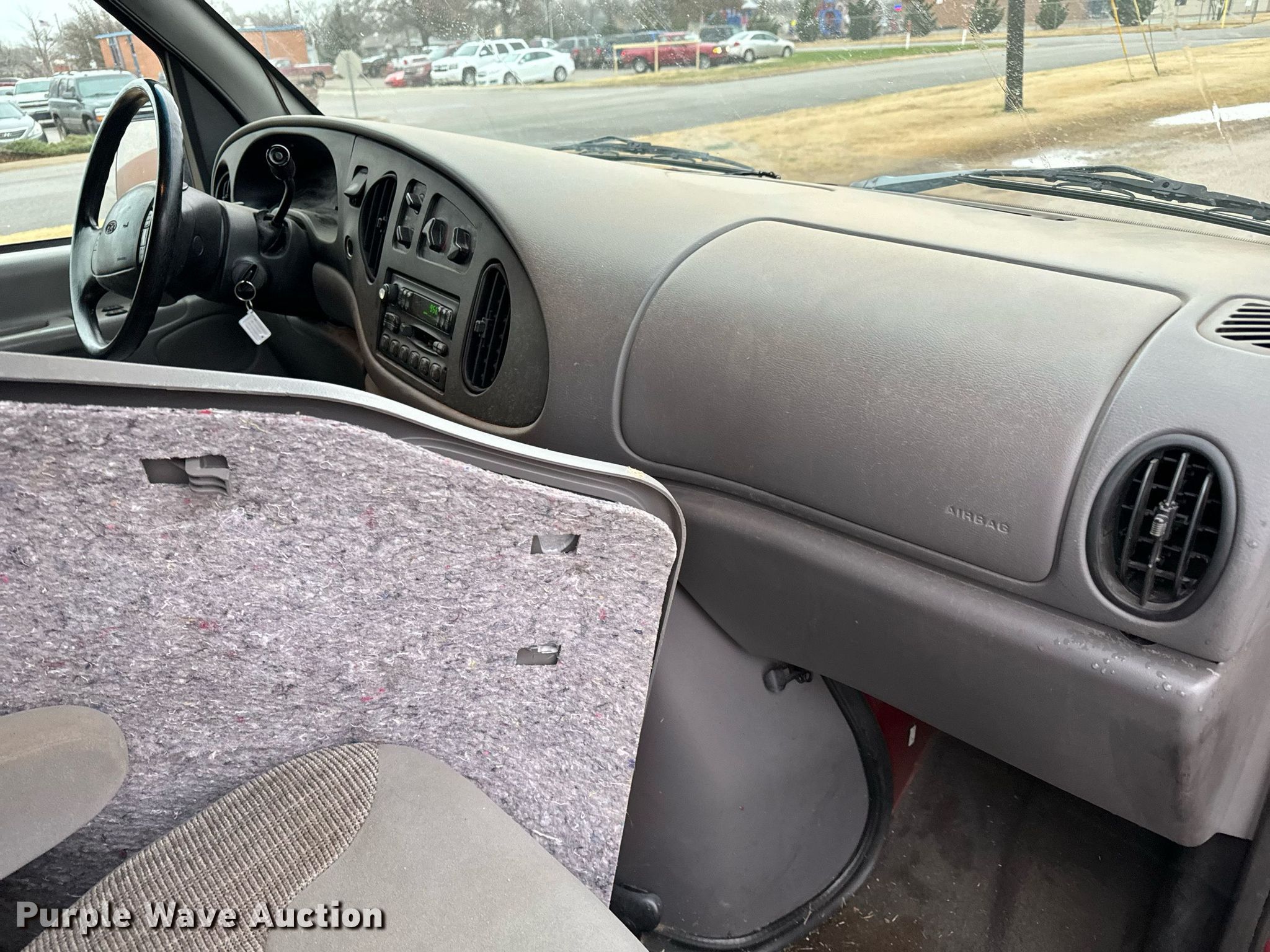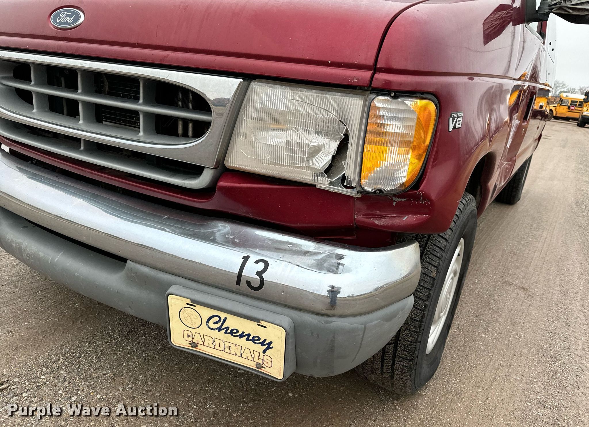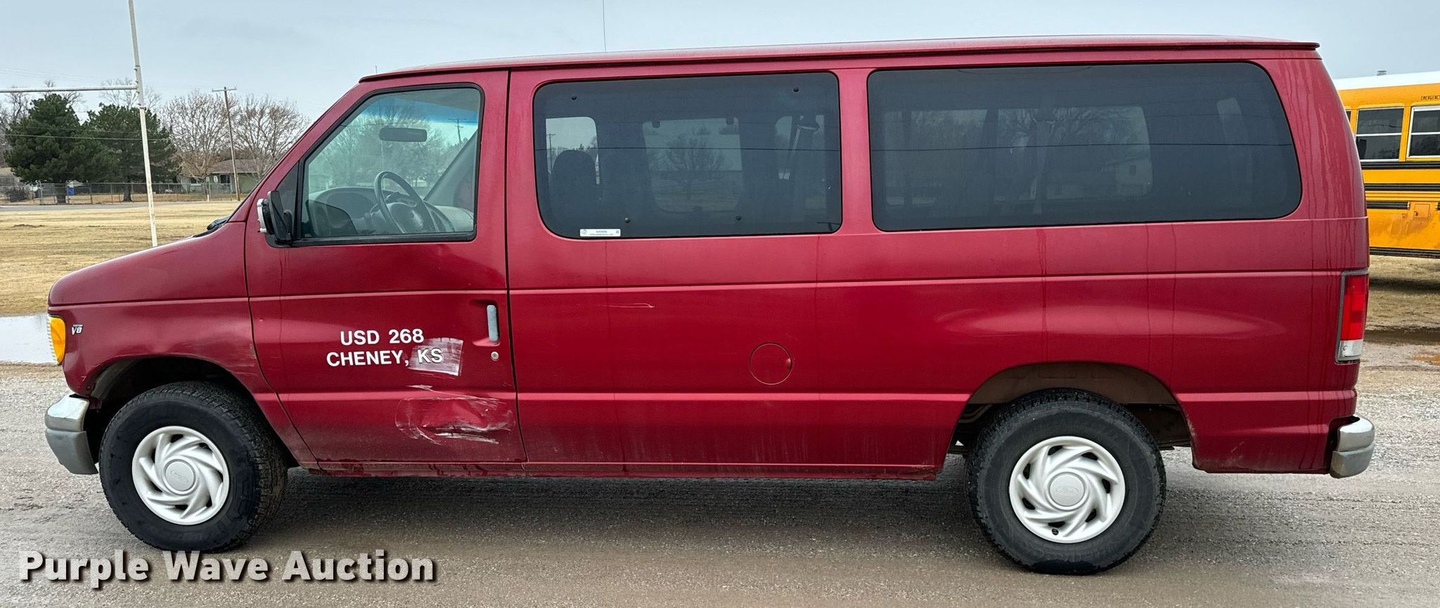 1998 Ford Club Wagon van. Miles: 222,731 on odometer, VIN: 1FMRE1162WHB60128, Unit #: 13. Engine Displacement: 4.6L V8 SOHC, Cylinders: 8, Fuel type: Gas. Transmission Automatic. Interior AC, Heat, Power windows, Power locks, Cruise control. Tires Size: 235/75R15. Notes Dash warning indicator: Check engine, Rear door latch issues, Non-operational passenger side window. Kansas title. Title distribution may be delayed up to 30 days from verification of funds. USD 268 Cheney. 100 West 6th Avenue. Cheney, KS 67025