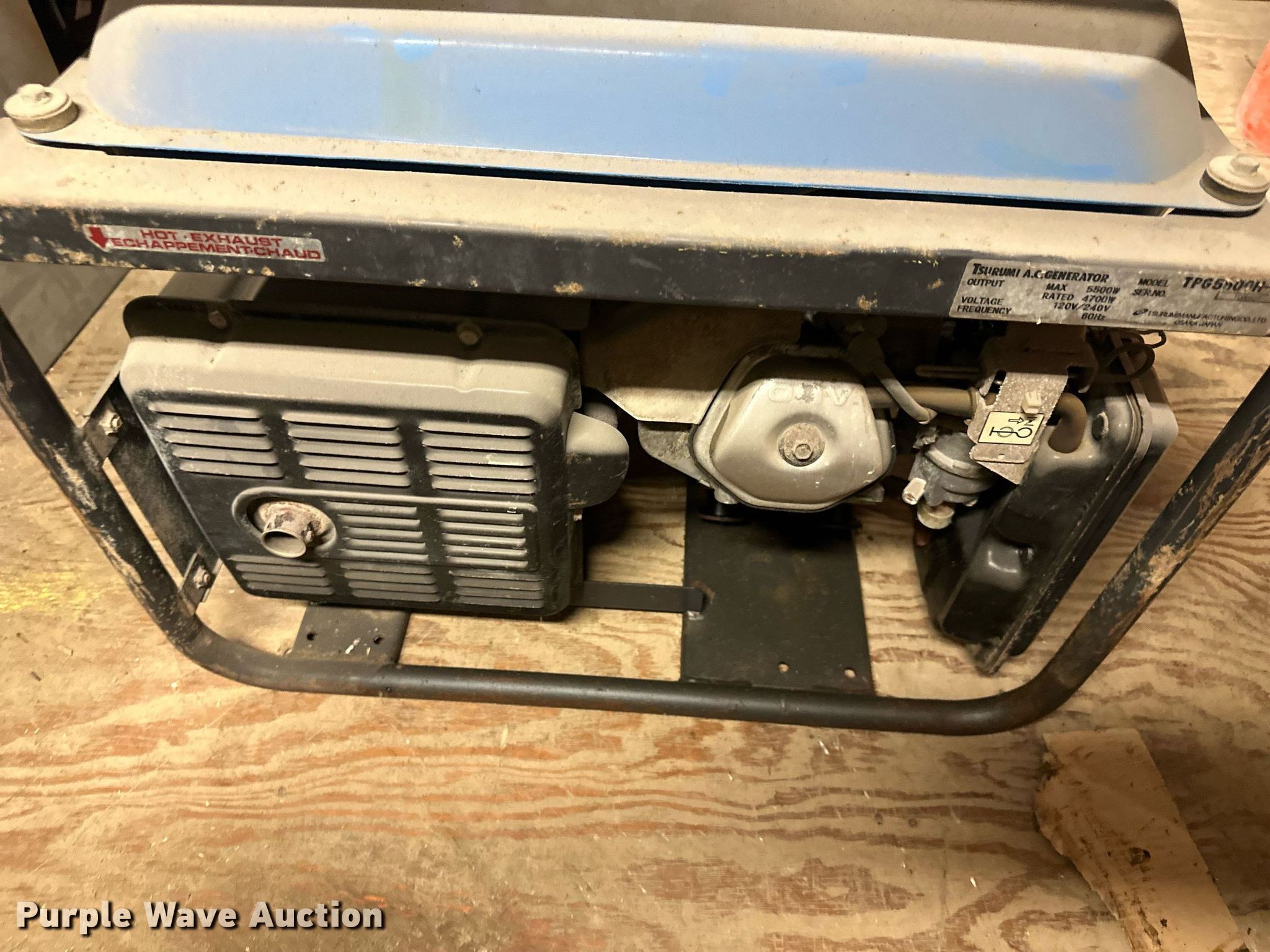 Purple Wave is selling a used Generator Set in Missouri. This item is a (2) generators with the following: Multi-quip 2300, Subaru, Recoil start, Tsurumi TPG-5500H-DX, Honda, Recoil start, Unknown operating condition