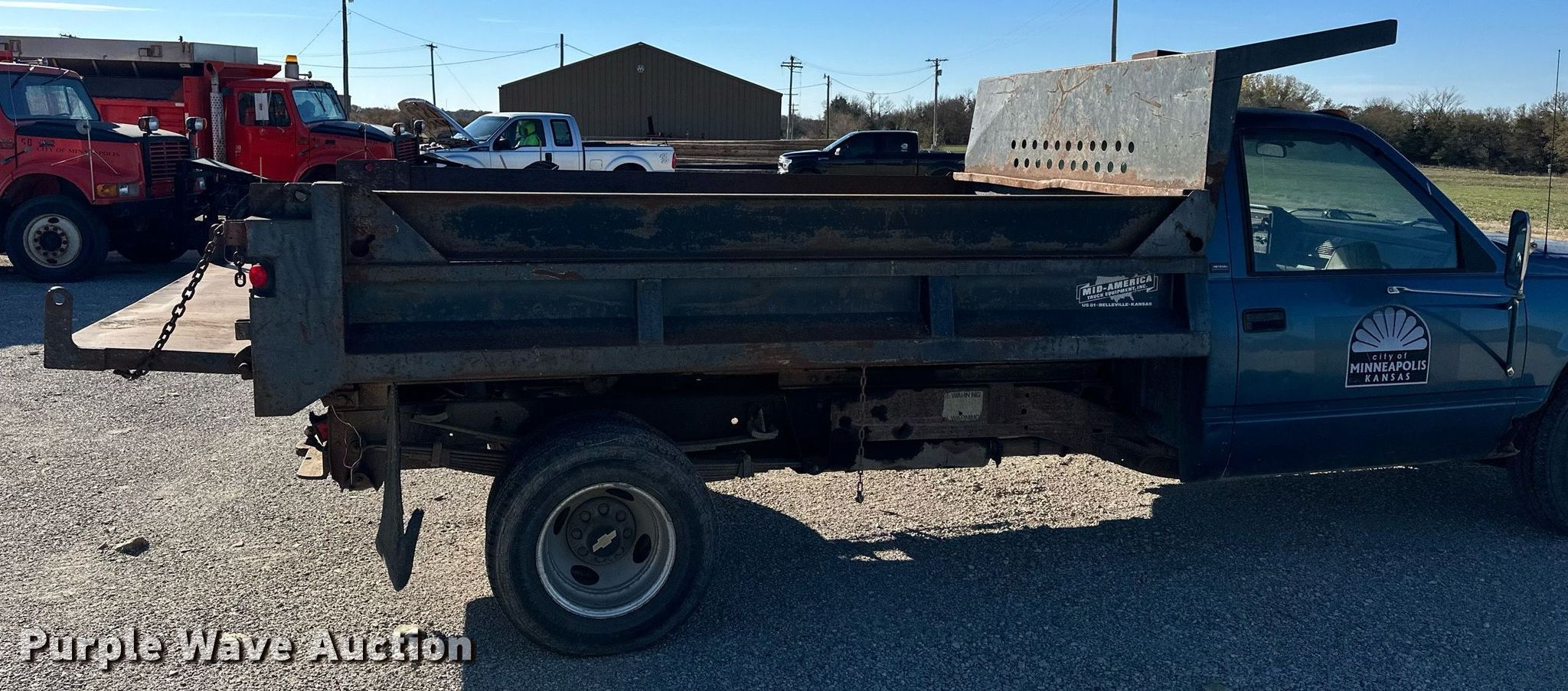 1991 Chevrolet 3500 dump bed pickup truck. Miles: 9,810 on odometer, VIN: 1GBJC34K3ME142252. Engine Displacement: 5.7L V8 OHV, Cylinders: 8, Fuel type: Gas. Transmission Manual, Speed: 4. Interior Heat. Features Dump bed Mid American Truck Equipment , 10'L x 91" W, CB radio. Tires Size: LT225/75R16. Notes Battery missing, Dump bed issues, does not fully lift. Kansas title. Minneapolis, KS 67467