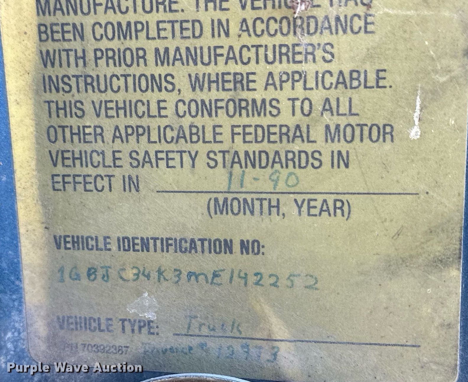 Purple Wave is selling a used 3/4 or 1 Ton Pickup or Van in Kansas. This item is a 1991 Chevrolet 3500 dump bed pickup truck with the following: Miles: 9,810 on odometer, VIN: 1GBJC34K3ME142252