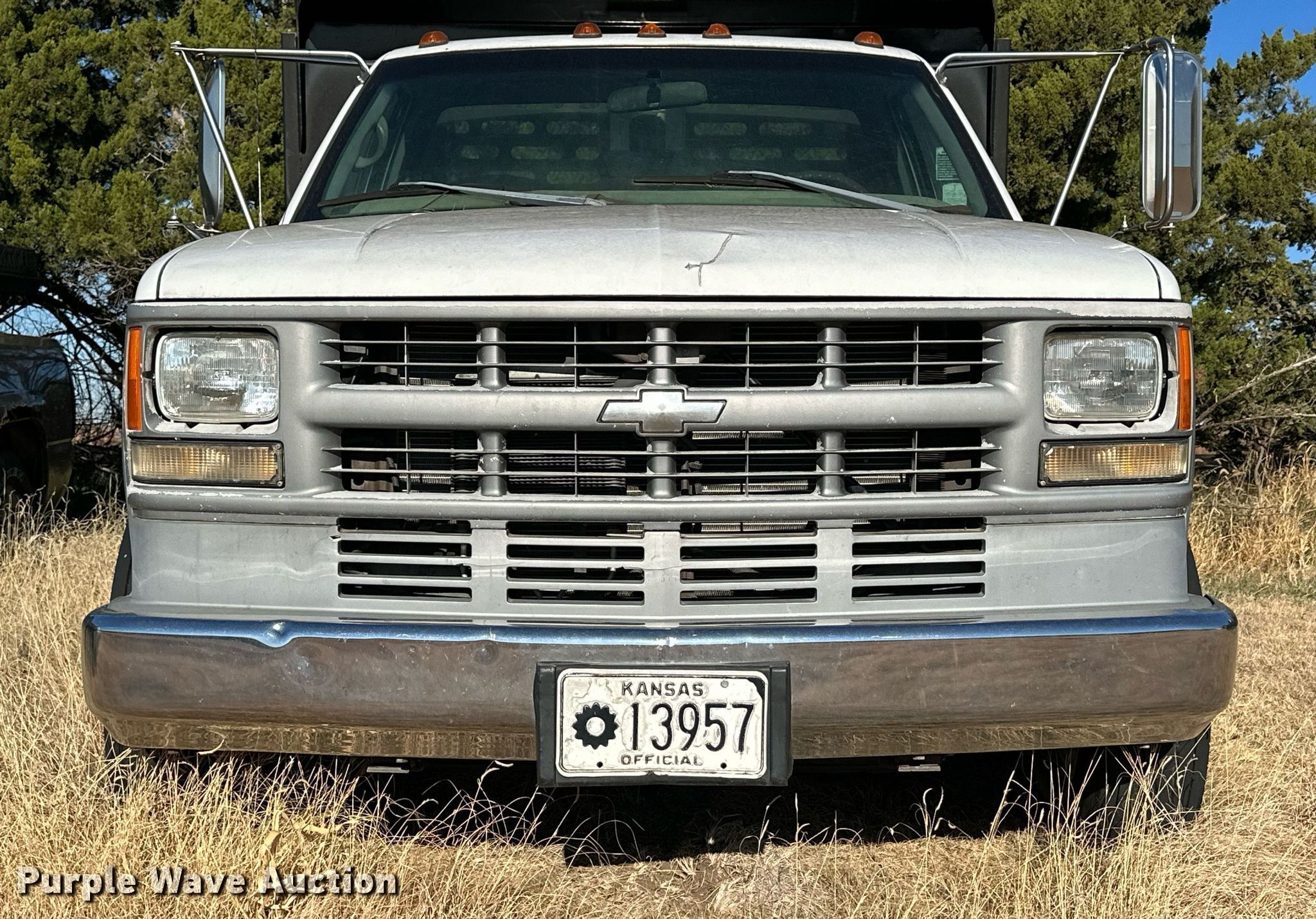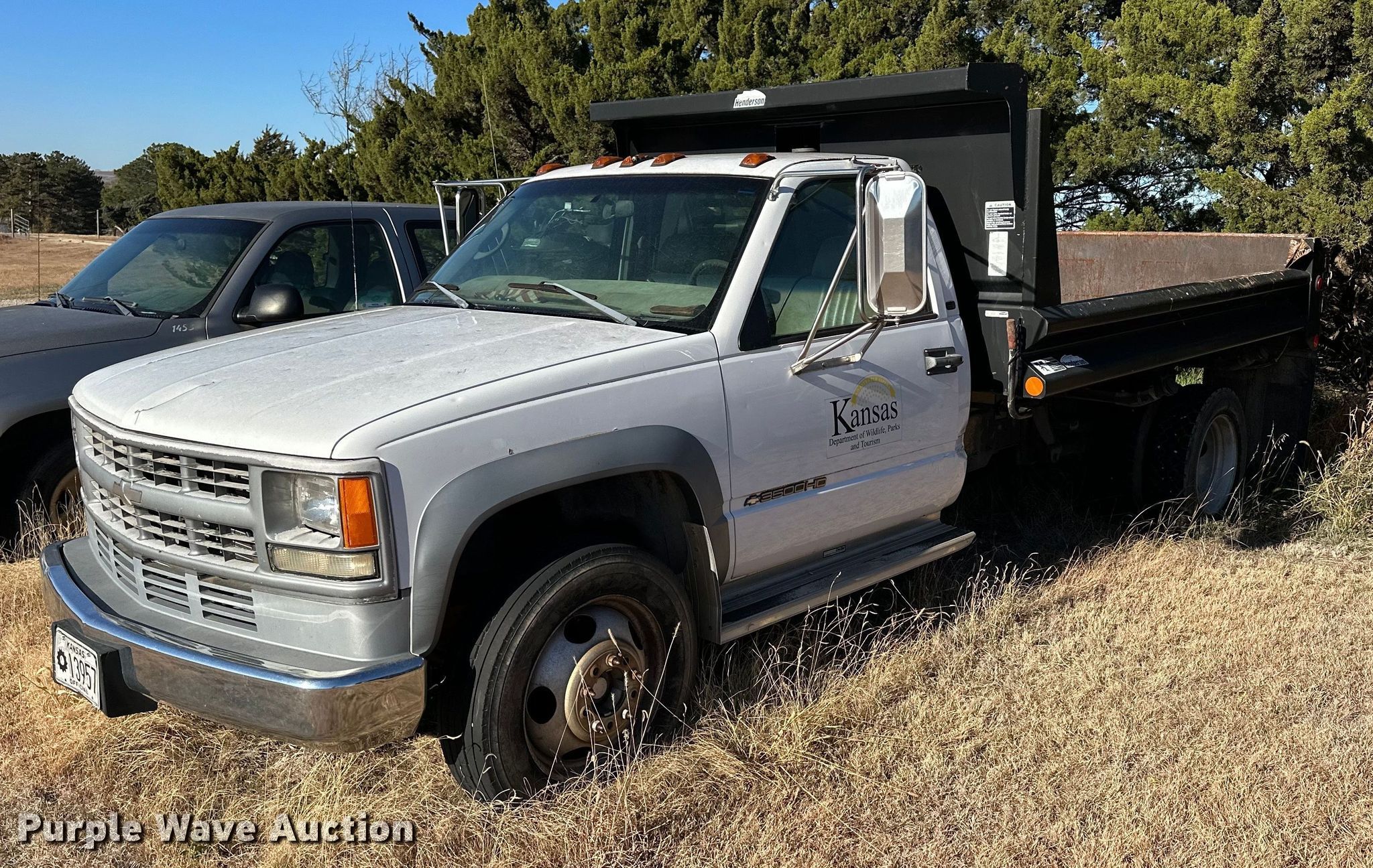 Purple Wave is selling a used 3/4 or 1 Ton Pickup or Van in Kansas. This item is a 1998 Chevrolet Cheyenne C3500 dump bed pickup truck with the following: Miles: 72,942 on odometer, VIN: 1GBKC34J9WF069414