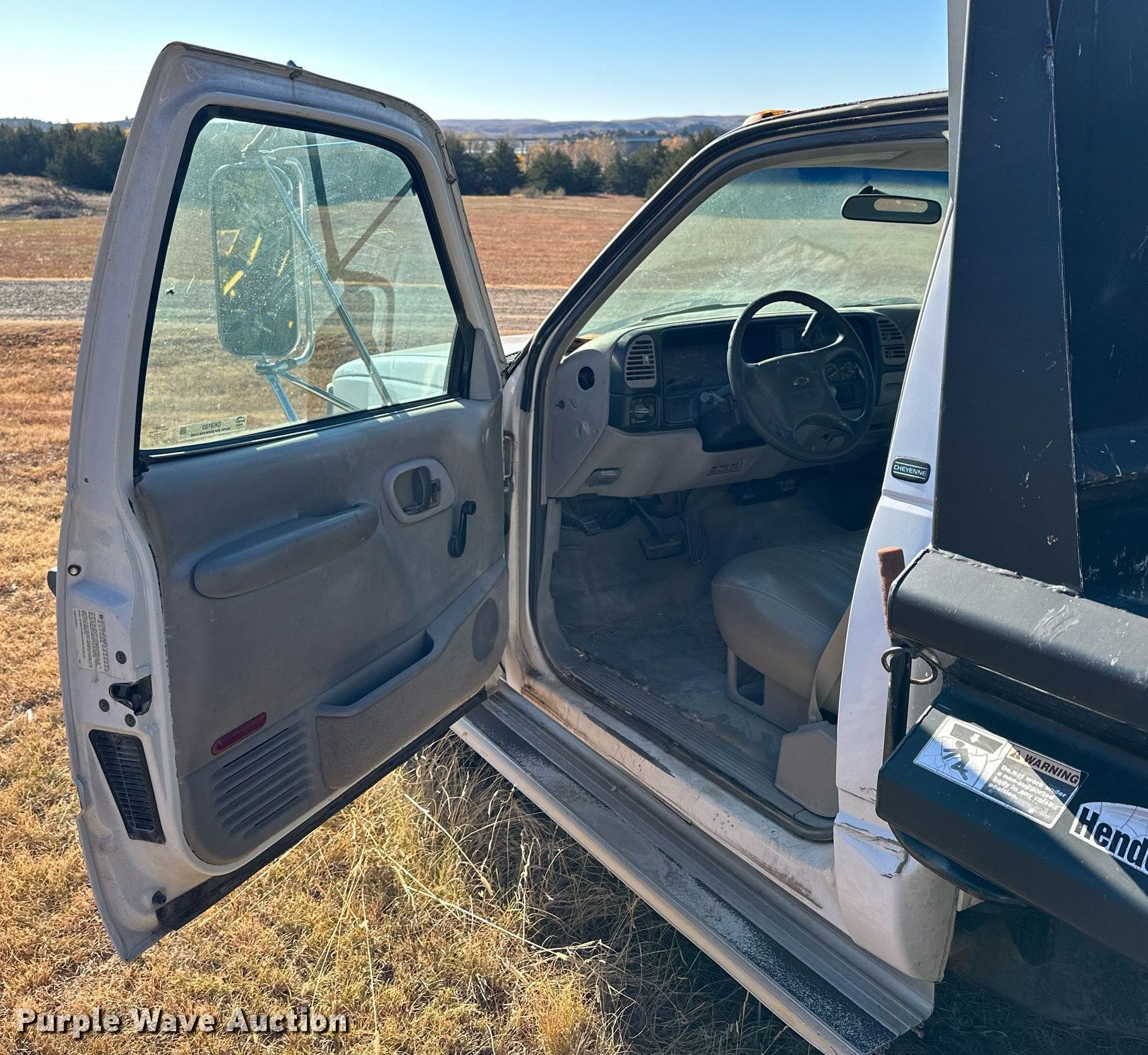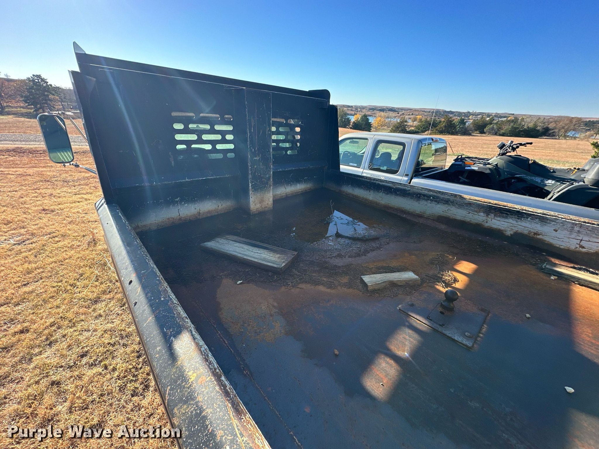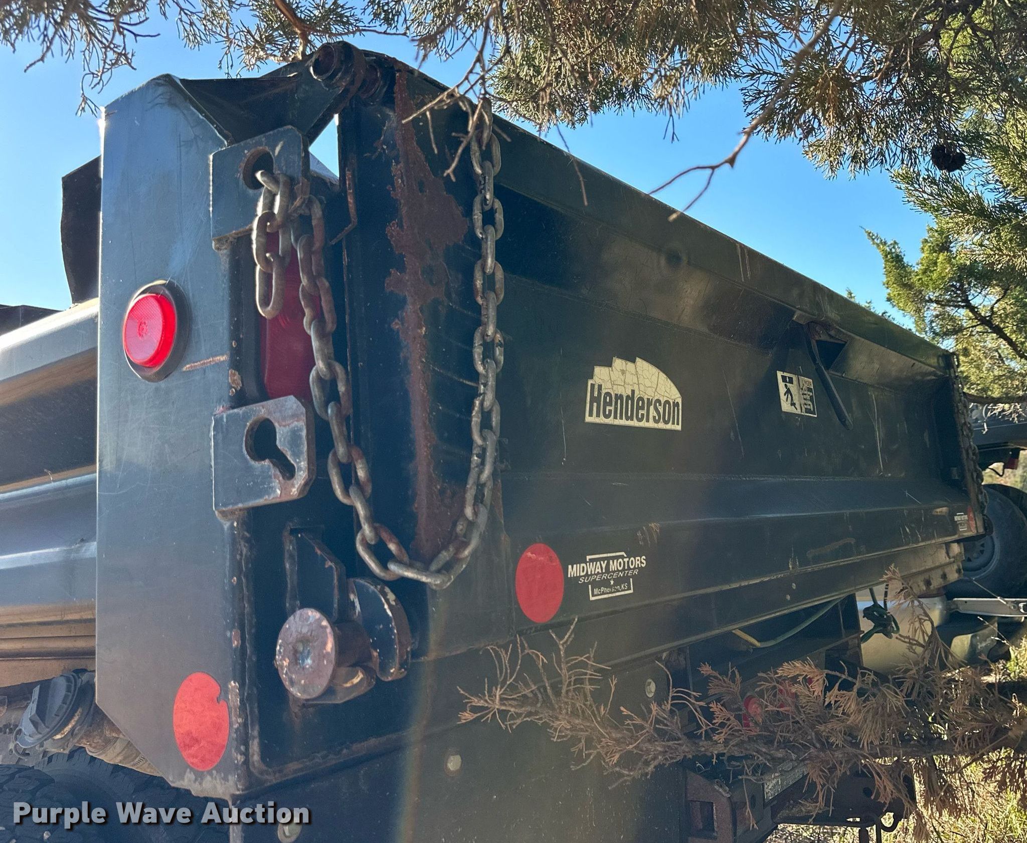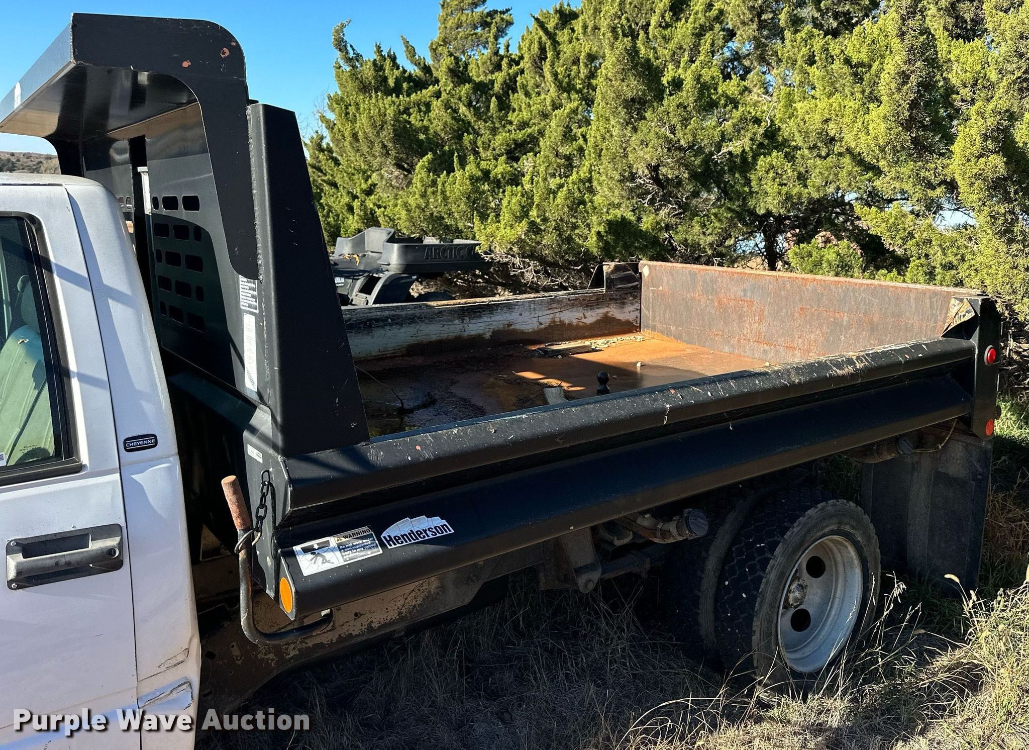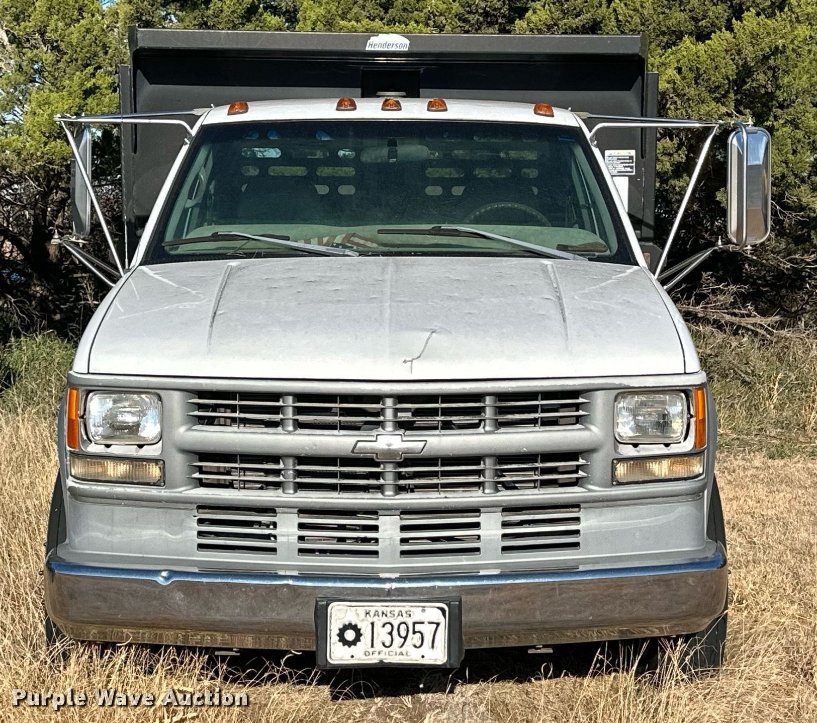 1998 Chevrolet Cheyenne C3500 dump bed pickup truck. Miles: 72,942 on odometer, VIN: 1GBKC34J9WF069414. Engine Displacement: 7.4L V8 OHV, Cylinders: 8, Fuel type: Gas. Transmission Automatic. Interior Heat. Features Dump bed Henderson 10x13xFXSxMK3, 10' L x 92" W, Hitch: Gooseneck. Tires Size: 225/70R19.5. Notes Hail damage, Dead battery, Unknown operating condition of dump bed, Non-operational unit. Kansas title. Wilson State. 3 State Park Road. Sylvan Grove, KS 67481