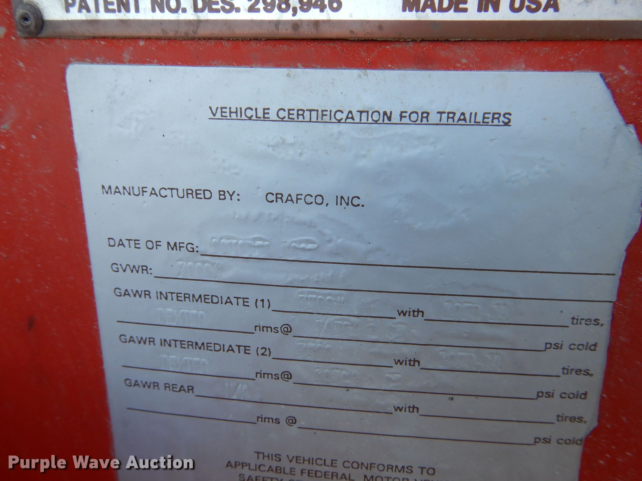 Crafco EZ Pour melter applicator. Hours: 2,968 on meter, Unit #: 96. Engine Isuzu, Cylinders: 3, Fuel type: Diesel. Features Conveyor 11' x 12", Capacity: 200 gallons, Hose, Application wand. Chassis Hitch: Pintle , Axle: Tandem, GVWR: 7,000. Tires Size: 185R14. Notes Dead battery. Transfer of ownership documentation will be a bill of sale. This is worksite support equipment and will not come with a title. Marion, KS 66861