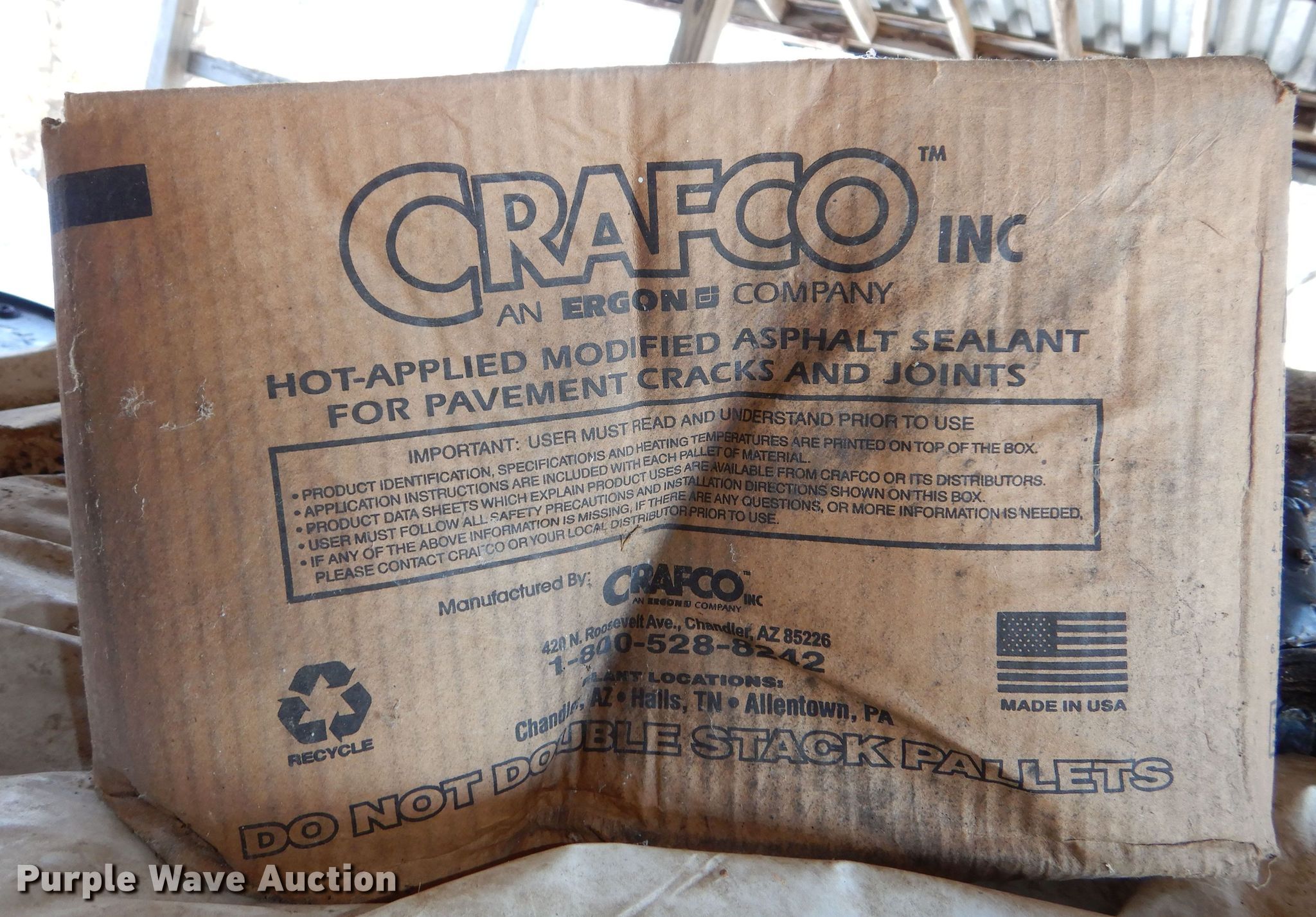 This (5) pallets of Crafco asphalt pavement sealant blocks will sell to the highest bidder regardless of price.