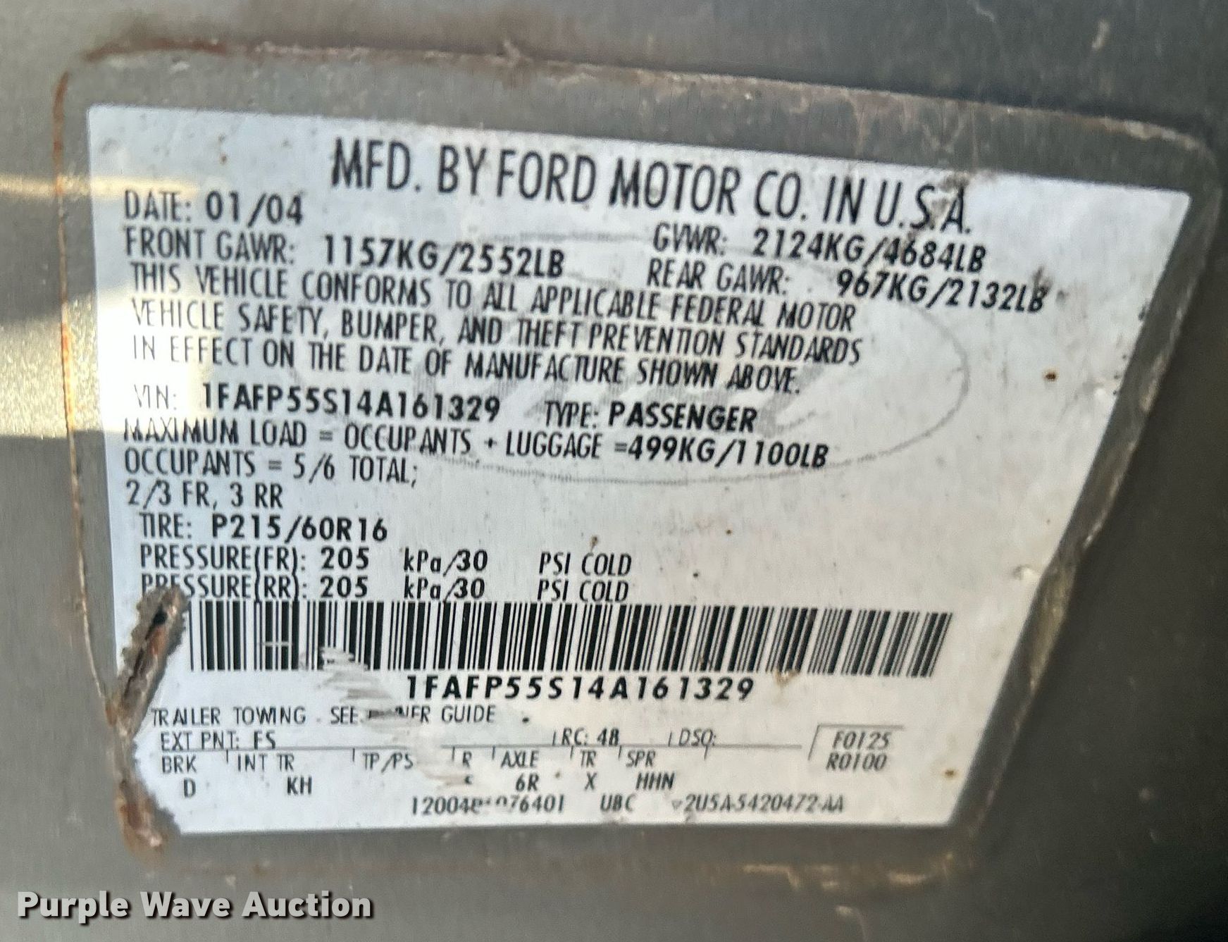 - VIN: 1FAFP55S14A161329