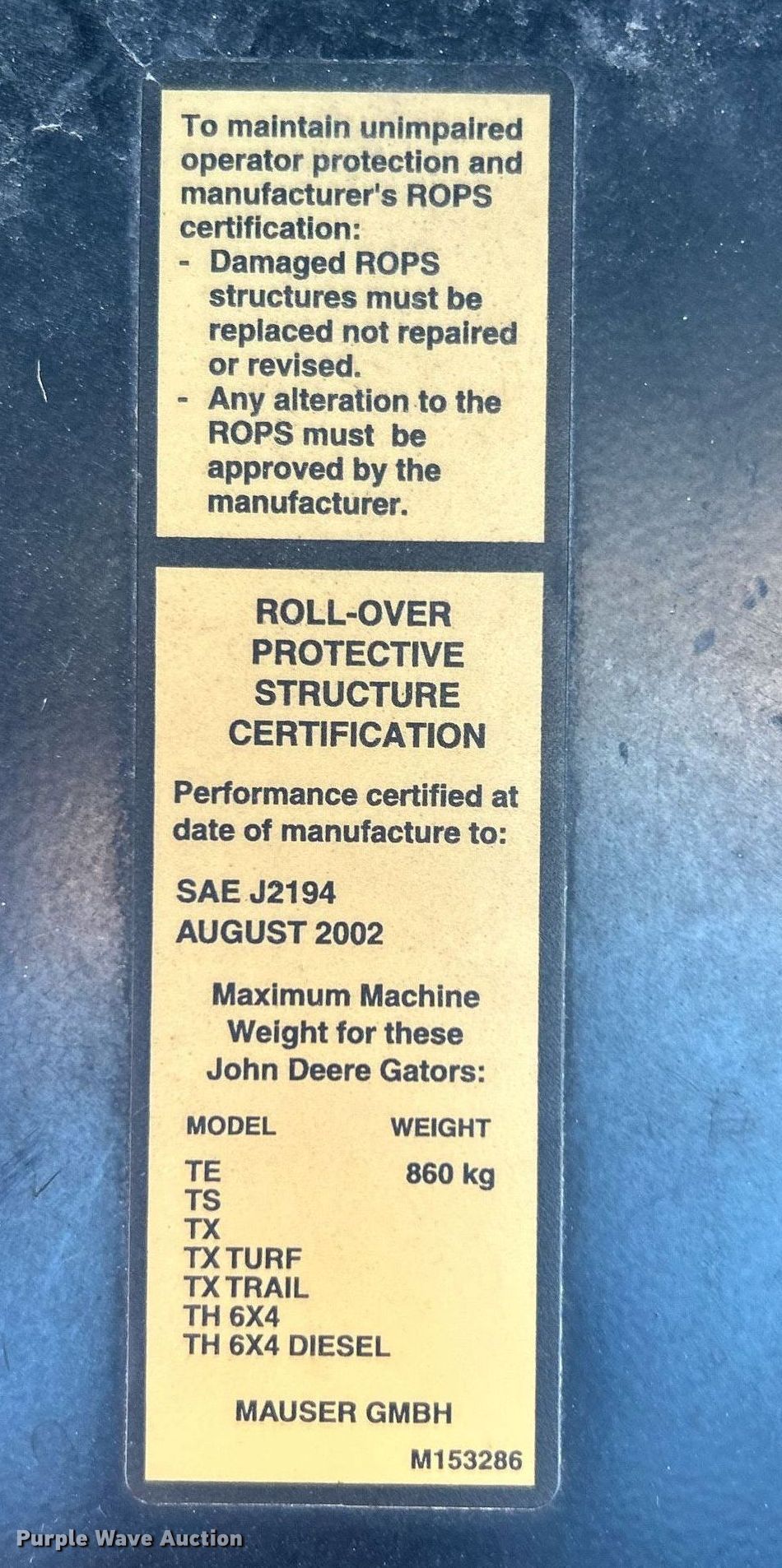 Purple Wave is selling a used Utility Vehicle in Oklahoma. This item is a 2006 John Deere Gator TS utility vehicle with the following: VIN: W04X2SD015175, Hours: 638 on meter, Unit #: 201