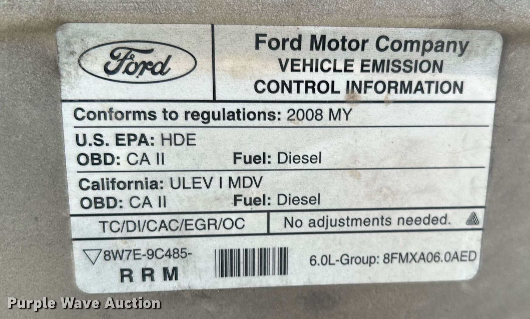 2008 Ford E350 Super Duty van. Miles: 67,978 on odometer, VIN: 1FTSE34P08DB55414, Unit #: 205. Engine Displacement: 6.0L V8 OHV, Cylinders: 8, Fuel type: Diesel. Transmission Automatic. Interior AC, Heat, Cruise control. Tires Size: LT245/75R16. Notes Dead battery, Ignition switch damaged, key broken off in cylinder. Oklahoma title. Seller is a government entity who will be assigning and distributing the title. Please contact the seller for distribution questions. City of Tulsa. 108 N Trenton Ave. Tulsa, OK 74120