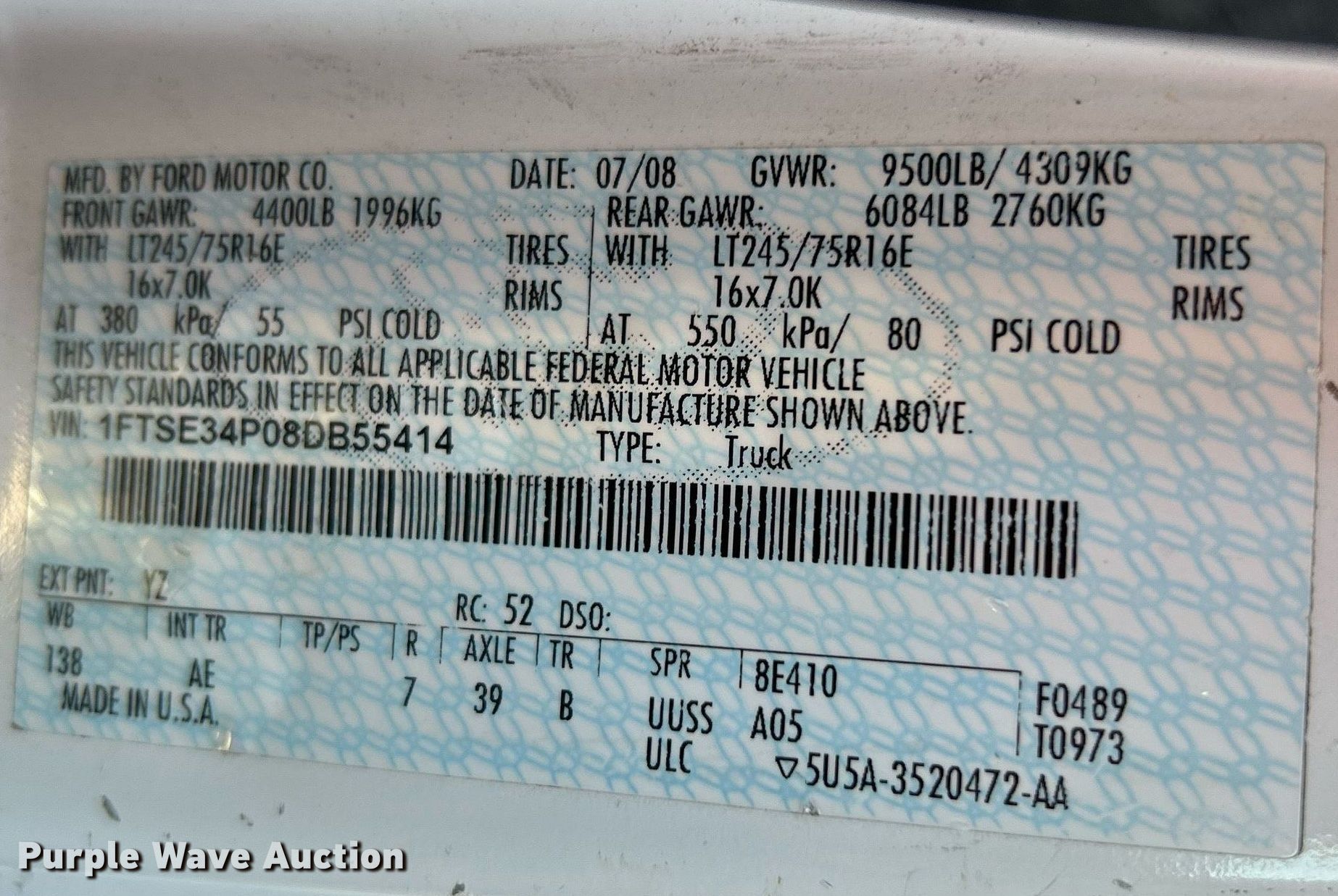 - VIN: 1FTSE34P08DB55414