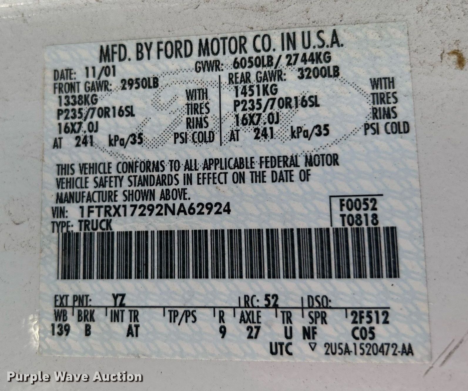 Purple Wave is selling a used 1/2 Ton Pickup or Van in Oklahoma. This item is a 2002 Ford F150 SuperCab pickup truck with the following: Miles: 86,435 on odometer, VIN: 1FTRX17292NA62924, Unit #: 218
