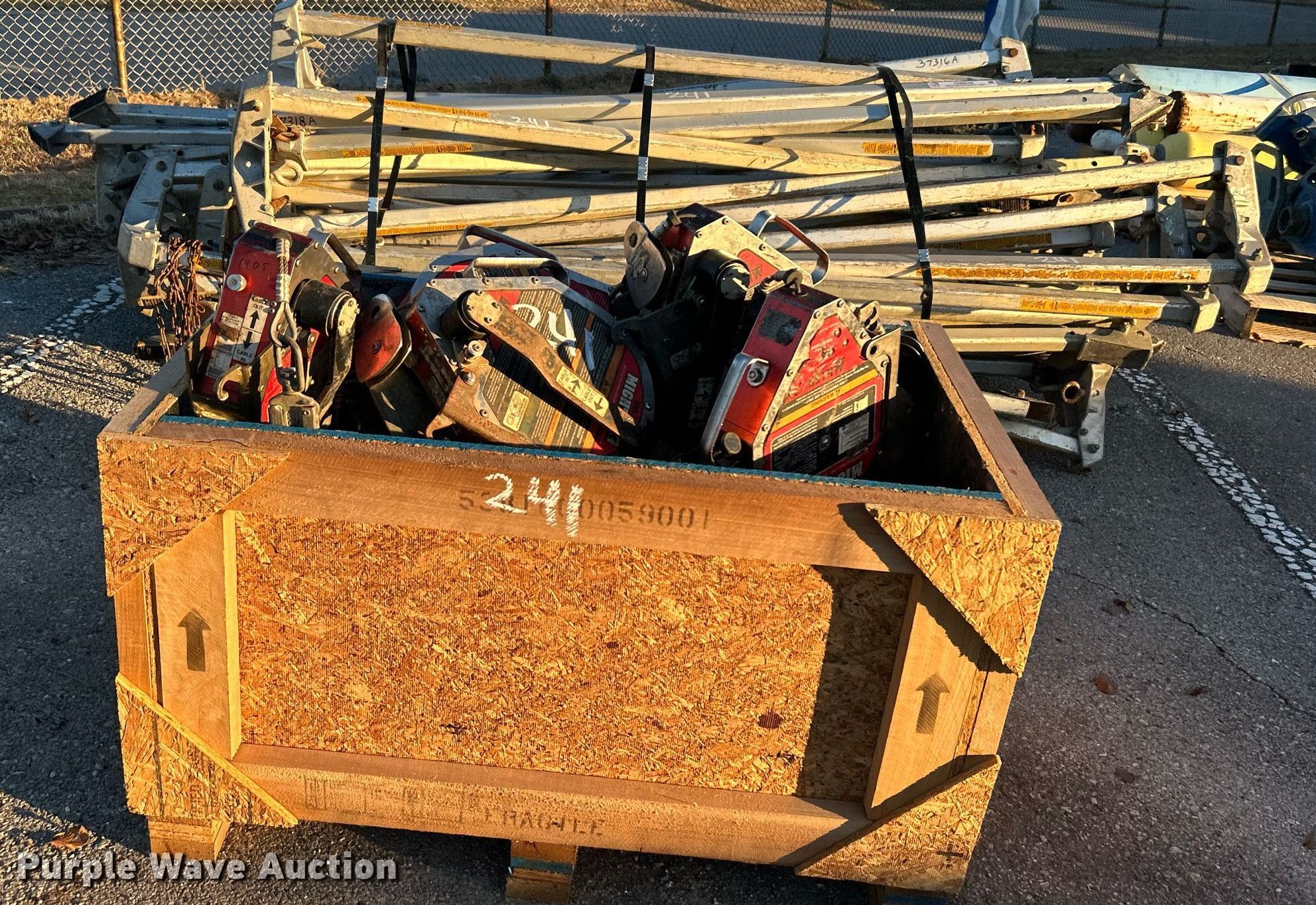 Purple Wave is selling a used Tools in Oklahoma. This item is a Approximately (14) manhole tripods with the following: Retracting winches, Unit #: 241