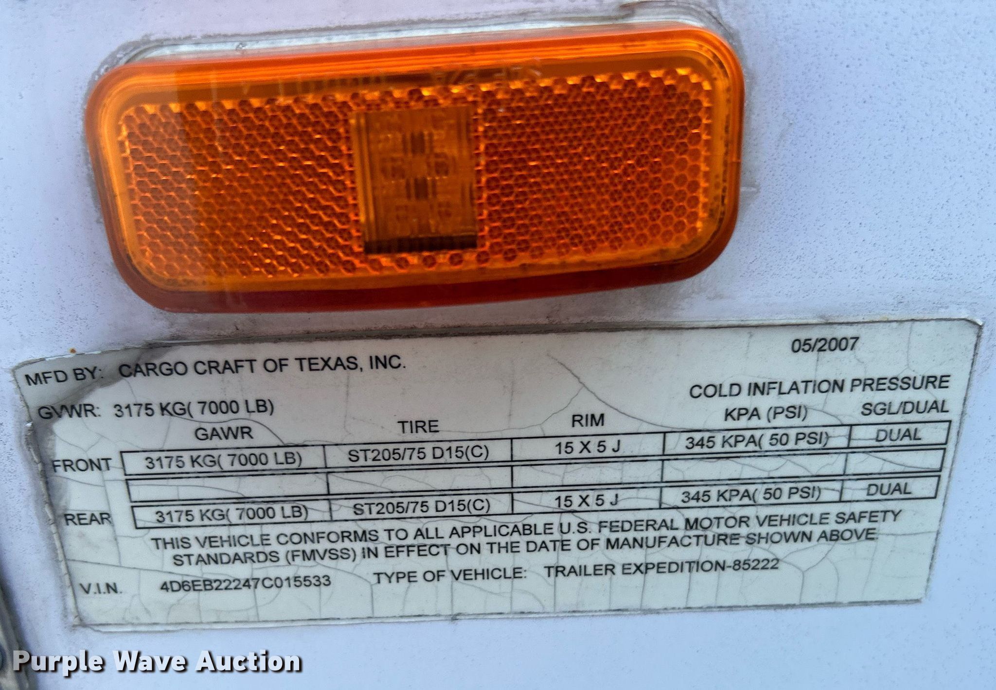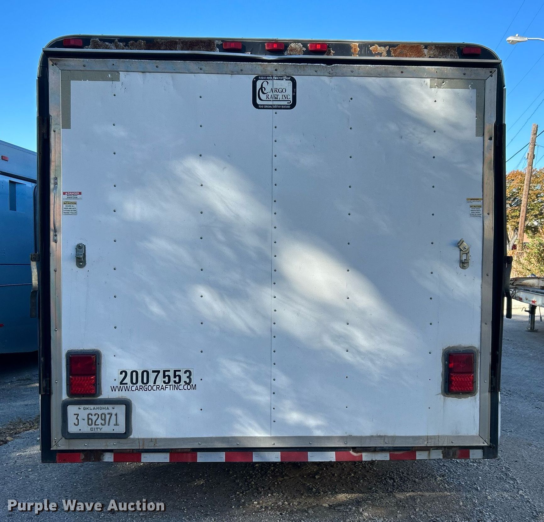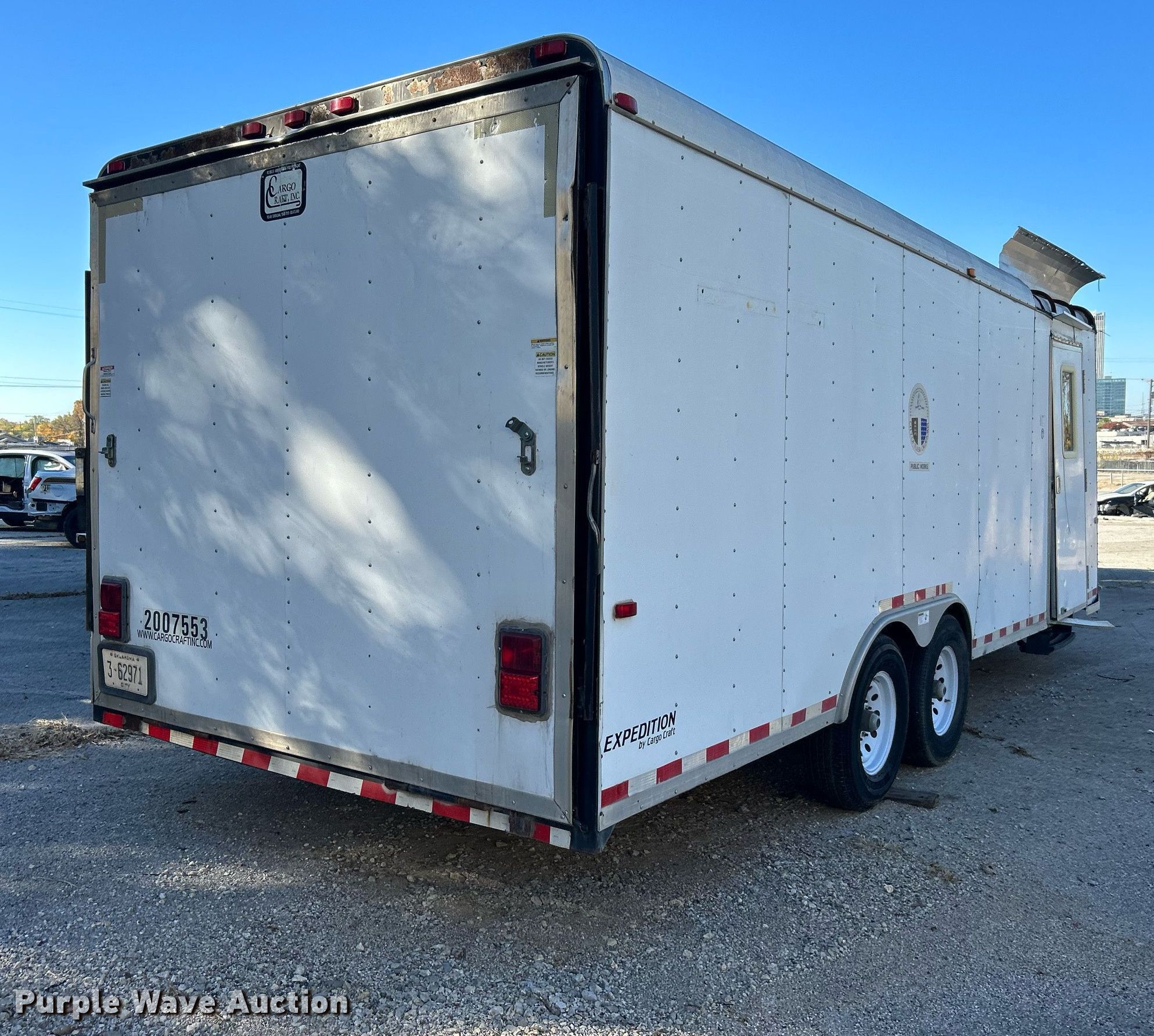 Purple Wave is selling a used Enclosed Cargo Trailer in Oklahoma. This item is a 2007 Cargo Craft enclosed cargo trailer with the following: VIN: 4D6EB22247C015533, Unit #: 300