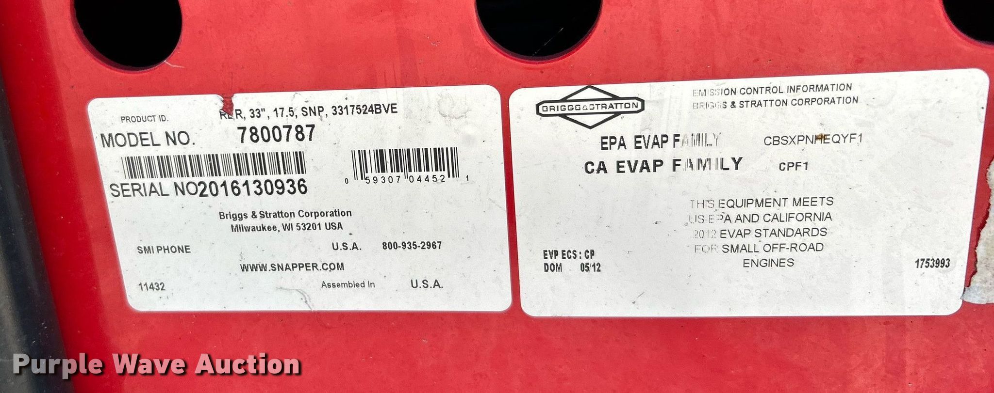 Purple Wave is selling a used Lawn Mower in Oklahoma. This item is a (2) Snapper lawn mowers with the following: Cutting width: 33", Unit #: 517
