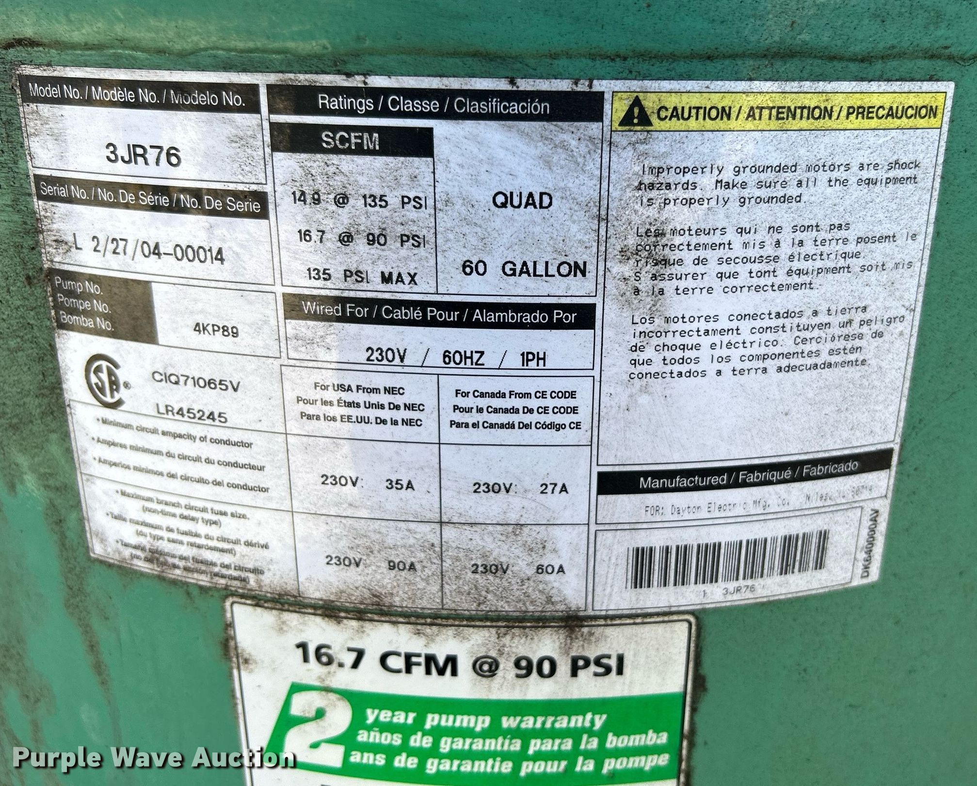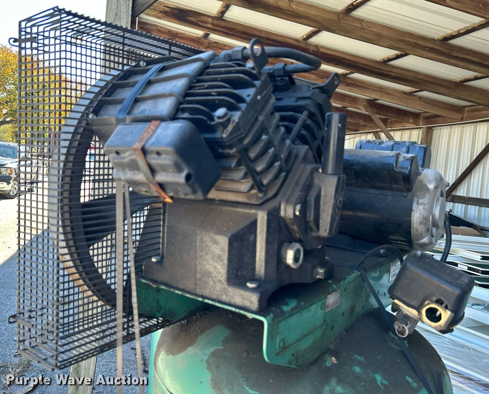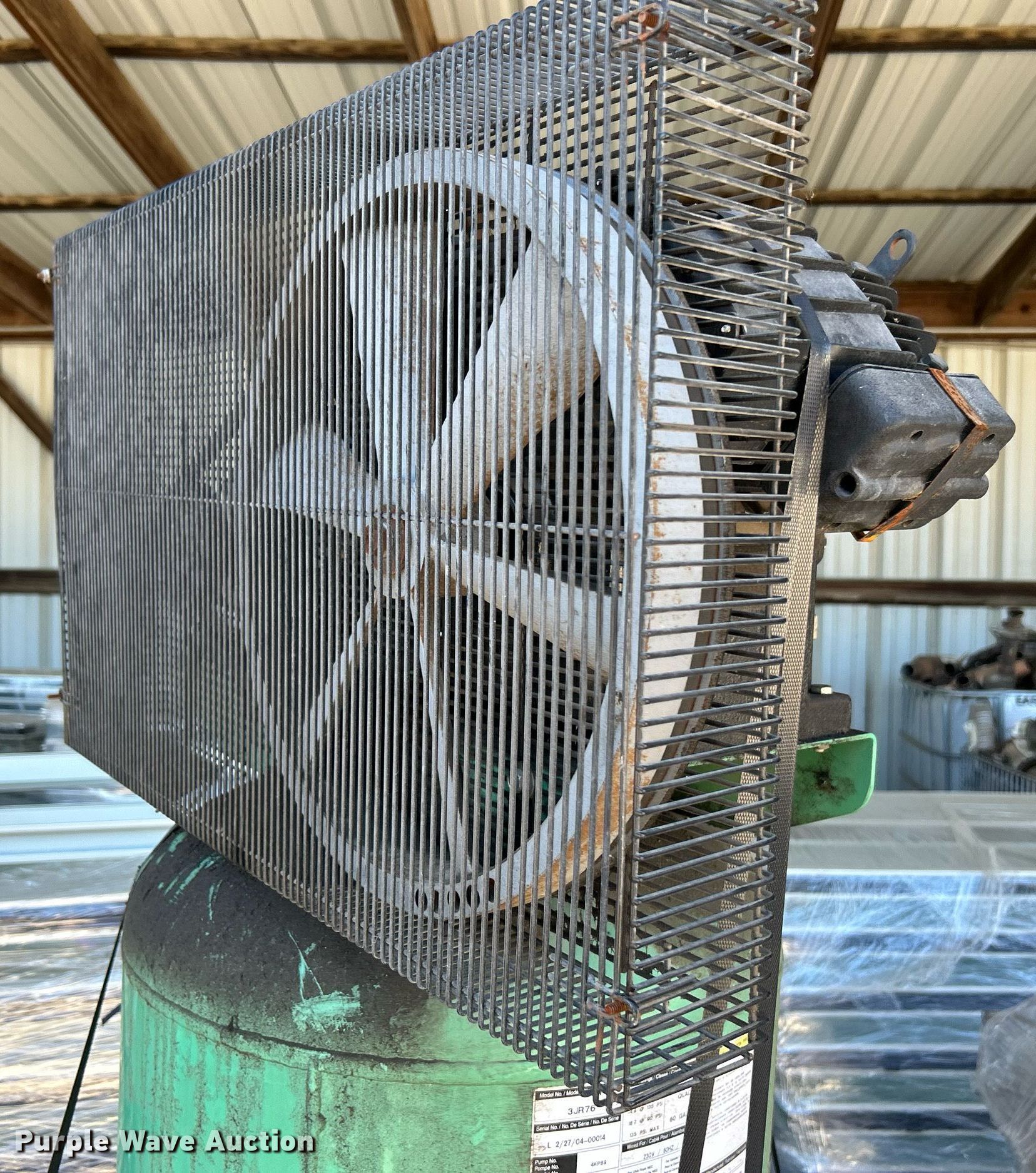 Purple Wave is selling a used Air Compressor in Oklahoma. This item is a Speedaire 3JR76 air compressor with the following: Tank capacity: 60 gallons, Unit #: 523